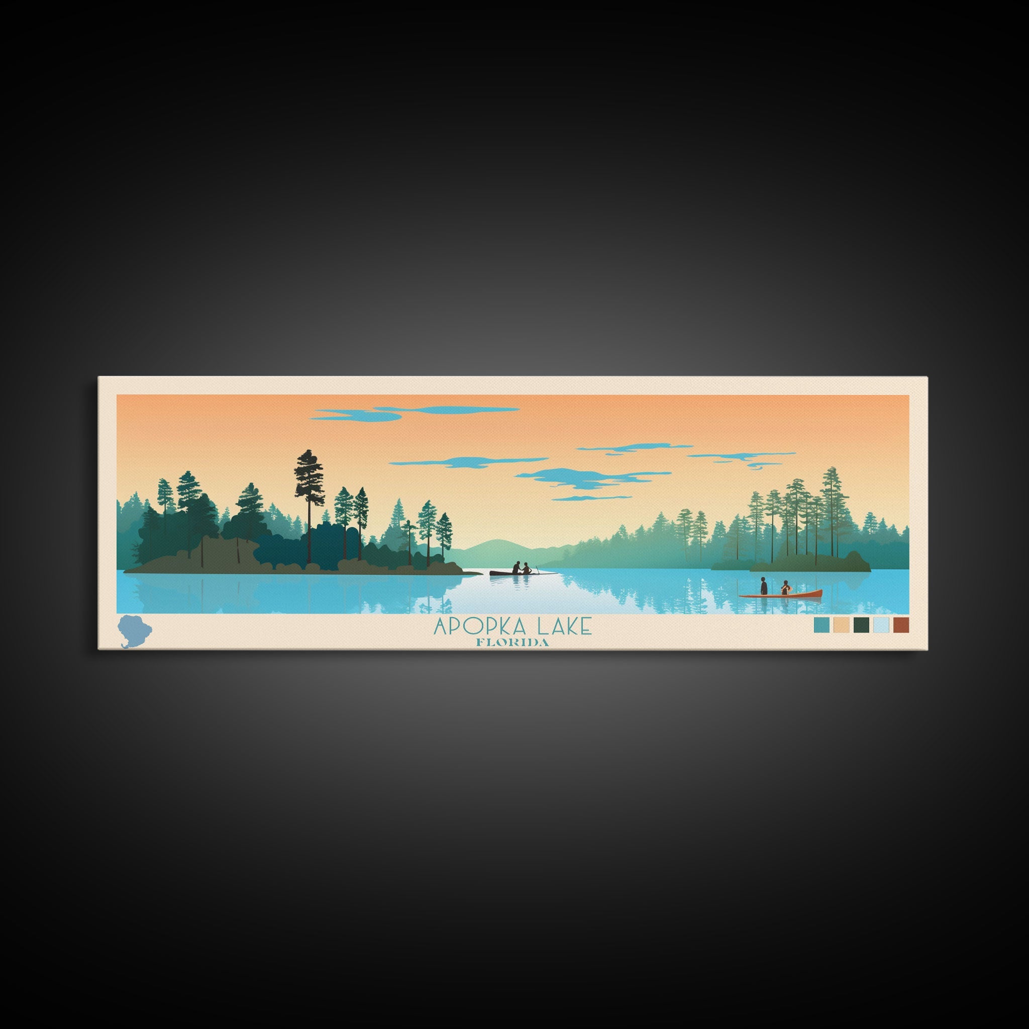 Apopka Lake Florida Framed Canvas Print, Panoramic Travel Poster, Midcentury Modern Wall Art, Pop Art, Nature Living Room Art