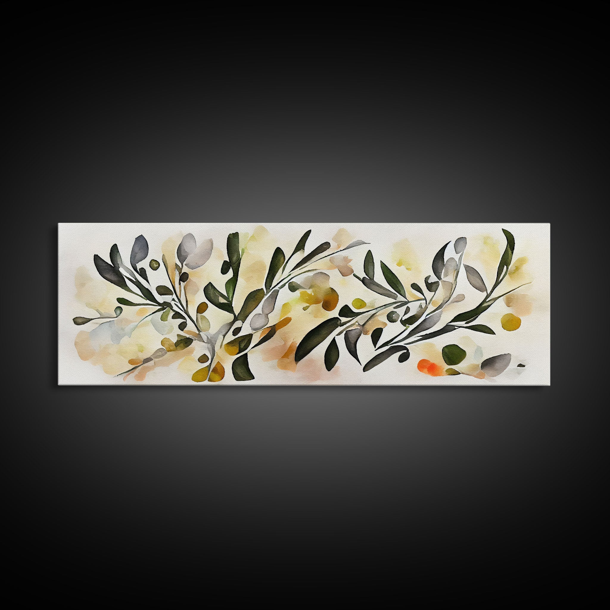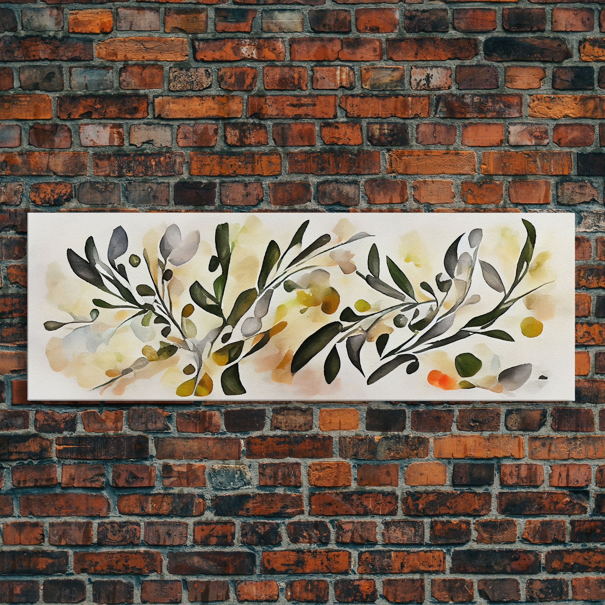 Apple Tree Leaves Wall Art, Ready To Hang Canvas Print, Panoramic Art, Floral Arrangement Wall Decor