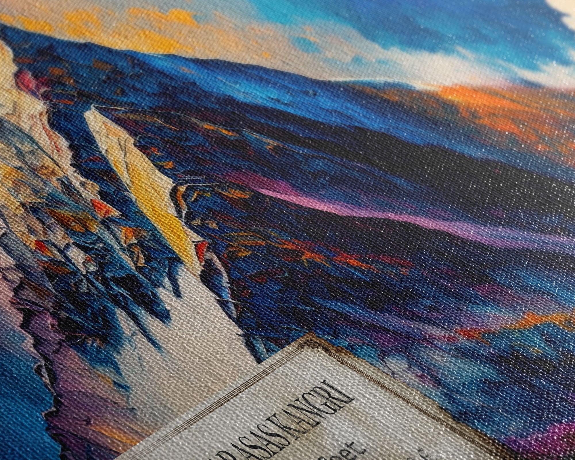 Most of our canvases are made in the USA, with the exception of canvases ordered with the light oak unstained frames, and any large canvases (24x48, 30x60, 16x48 and 20x60) ordered WITH a frame. These are temporarily made in and shipped from Europe, while we try to find a more consistent supplier in the USA.