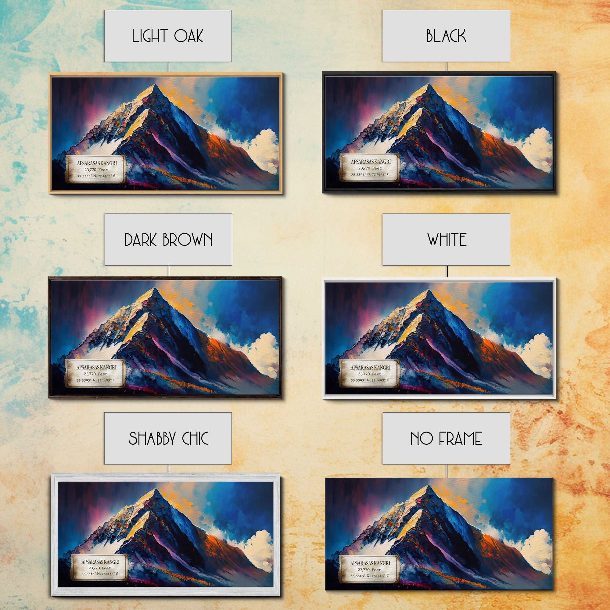 Apsarasas Kangri, Wall Art, Original Mountain Painting Print, Travel Poster, Mountain Landscape Wall Decor, Abstract Mountain Art