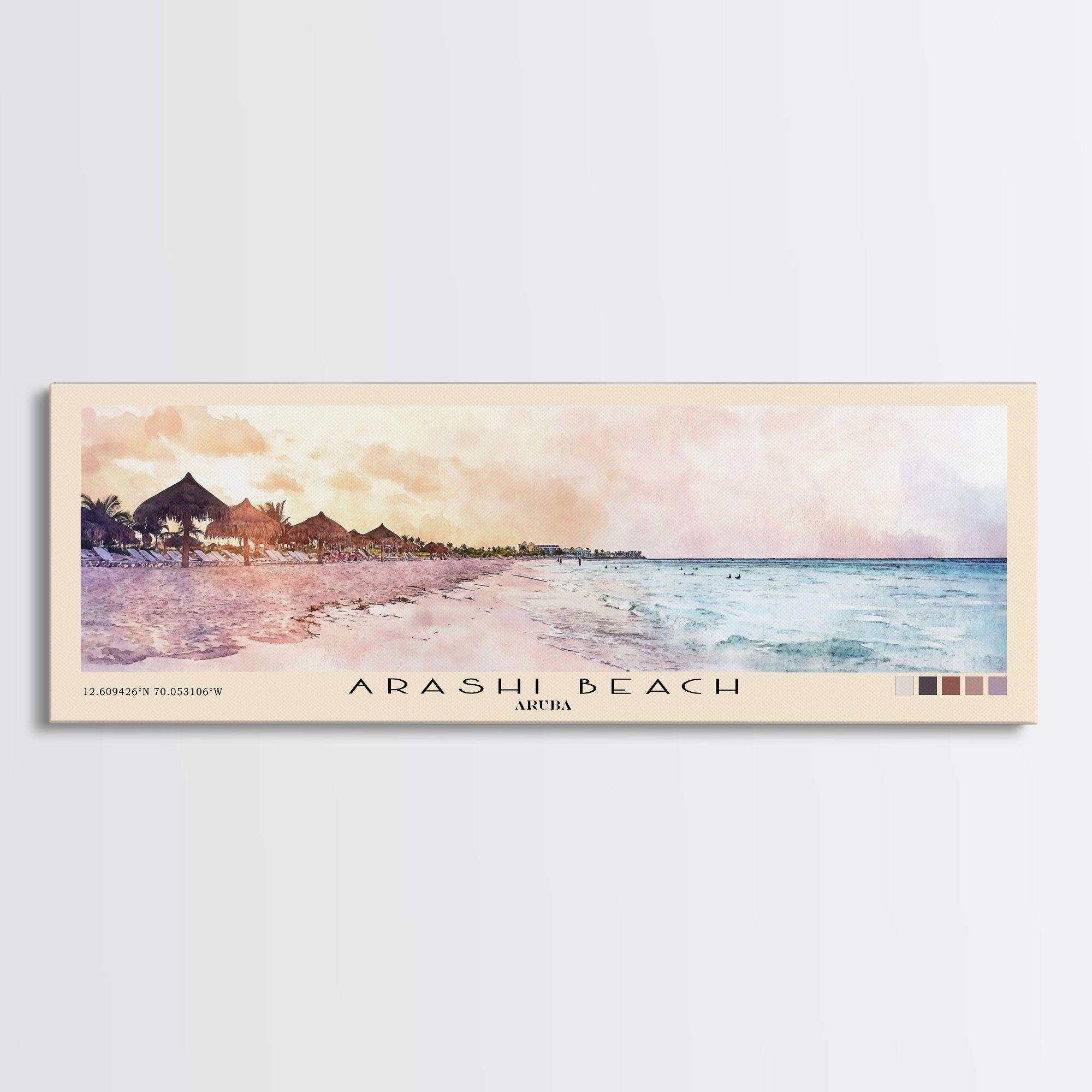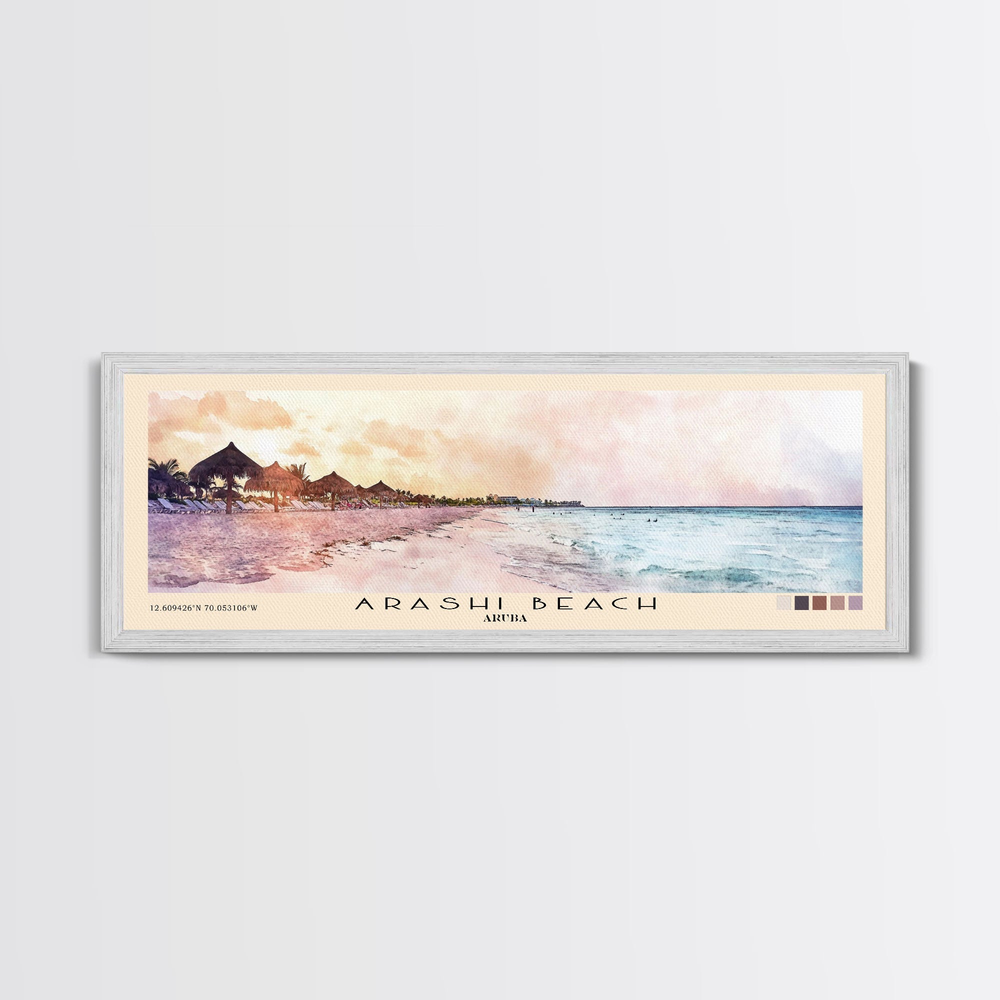 Arashi Beach, Aruba Watercolor Beach Print, Vacation Gift, Aruba Wall Art, Framed Canvas Print, Framed Beach Painting