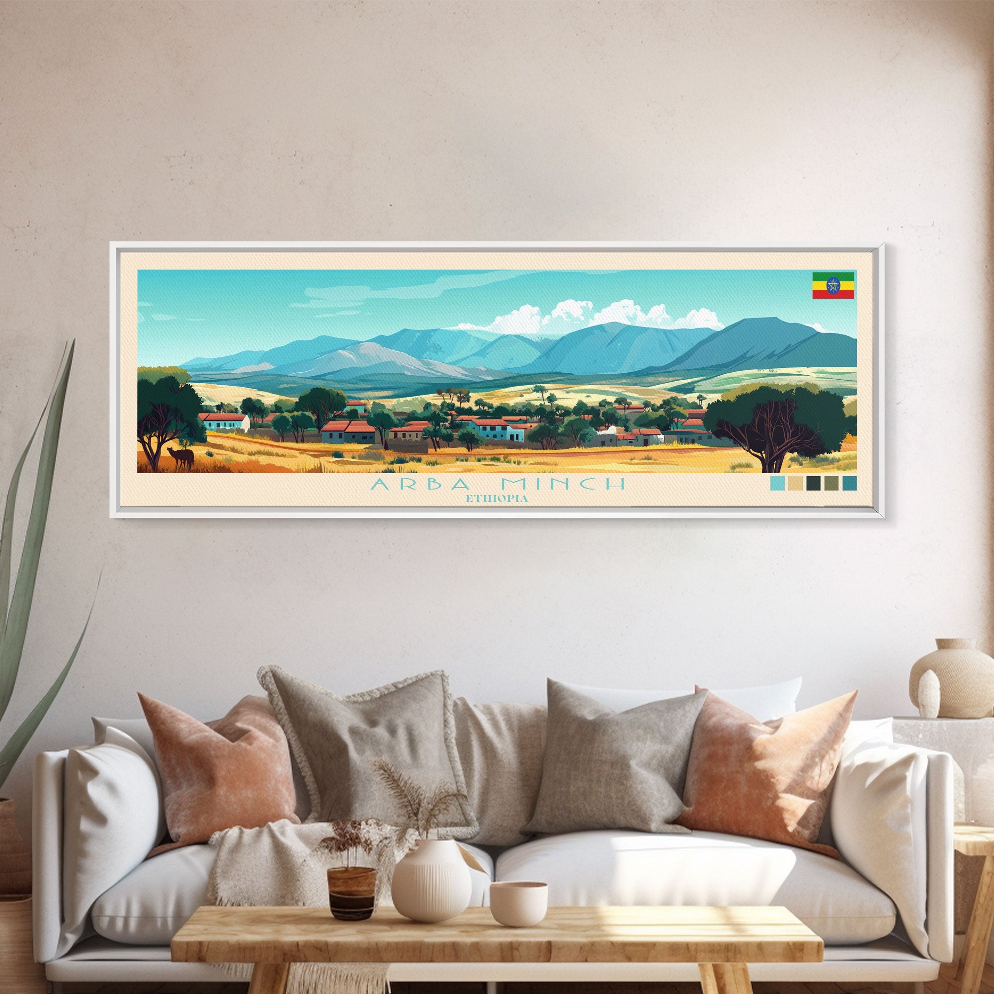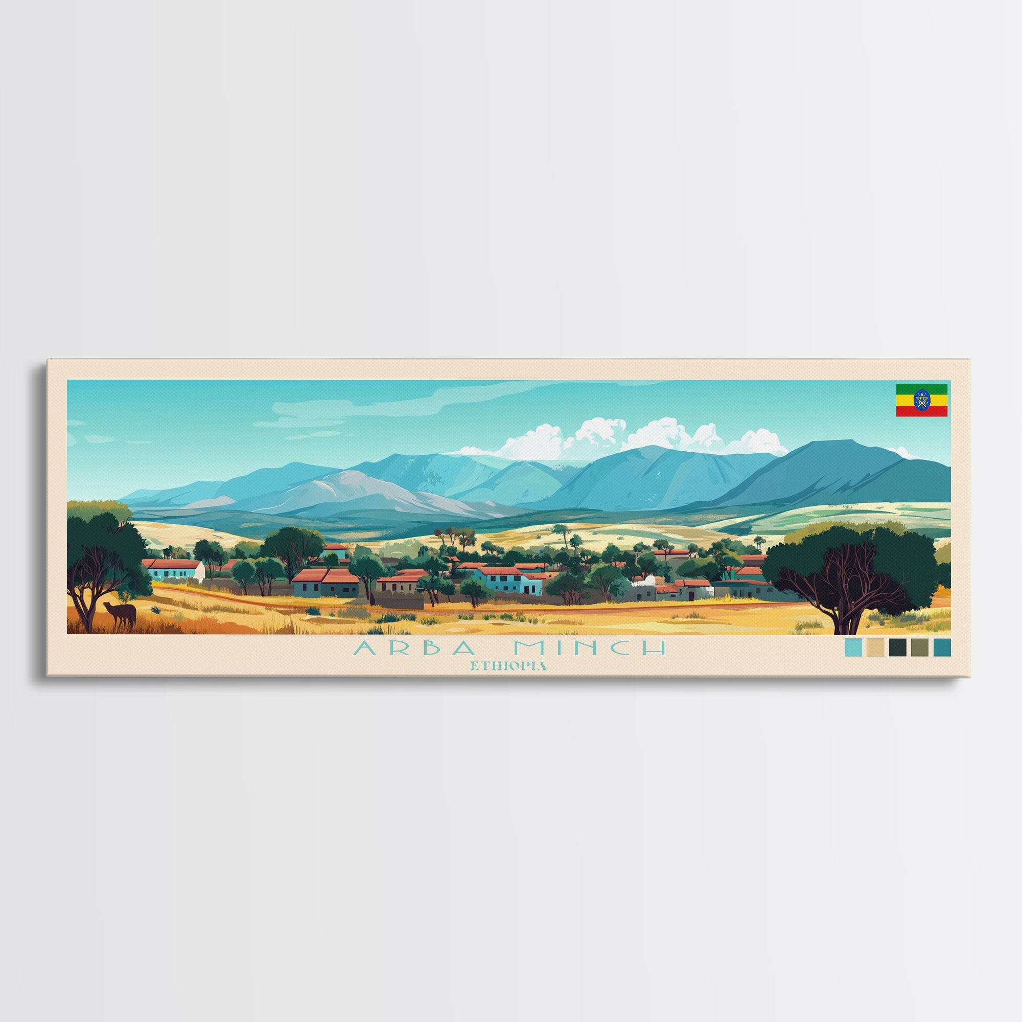 Arba Minch, Ethiopia Panoramic Travel Poster Canvas Print, Arba Minch, Ethiopia Painting, Ethiopia Art, Arba Minch Travel Art, Living Room Painting