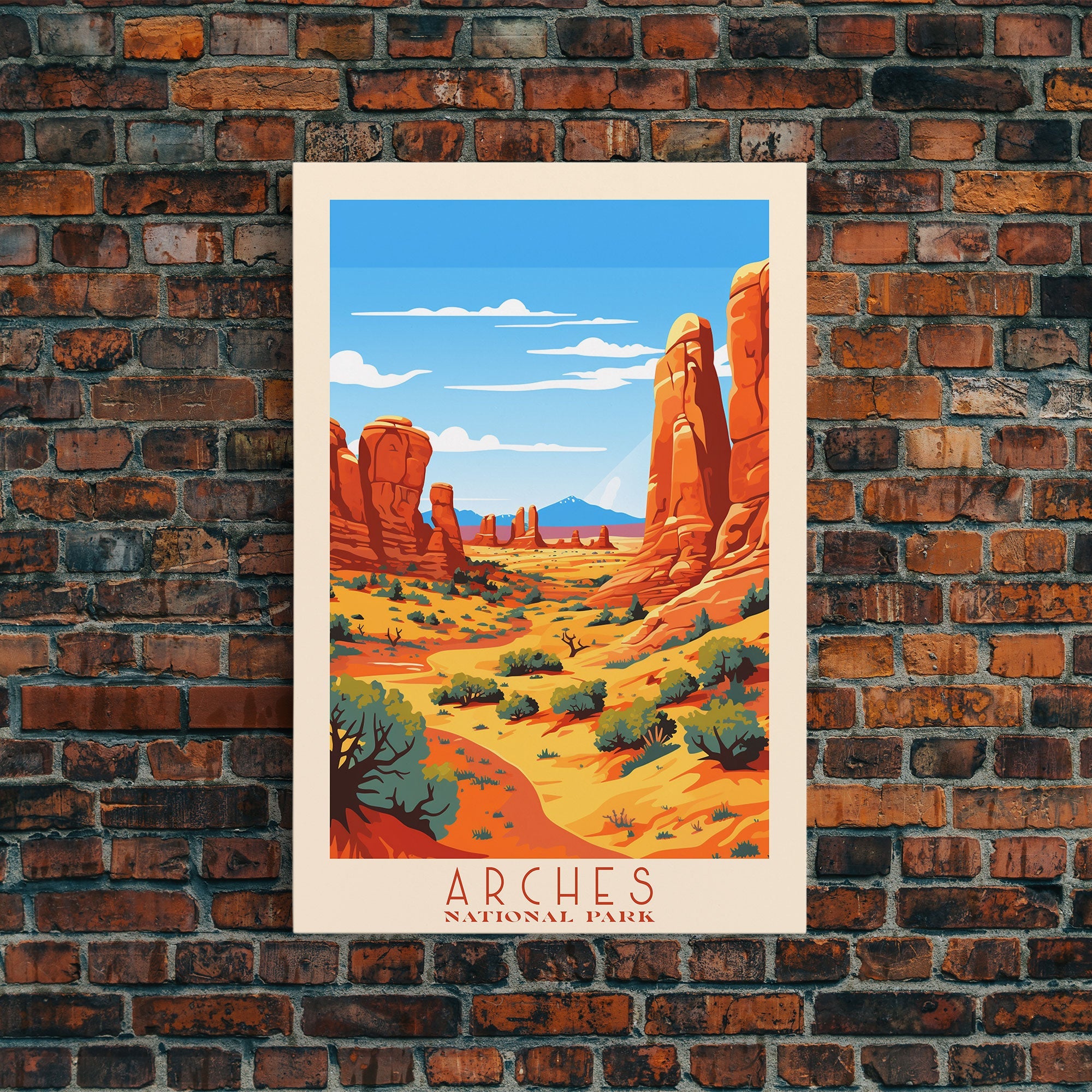 Arches National Park, Framed Wall Art Canvas Print, Travel Poster, Travel Art, Roadtrip Decor, Cool Wall Art, Retro State Park Art