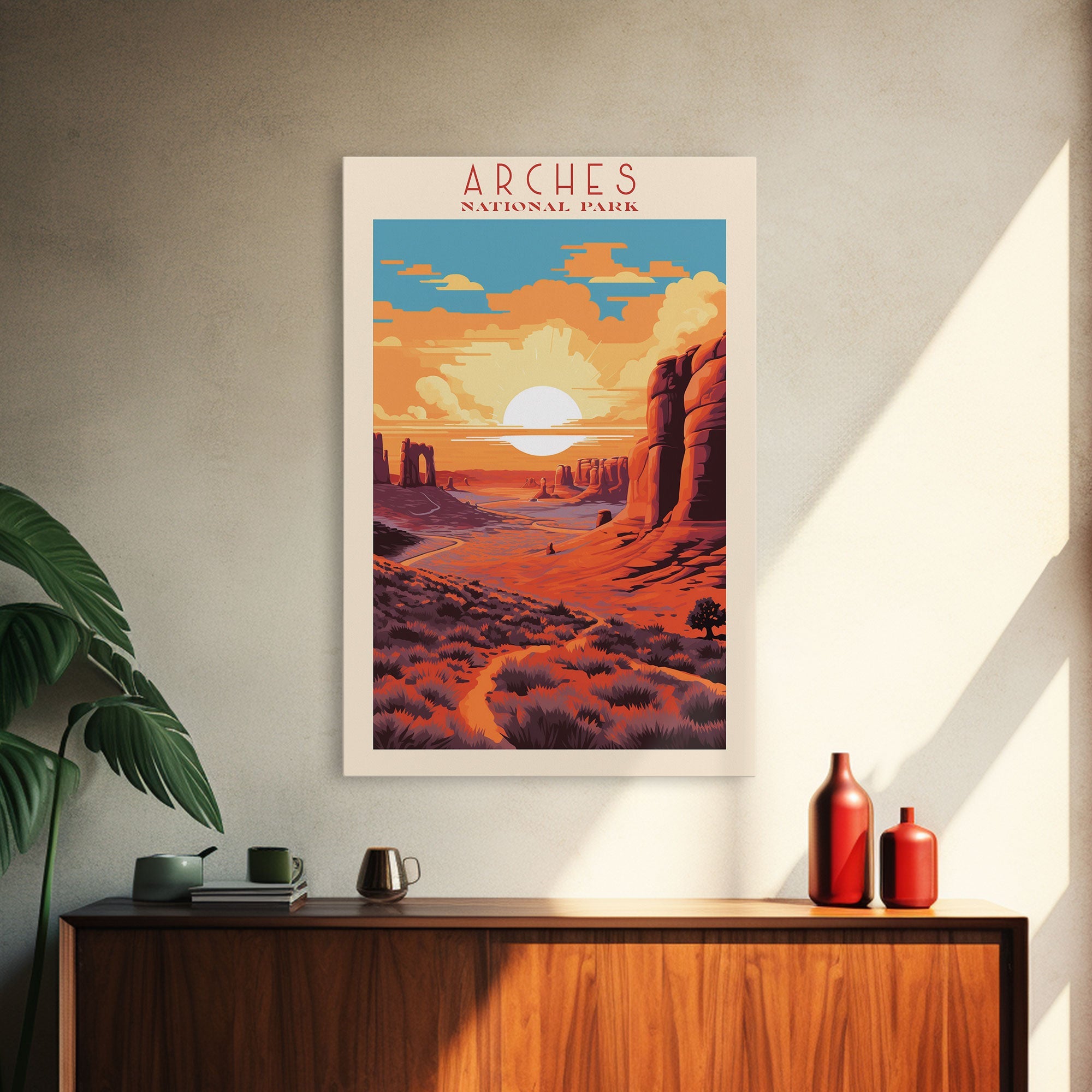 Arches National Park, Framed Wall Art Canvas Print, Travel Poster, Utah Travel Art, Roadtrip Decor, Cool Wall Art, Retro State Park Art