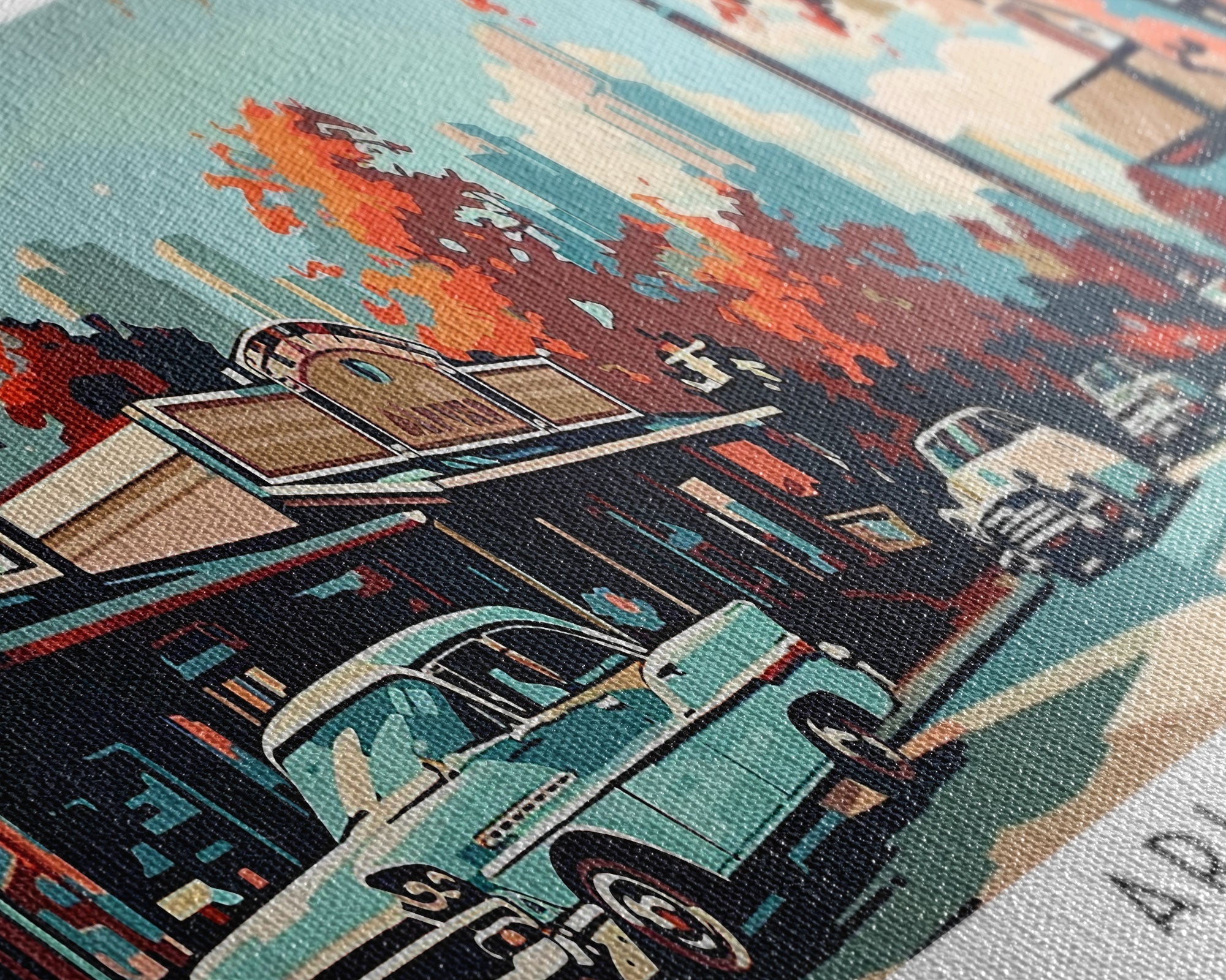 • Carregar imagem no visualizador da galeria, Arlington Texas Panoramic Wall Art, Mid Century Modern Framed Canvas Print, Retro Pop Art Travel Poster, Office Wall Art, Living Room Decor