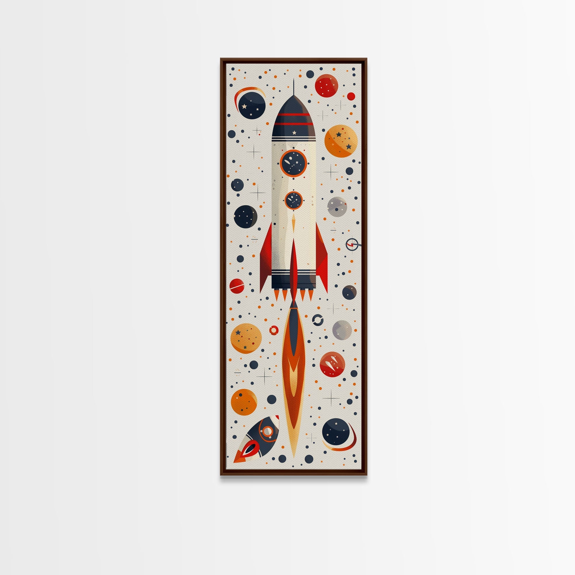 Art Deco Rocket Ship Atomic Age Wall Art, Retro MCM Inspired Framed Canvas Print, Mid-century Modern Nursery Decor