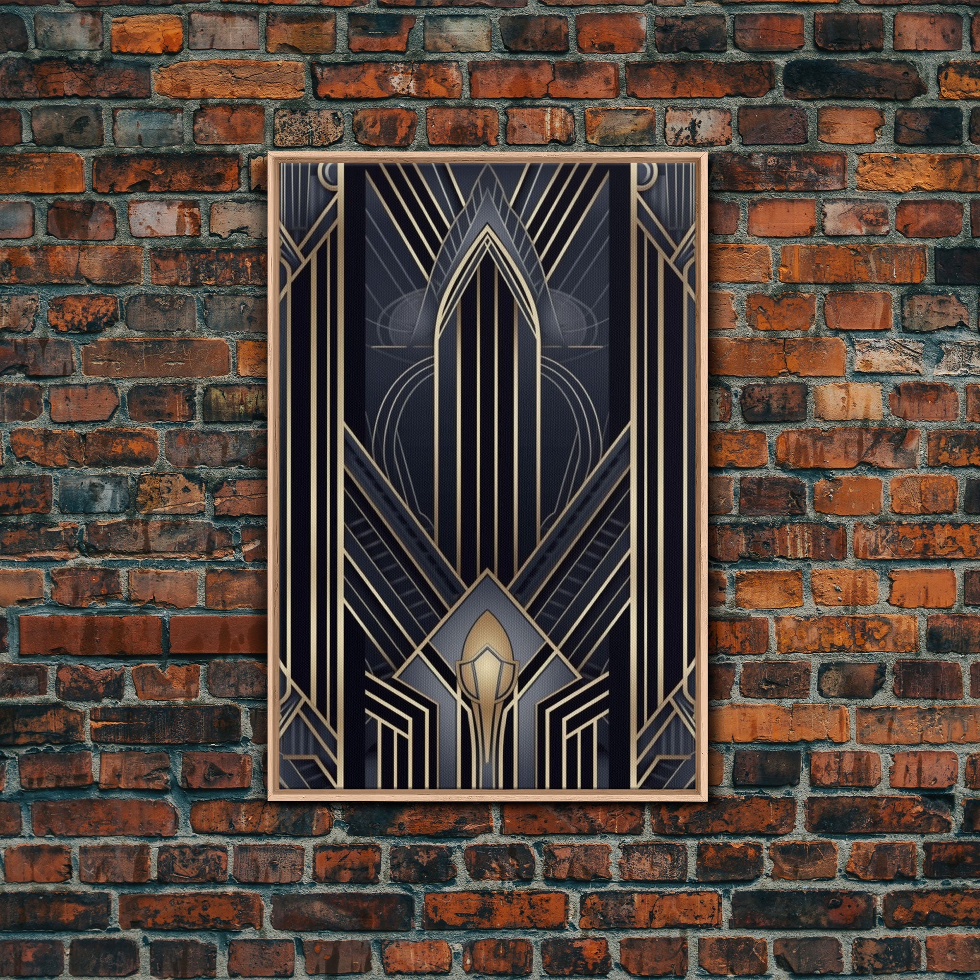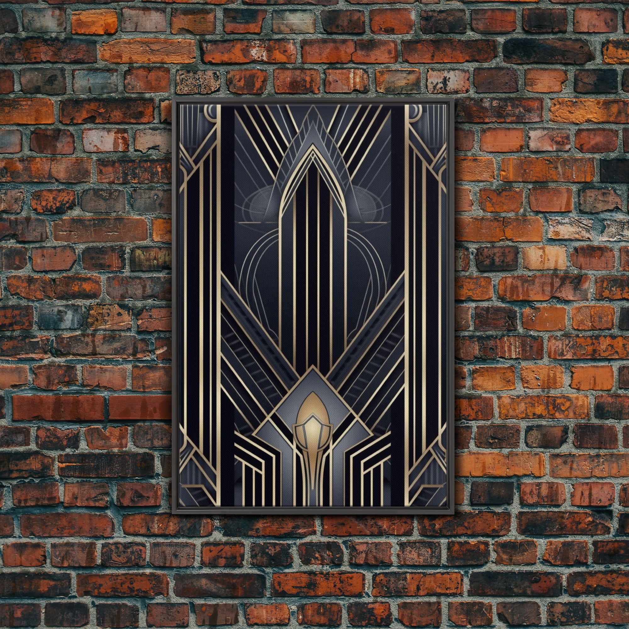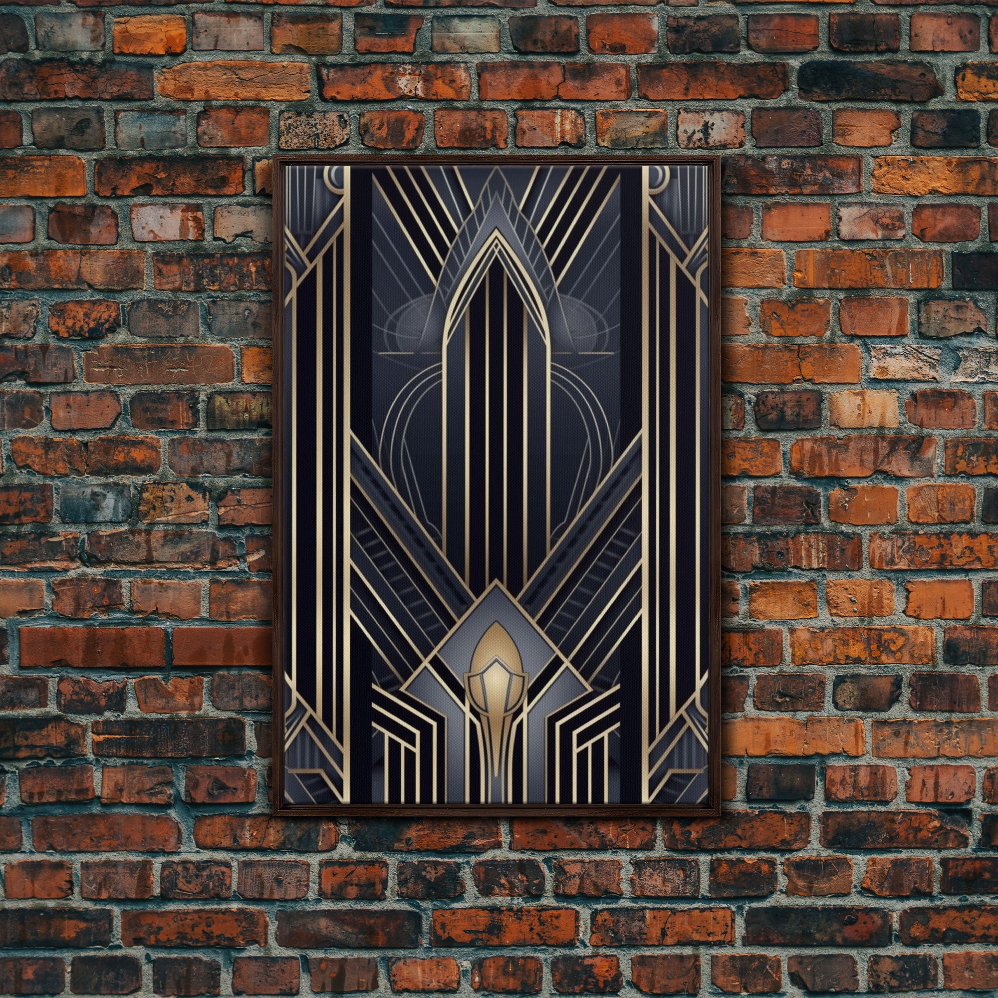 Art Deco Wall art, Framed Canvas Print, Art Deco, Gold & blue art, Guest room art, Midcentury Modern, Stained glass art, Original painting