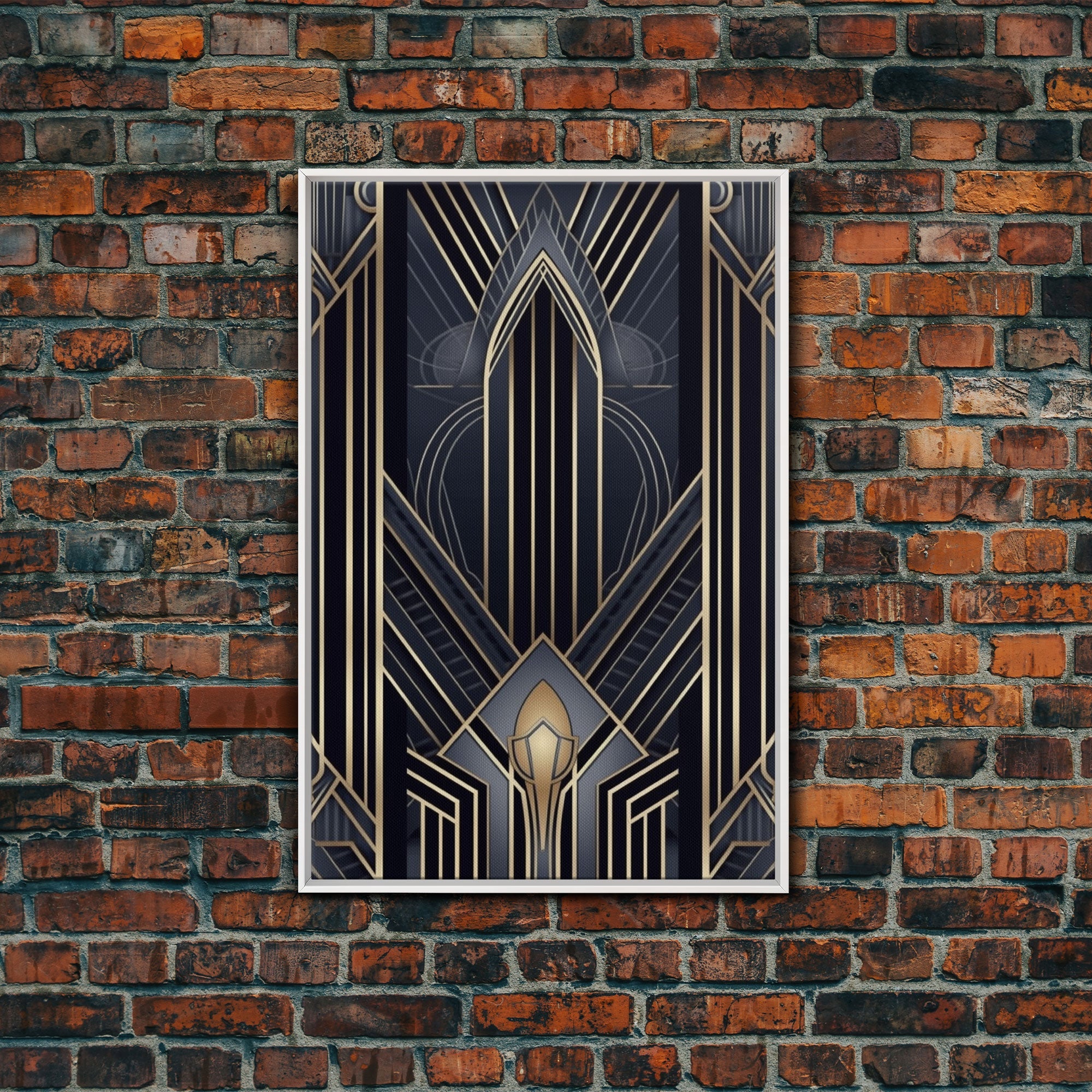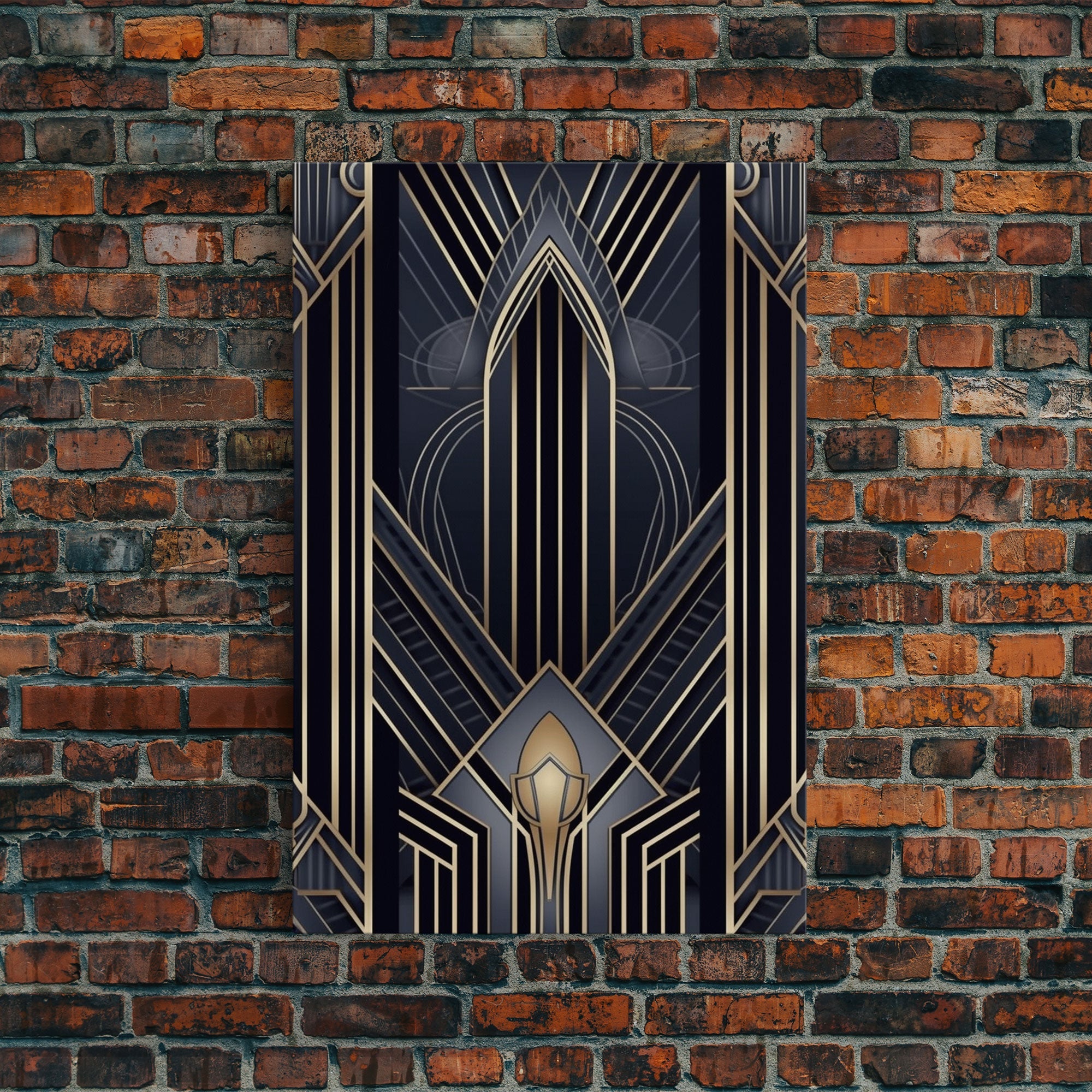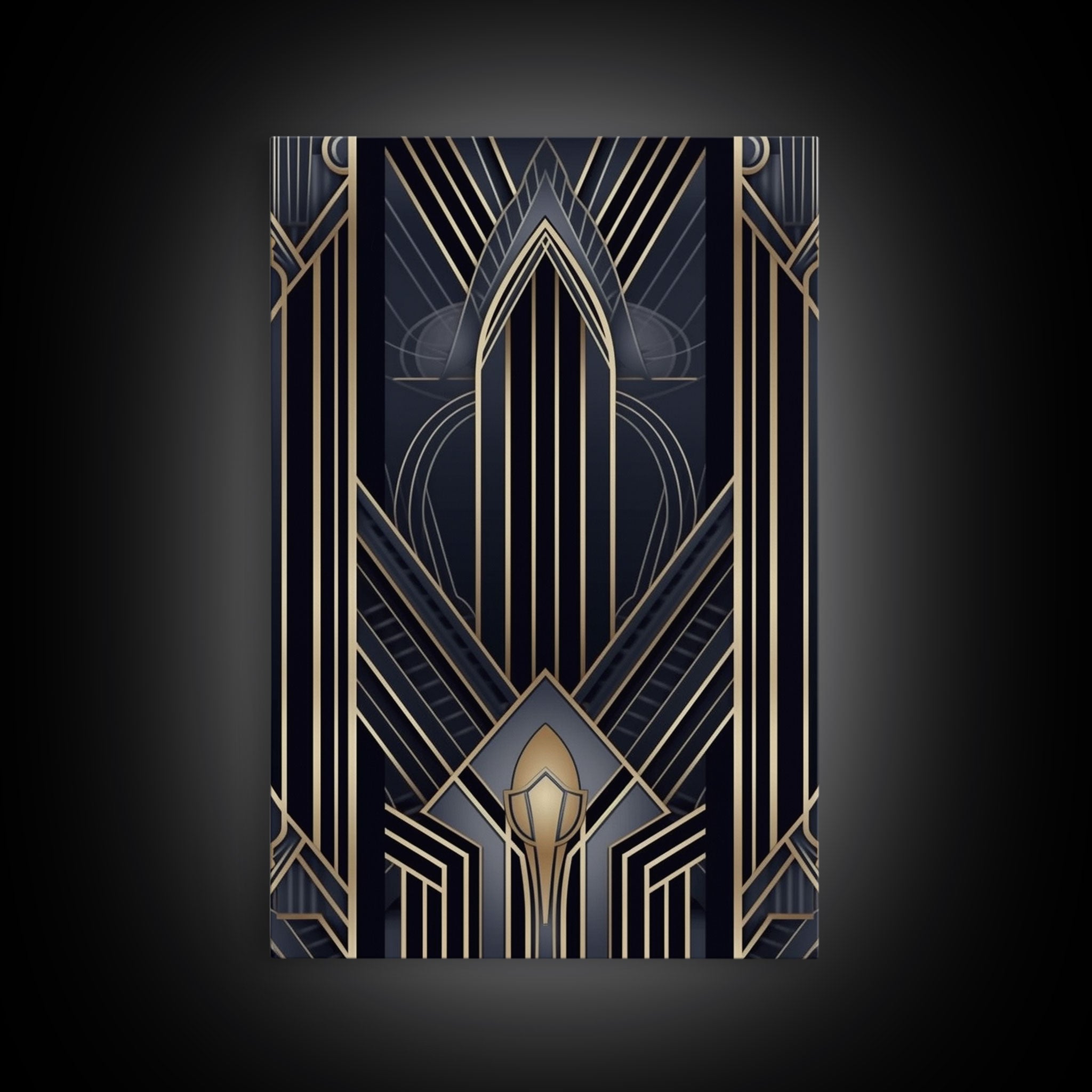 Art Deco Wall art, Framed Canvas Print, Art Deco, Gold & blue art, Guest room art, Midcentury Modern, Stained glass art, Original painting