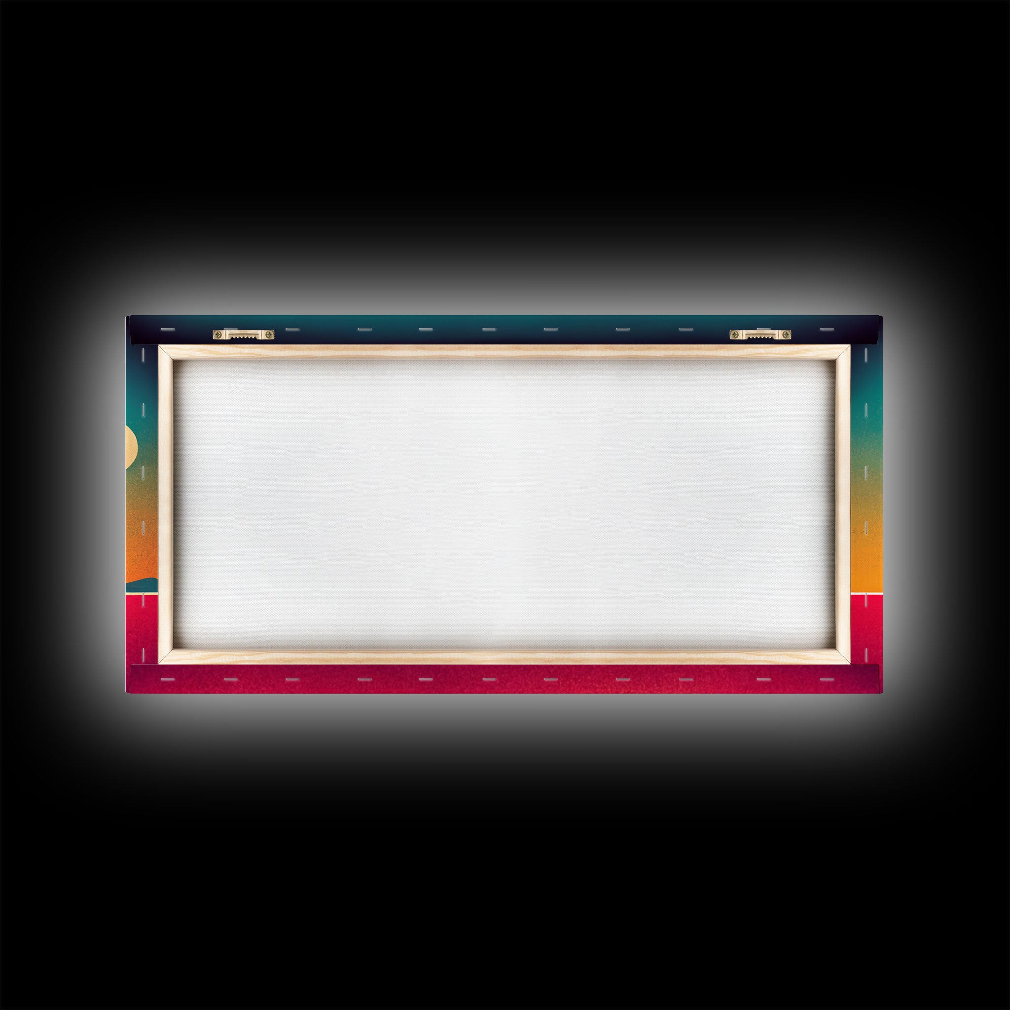 Art Deco Wall Decor, Wall Art, Framed Canvas Print, Retro Style Sunset Art, Scifi Wall Decor, 2 Suns