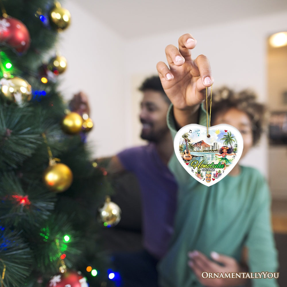 Transport yourself to the idyllic shores of Honolulu, Hawaii, with our exquisitely crafted Christmas ornament, a radiant fusion of artistic finesse and tropical charm. This vibrant keepsake captures the essence of Hawaiian paradise, featuring iconic symbols of the Aloha State amidst lush foliage and azure waves, ensuring every glance evokes memories of sun-kissed days and balmy evenings. Perfect for adorning your holiday tree or as a cherished souvenir, this ornament embodies the spirit of the Pacific, making it an unforgettable gift for anyone longing for a touch of island magic this festive season. 🌺