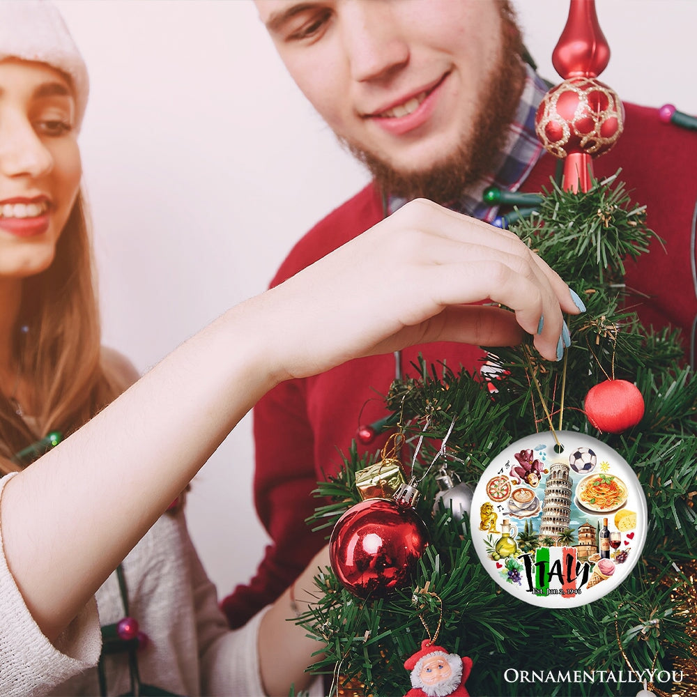 Embark on a visual journey through Italy's enchanting landmarks. 🇮🇹🎄 Crafted in exquisite ceramic, this ornament showcases the icons that define Italy's allure. From the grandeur of the Leaning Tower of Pisa to the timeless beauty of Carnival of Venice, it captures the essence of Italy's rich history and culture. Meticulously designed with intricate detail, this ornament doubles as a cherished Italian souvenir and a delightful addition to your Christmas decor. Whether you've explored Italy firsthand or dream of visiting, celebrate the country's splendor with this ornament. 🌟🎁