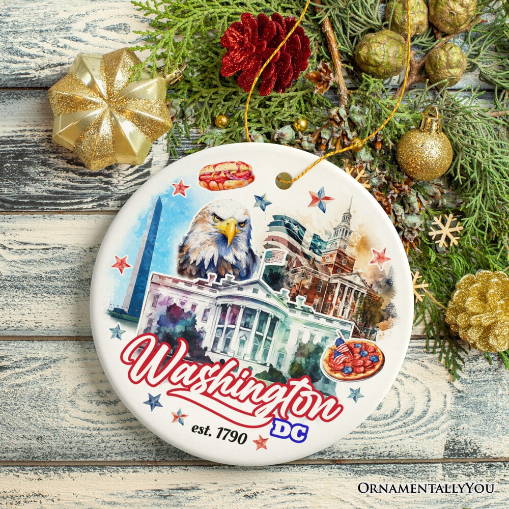 Artistic Washington DC Ceramic Ornament, Landmarks of the Nation’s Capital, White House Travel Souvenir
