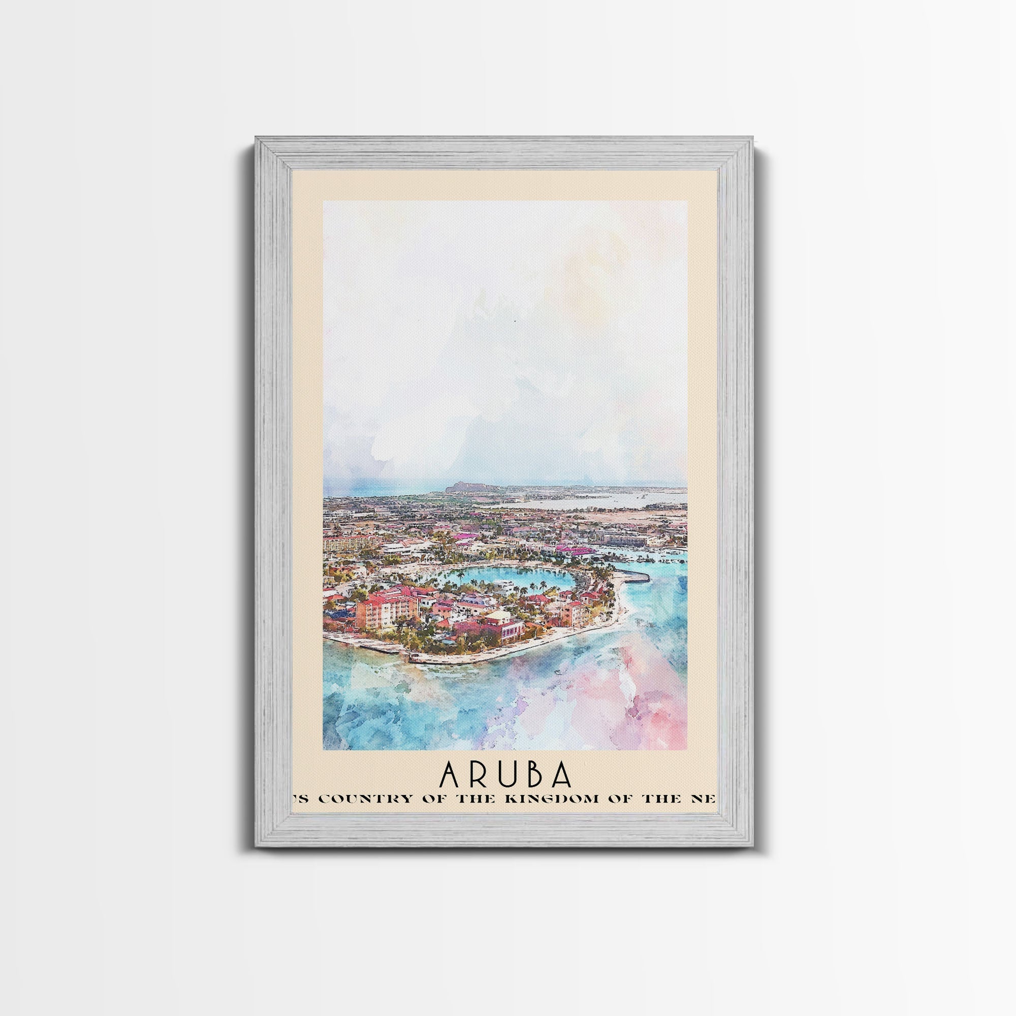 Aruba, autonomous country of the Kingdom of the Netherlands Watercolor Beach Print, Vacation Gift, autonomous country of the Kingdom of the Netherlands Wall Art, Framed Canvas Print, Framed Beach Painting