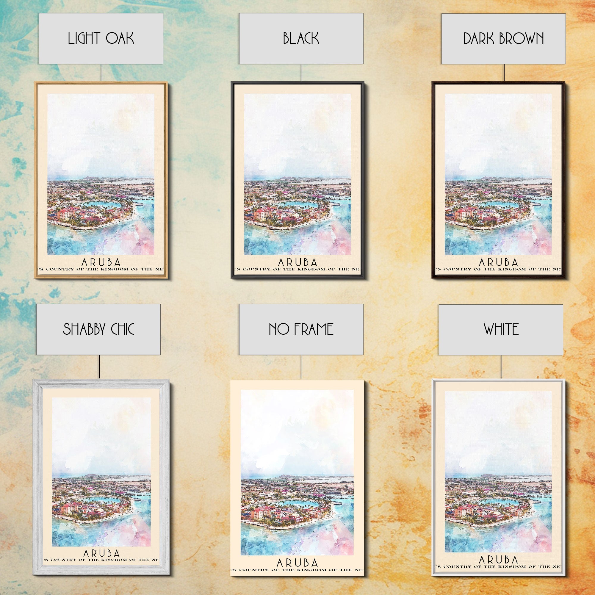 • Carregar imagem no visualizador da galeria, Aruba, autonomous country of the Kingdom of the Netherlands Watercolor Beach Print, Vacation Gift, autonomous country of the Kingdom of the Netherlands Wall Art, Framed Canvas Print, Framed Beach Painting