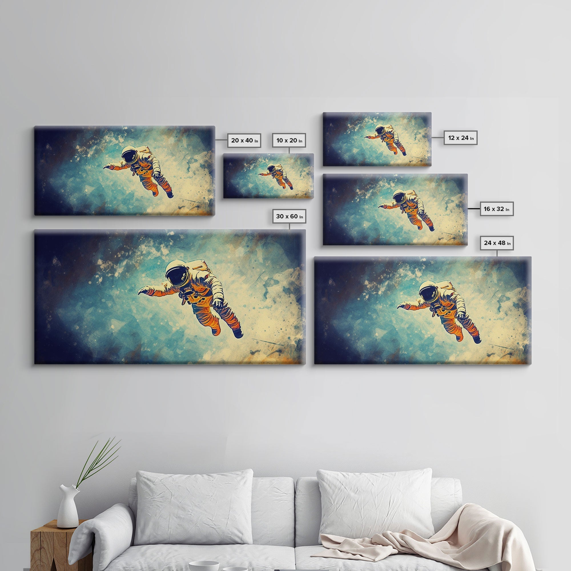 Astronaut In Space Wall Decor, Galaxy Wall Art, Outer Space Wall Art, Panoramic Wall Decor, Canvas Print, Wall Art, Framed Canvas Art