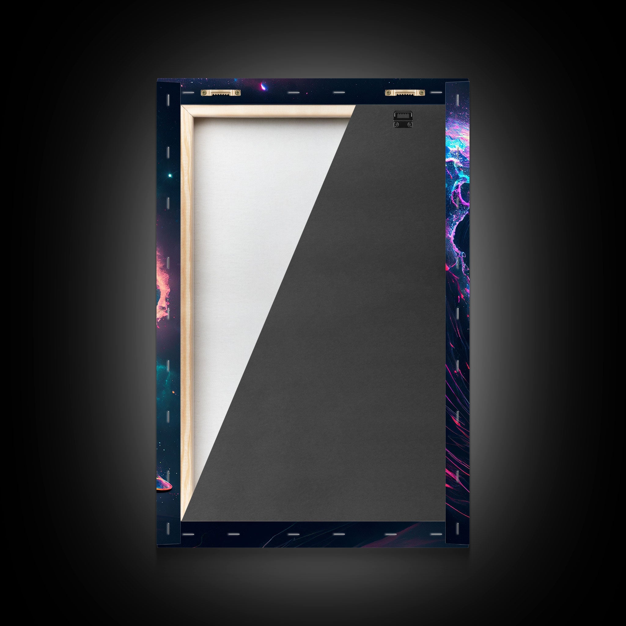 Astronaut surfing the stars, Cosmic Surfer, Galaxy Art, framed canvas print, unique colorful wall art