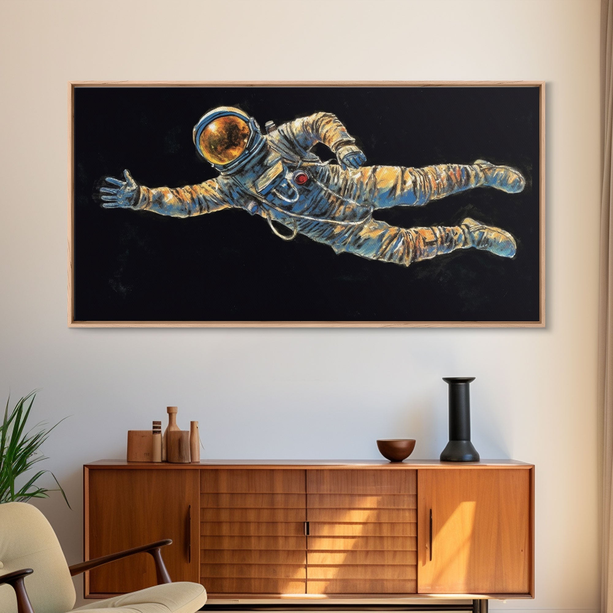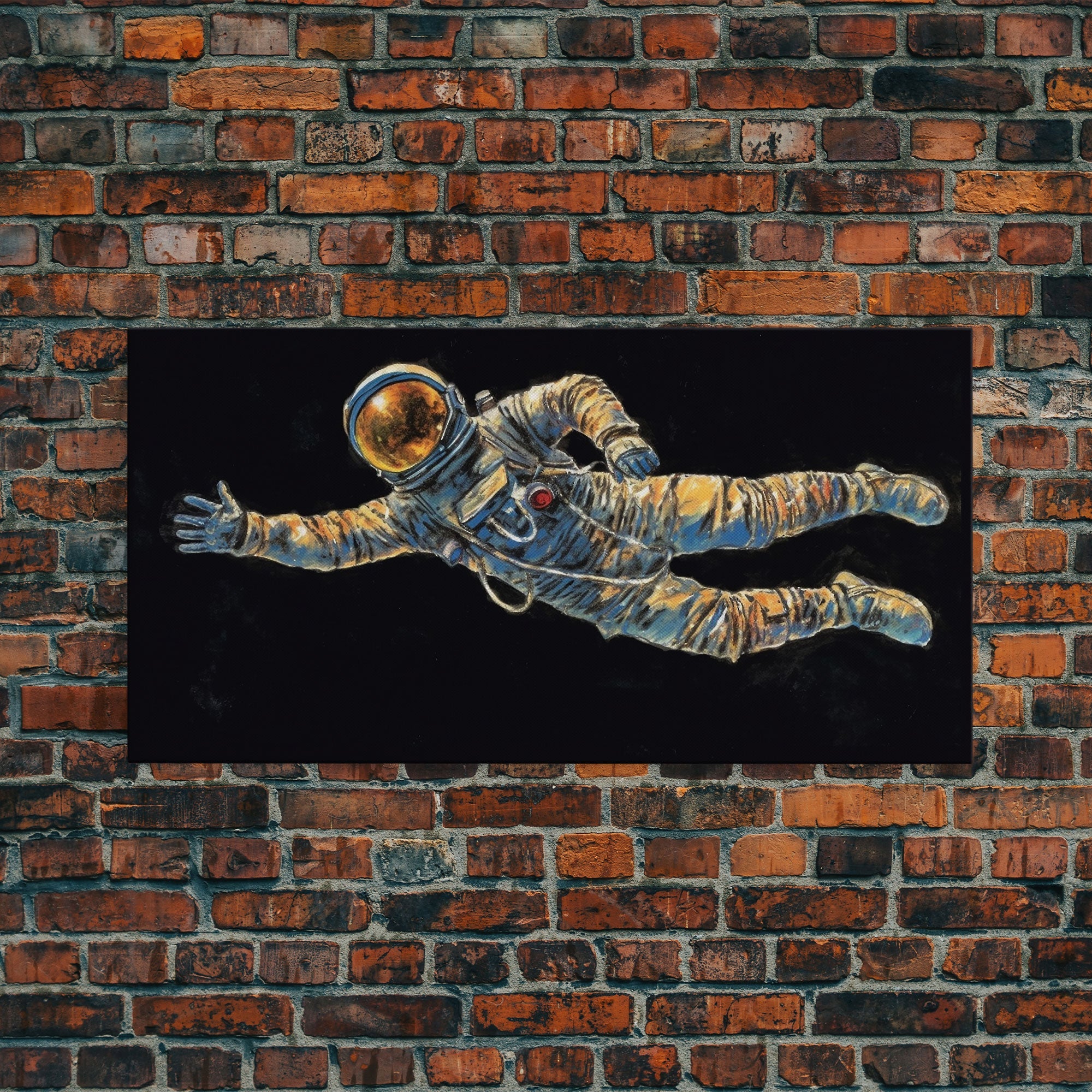 Astronaut Wall Decor, Space Suit Wall Art, Minimalist Wall Art, Panoramic Wall Decor, Canvas Print, Wall Art, Framed Canvas Art