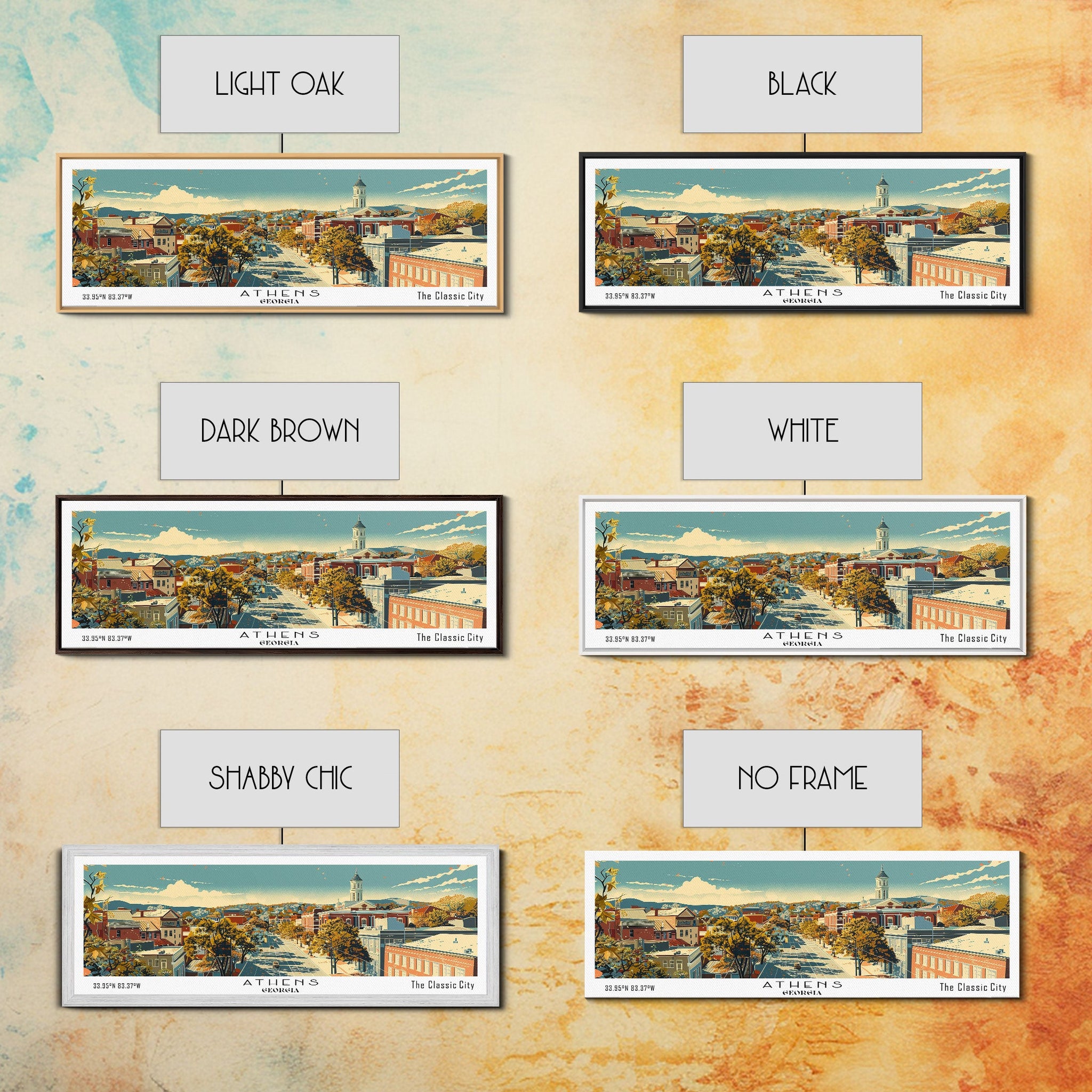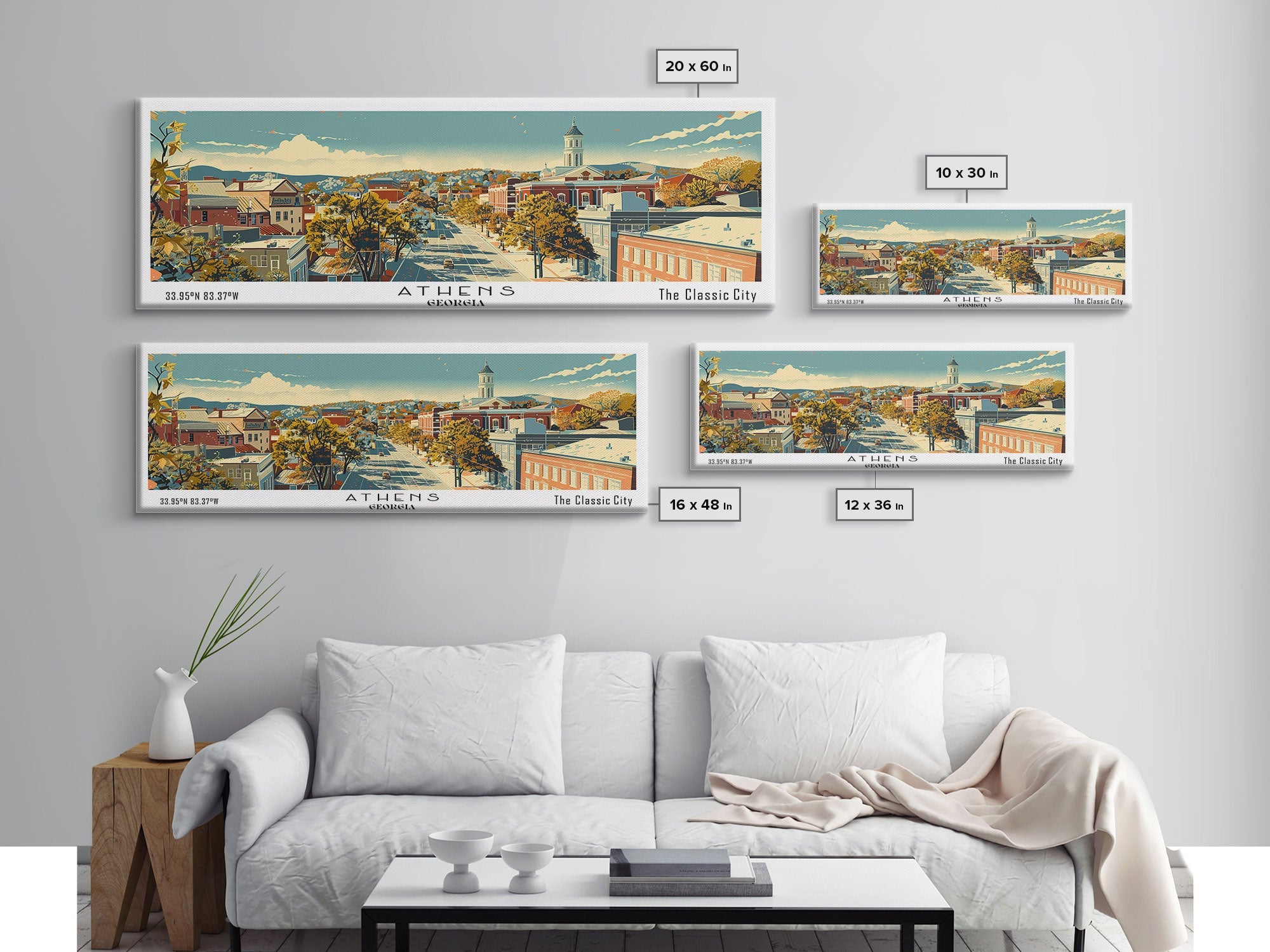 Athens Georgia Panoramic Painting, Mid Century Modern Framed Canvas Print, Retro Pop Art Travel Poster, Living Room Wall Art Decor, City Print