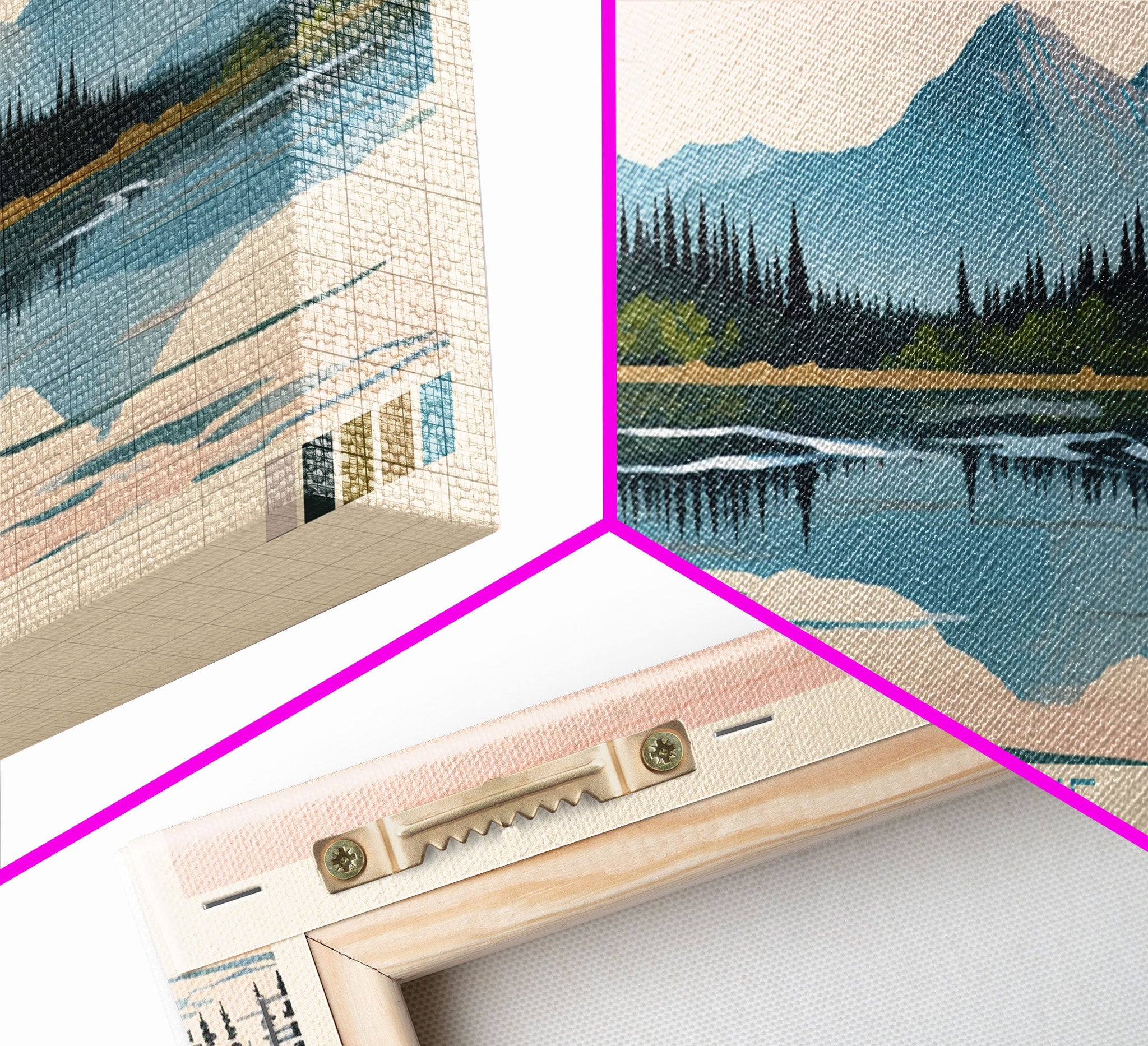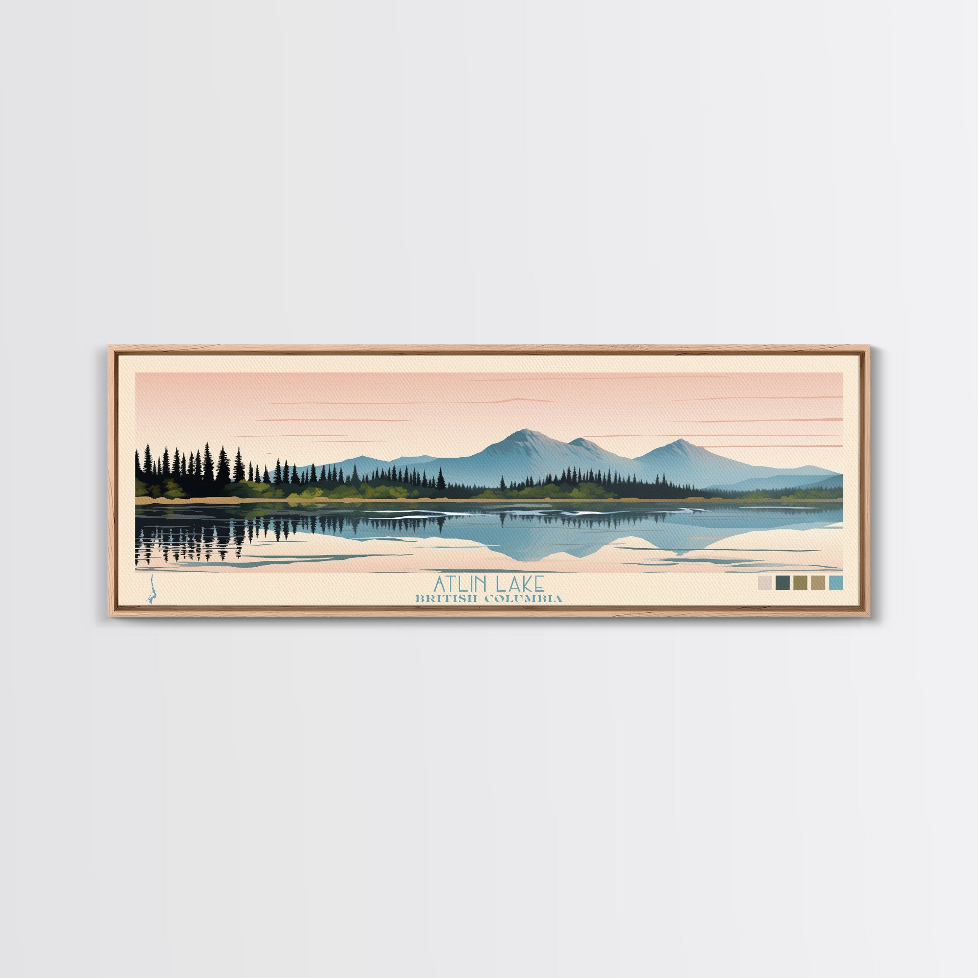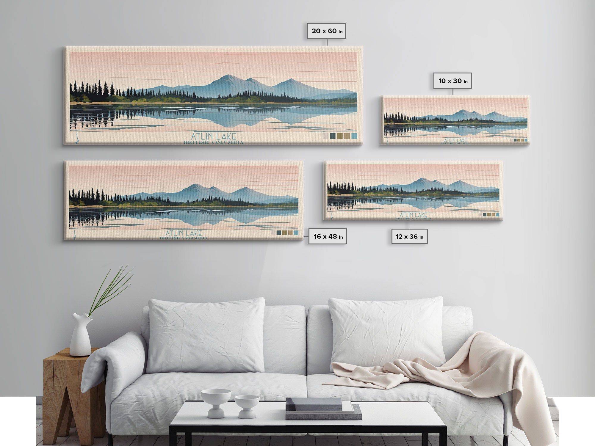 Atlin Lake British Columbia Framed Canvas Print, Panoramic Travel Poster, Midcentury Modern Wall Art, Pop Art, Bedroom Decor