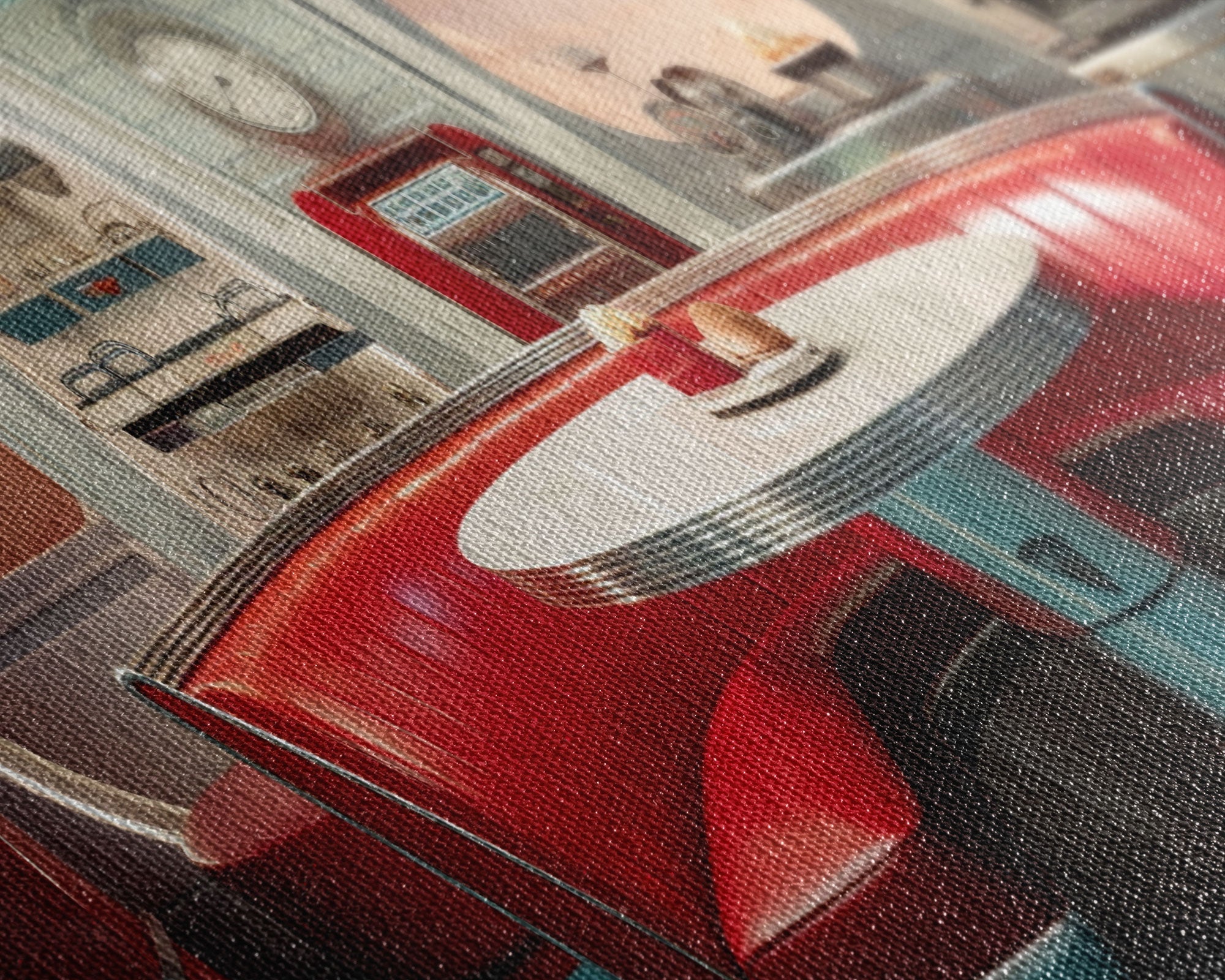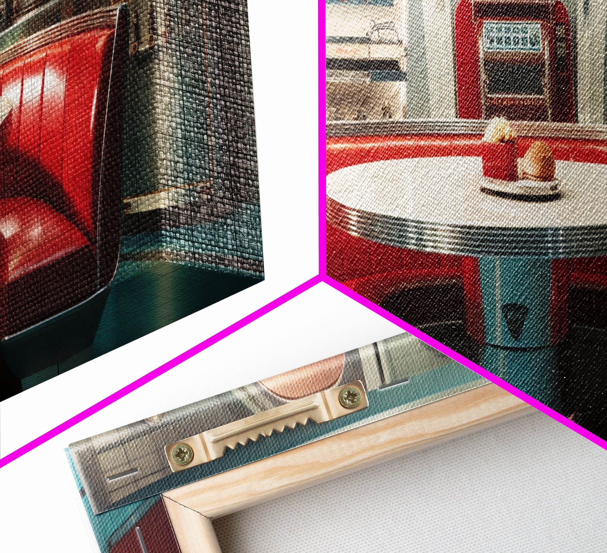 Atomic Age Scifi Style 1950s Diner Booth Wall Art, Framed Canvas Print, MCM, Midcentury Modern Wall Art, Diner Decor