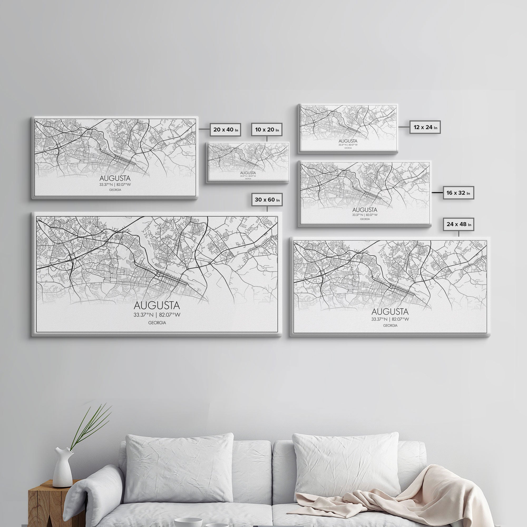 Augusta Street Map, Georgia Map, Map Print, Modern Art, Wall Art, Canvas Print, Farmhouse Décor, College Dorm Décor, Teacher Gift, Prints