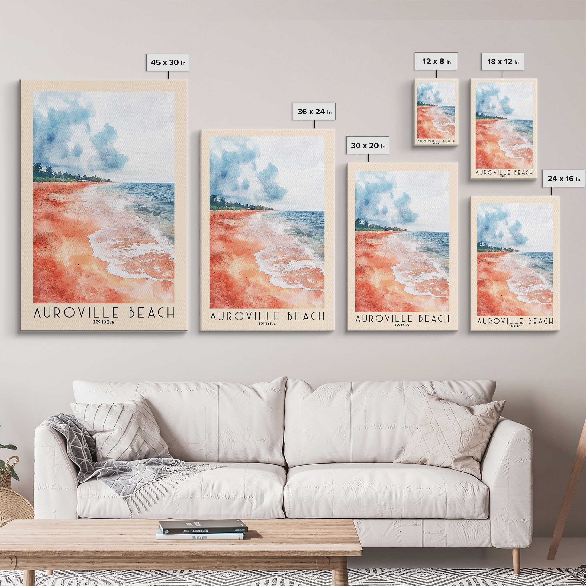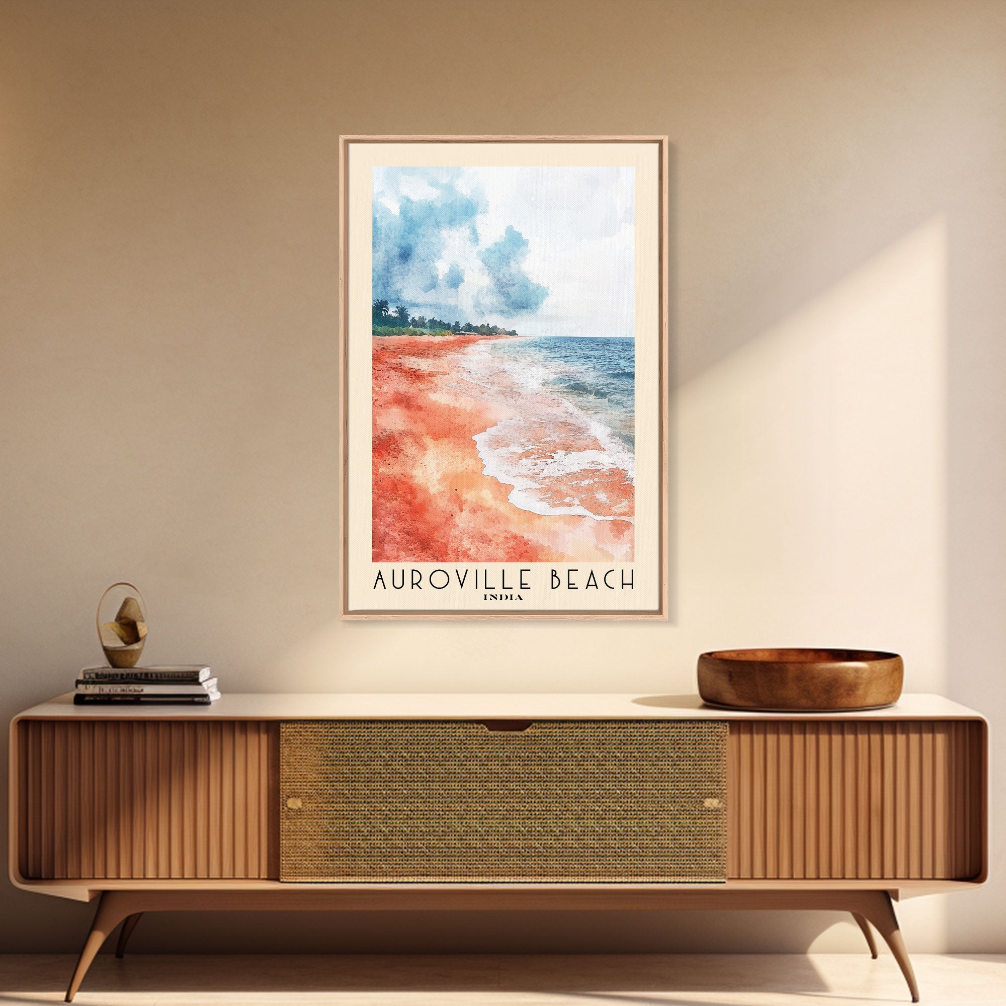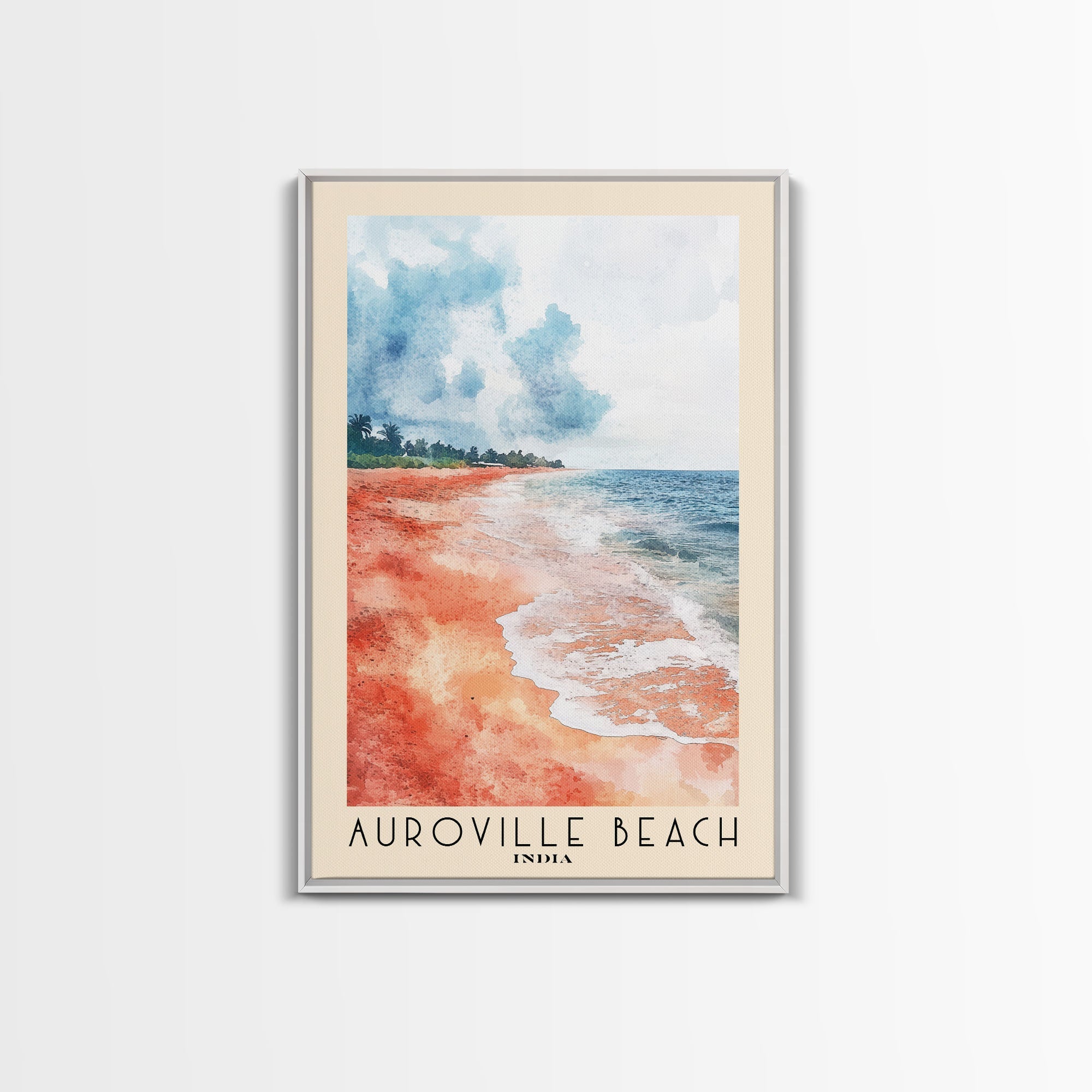 Auroville Beach, India Watercolor Beach Print, Vacation Gift, India Wall Art, Framed Canvas Print, Framed Beach Painting