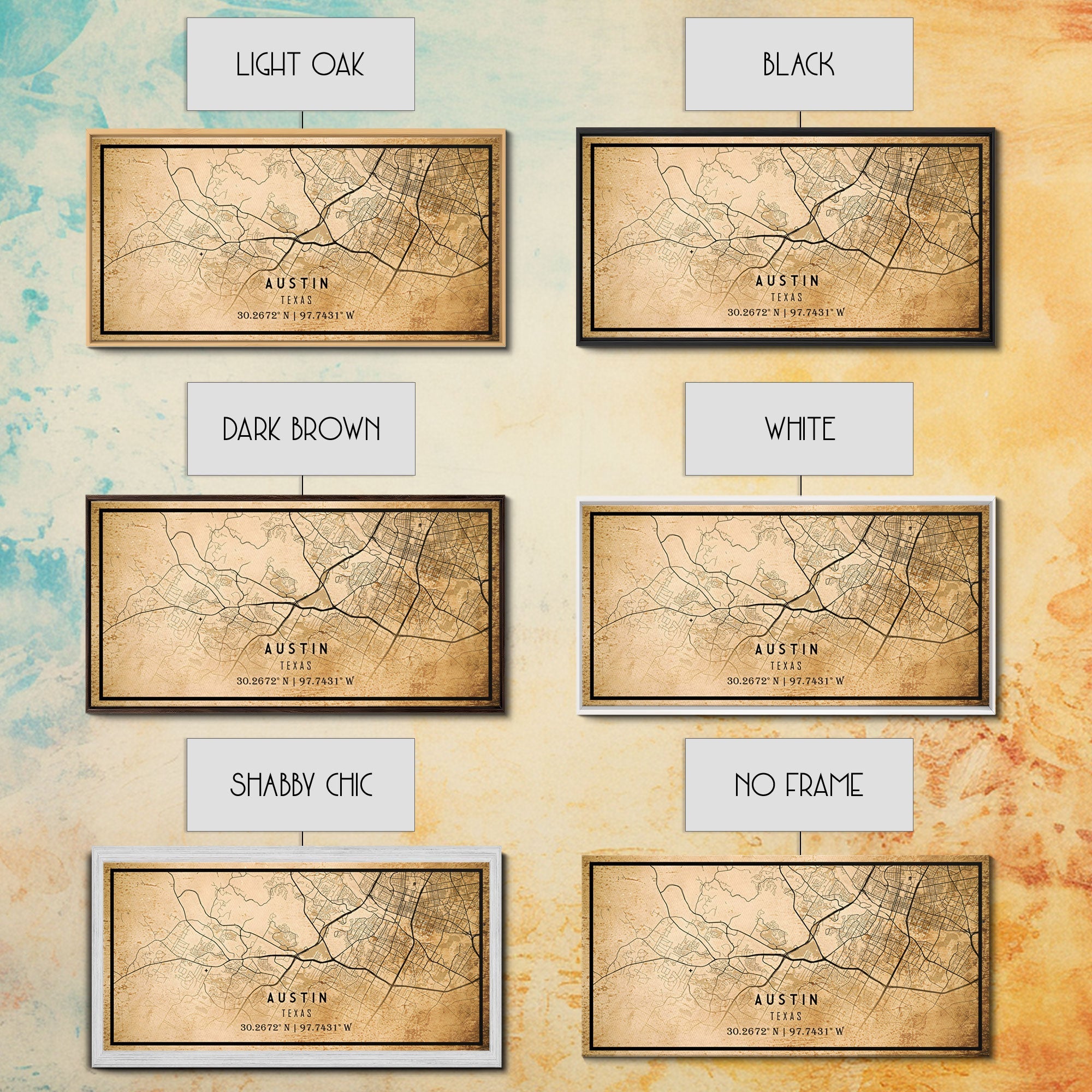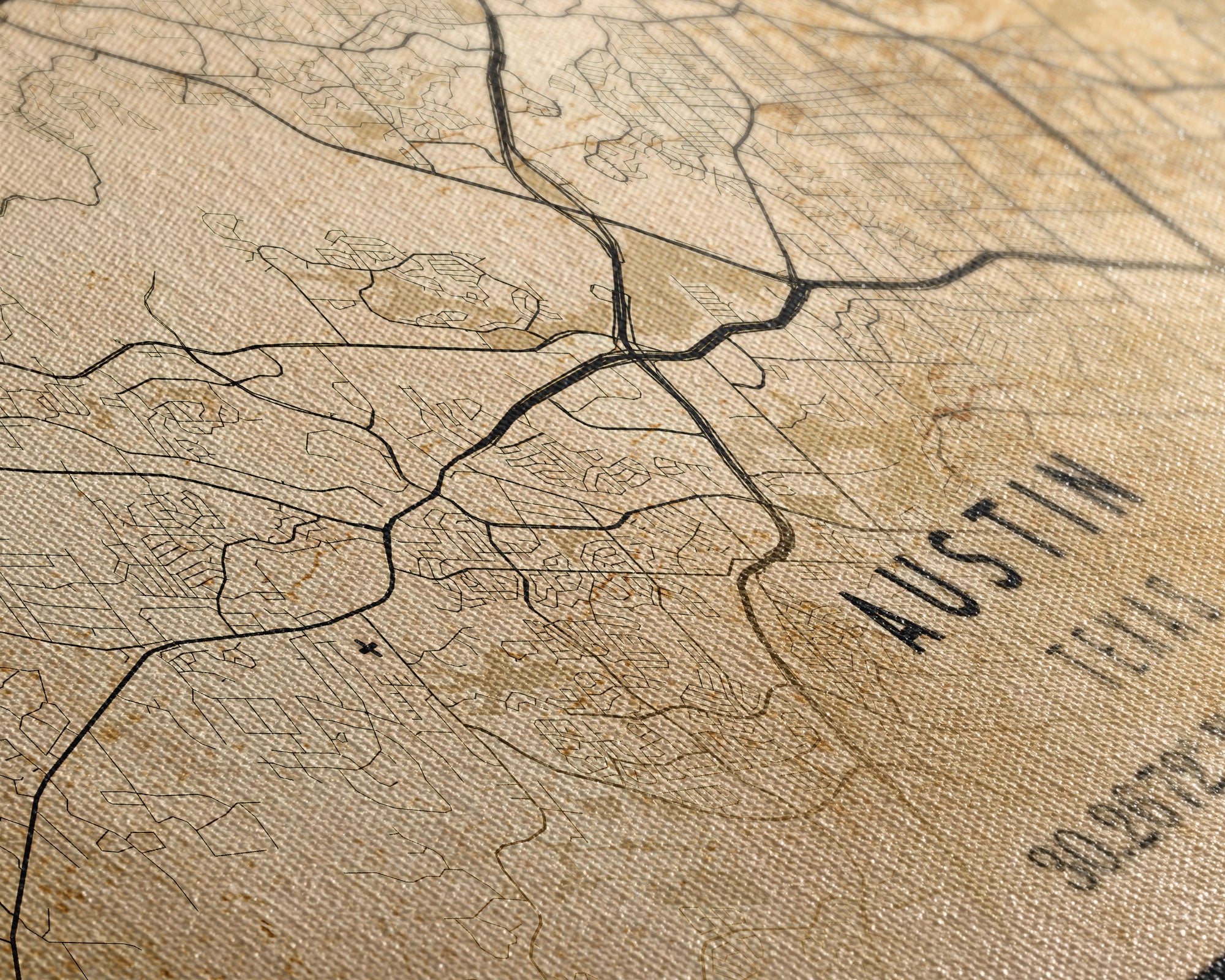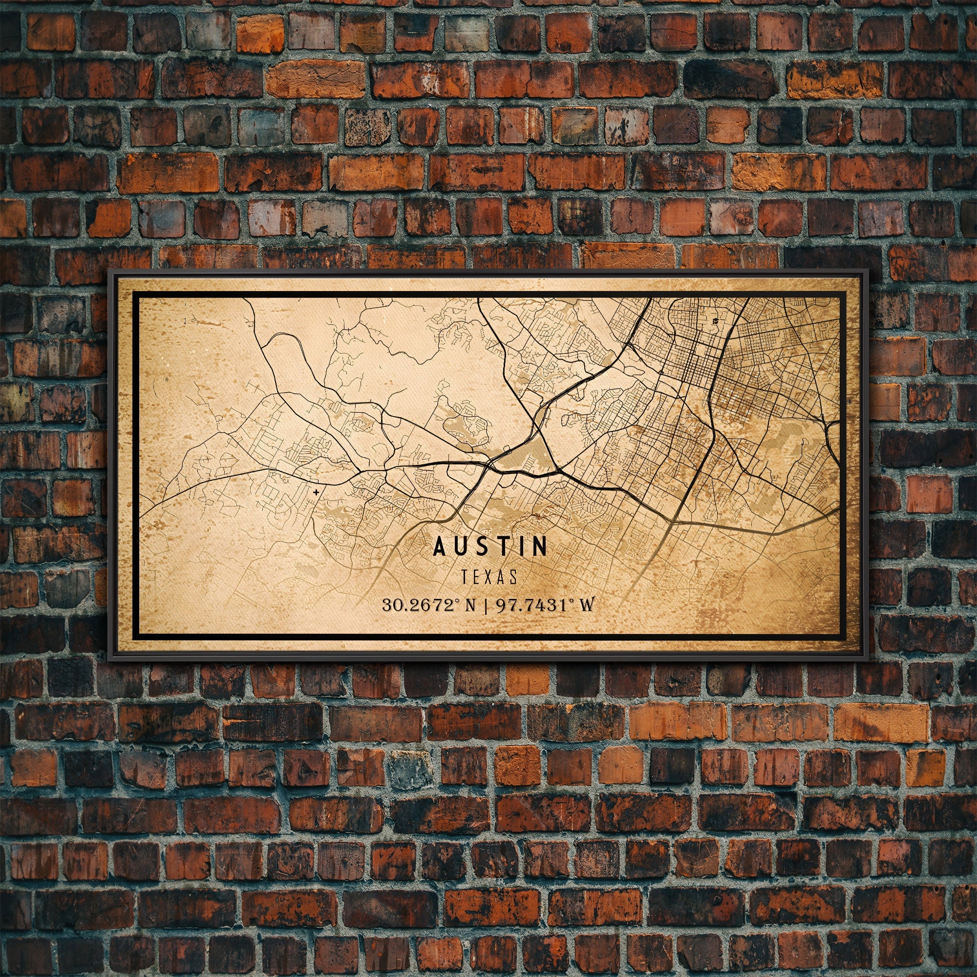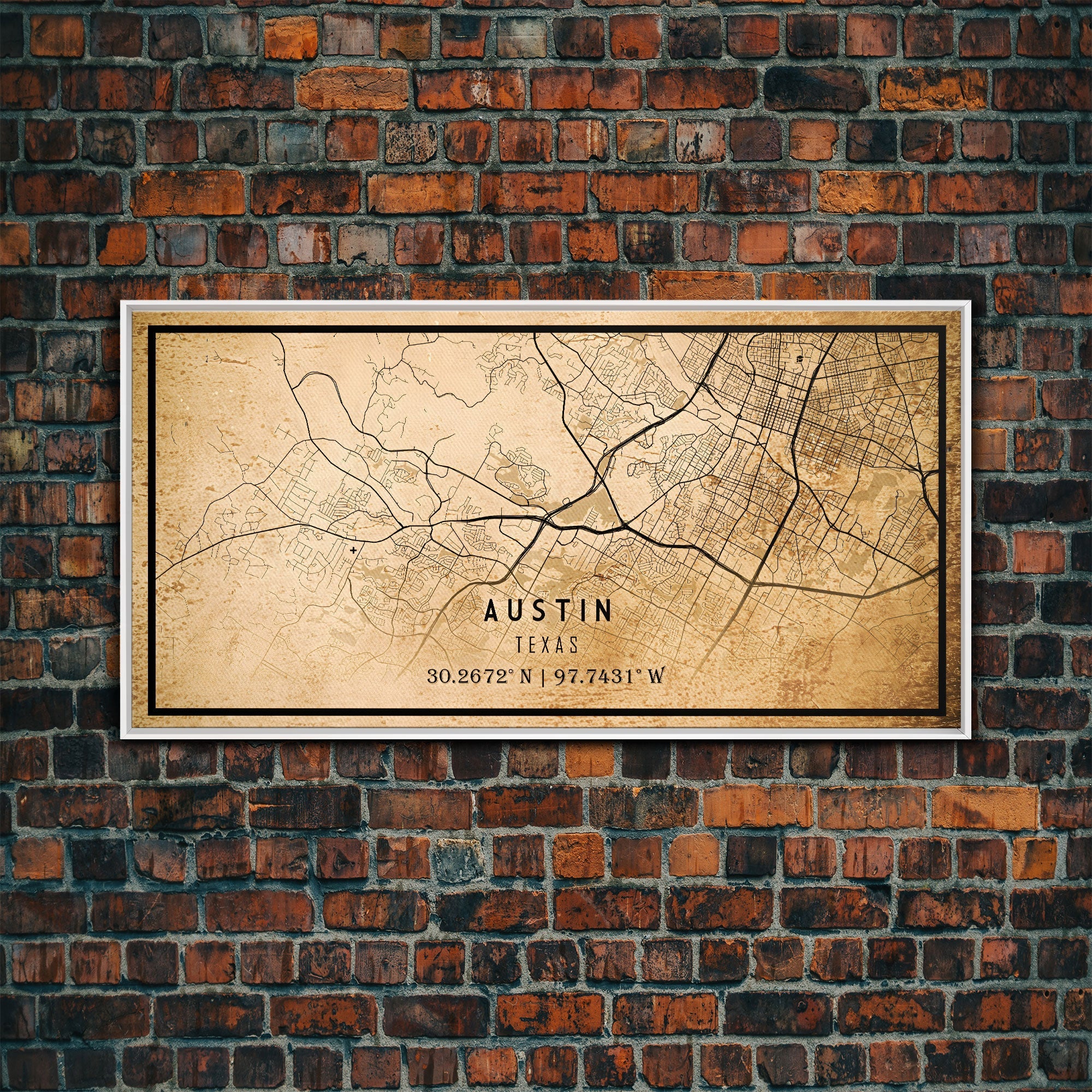 Austin Map Print Canvas or Poster, Texas Map Art, Texas Map Print, Vintage Austin Texas Map Framed Art, Retro / Distressed Office Art
