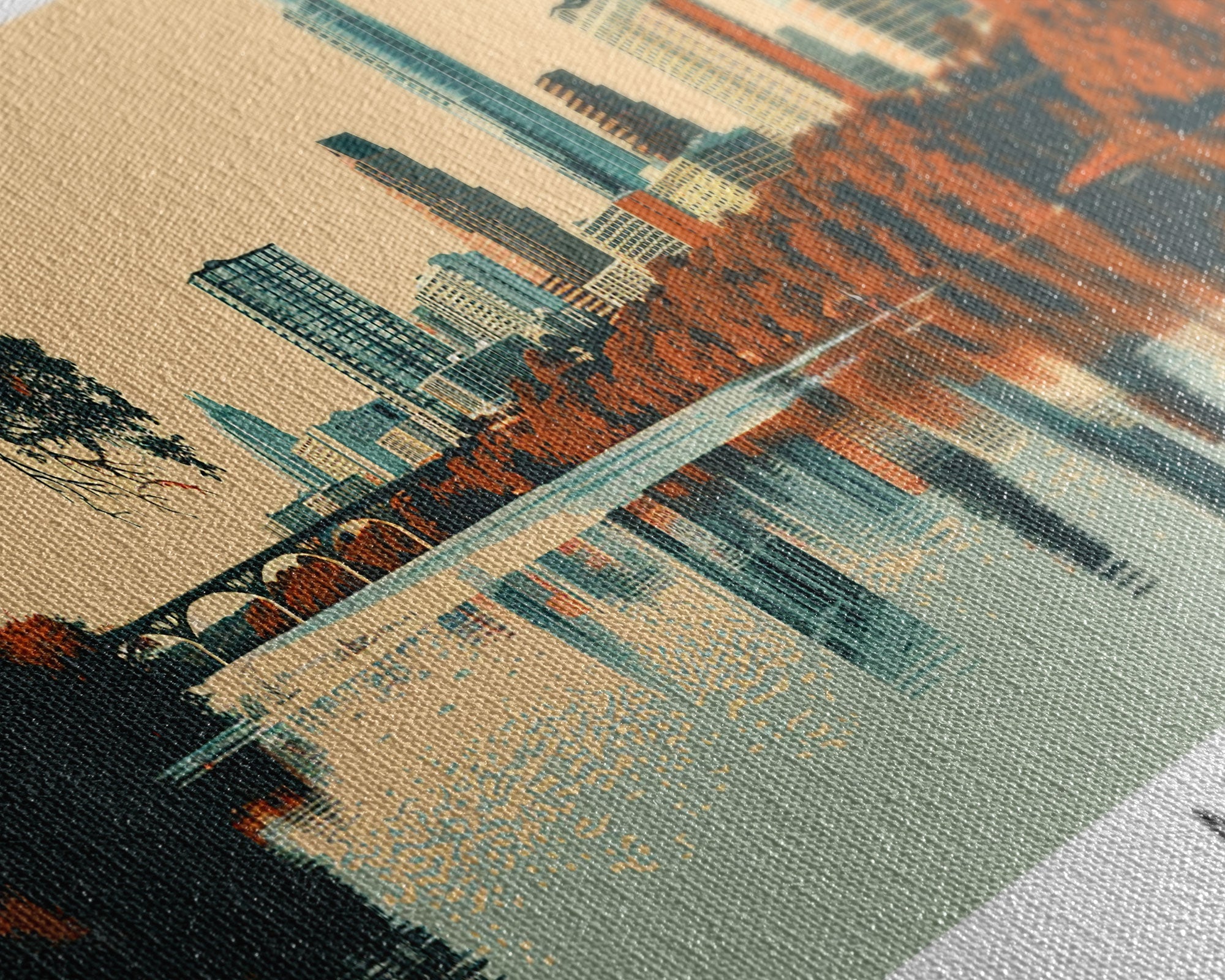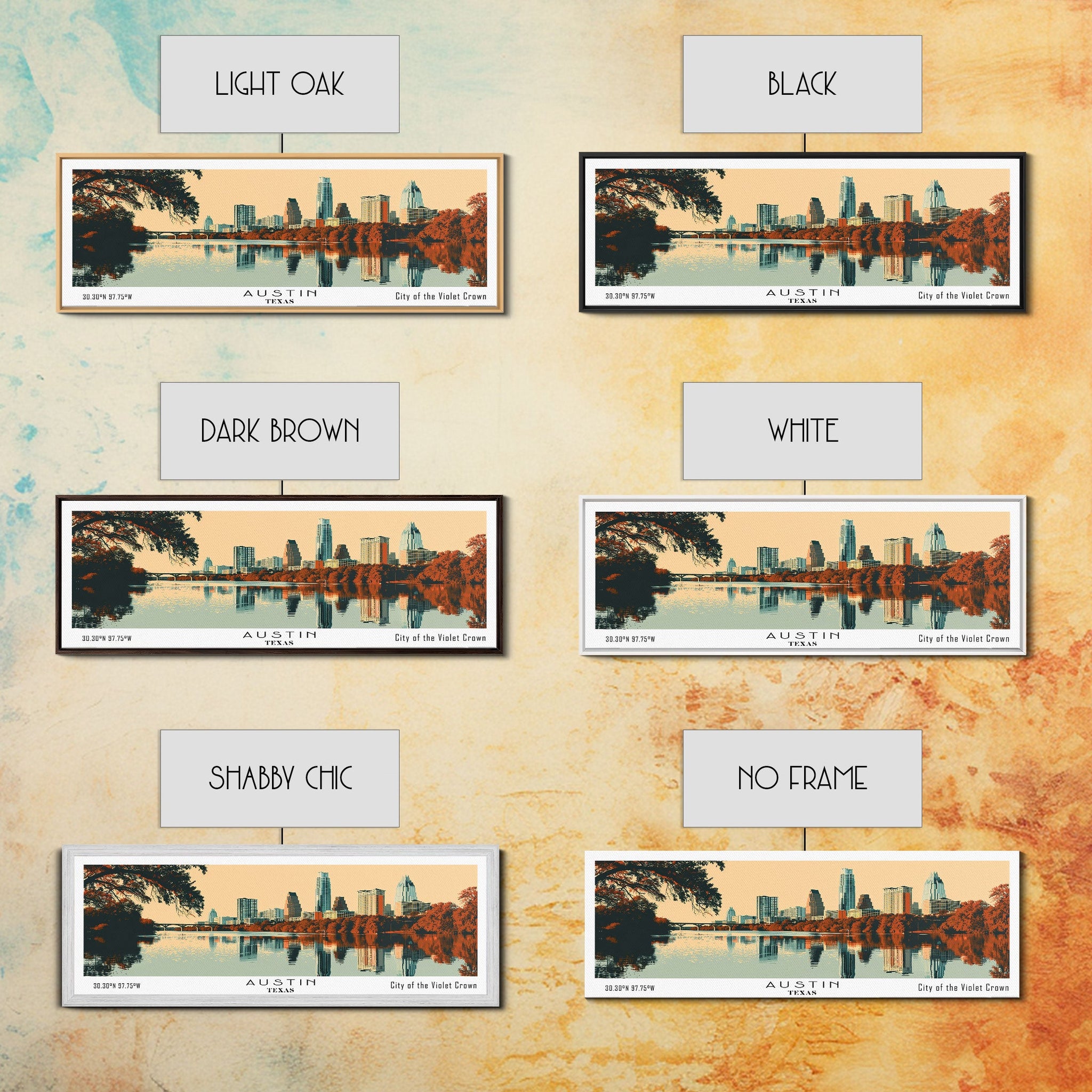 Austin Texas Panoramic Painting, Mid Century Modern Framed Canvas Print, Retro Pop Art Travel Poster, Home Decor, City Art