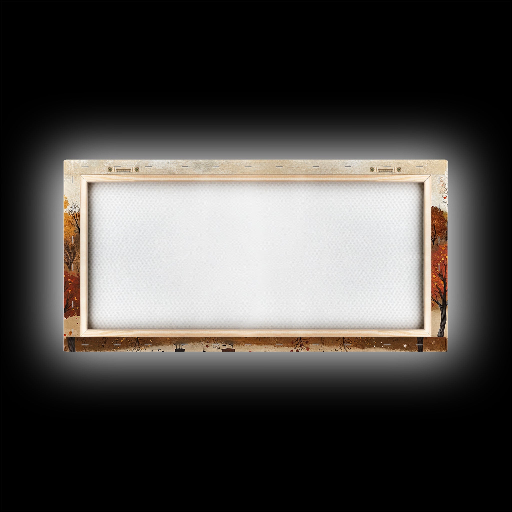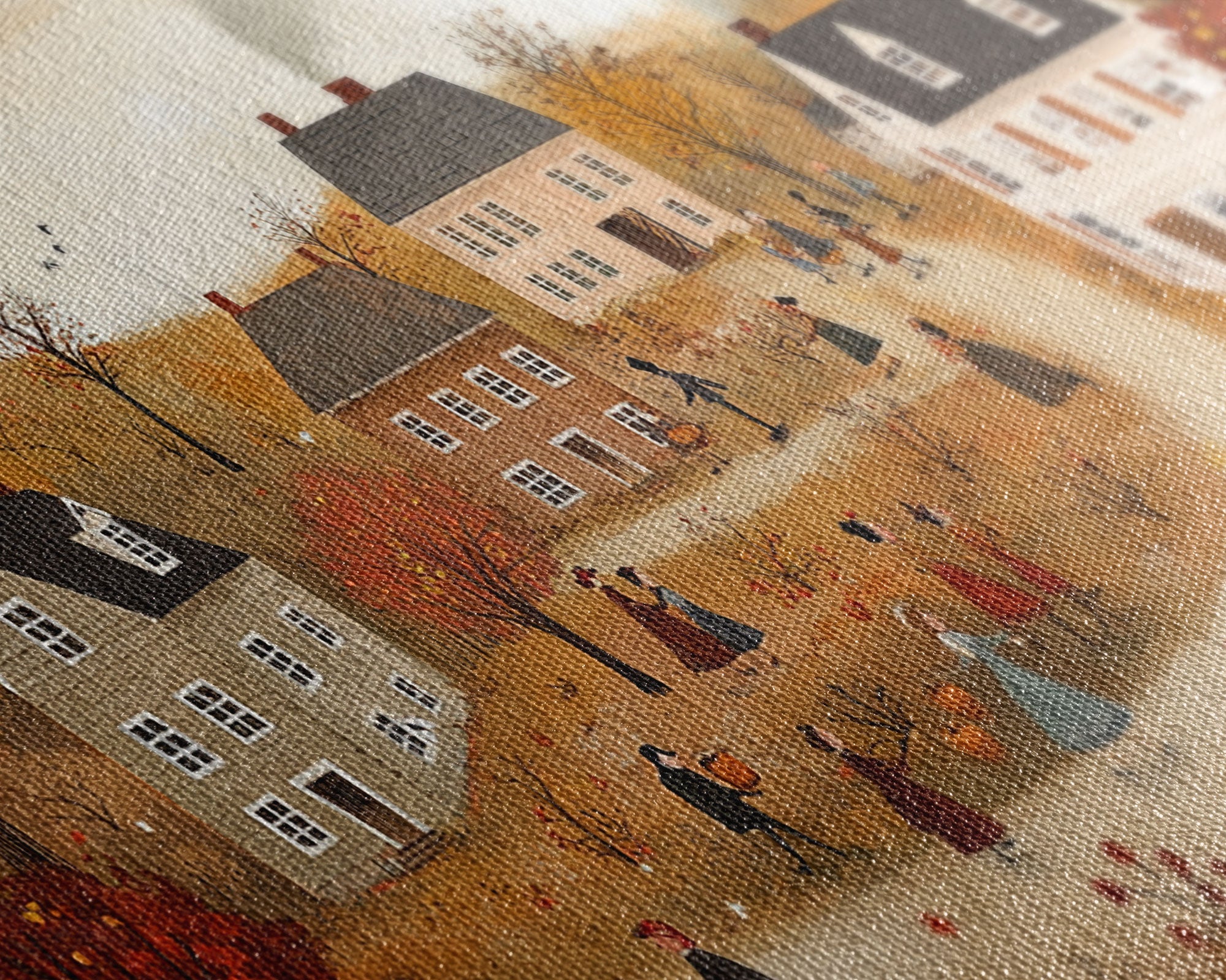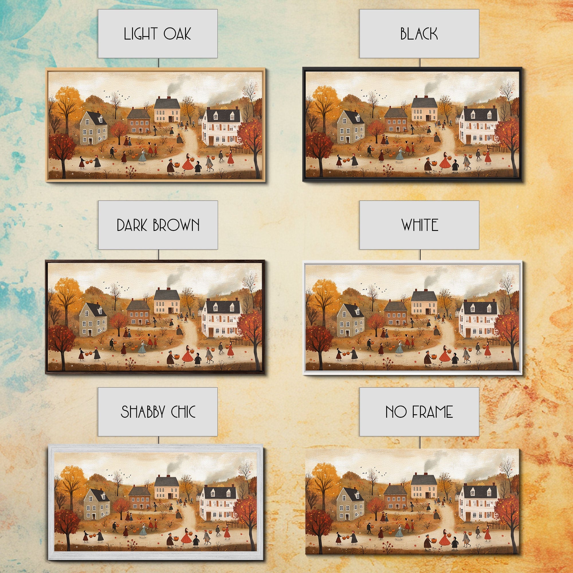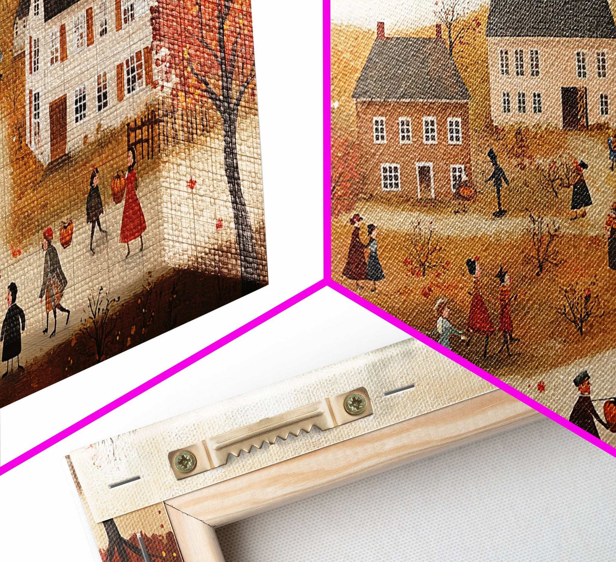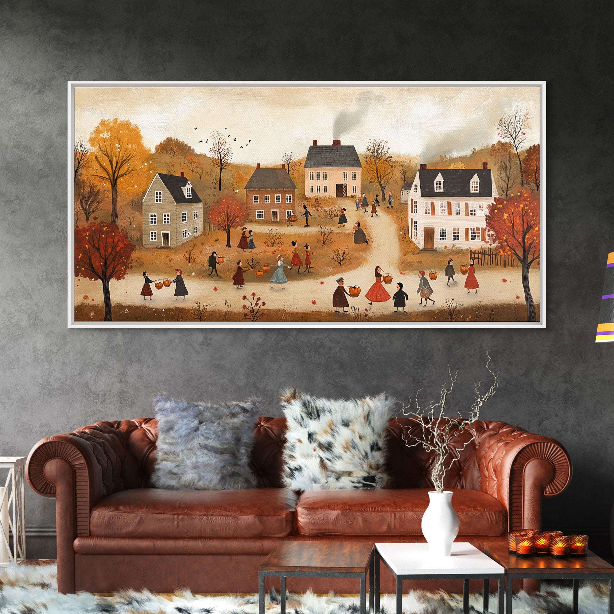 Autumn Harvest Village Scene Framed Canvas Print - Cozy Fall Decor and Seasonal Wall Art with Country Charm and Autumn Ambiance