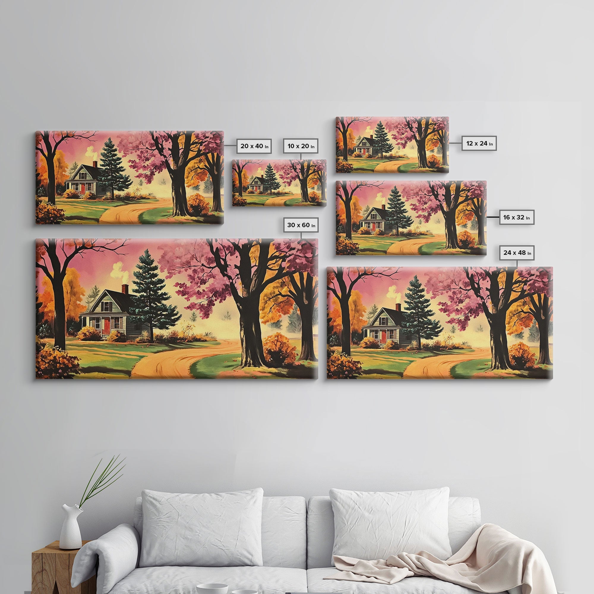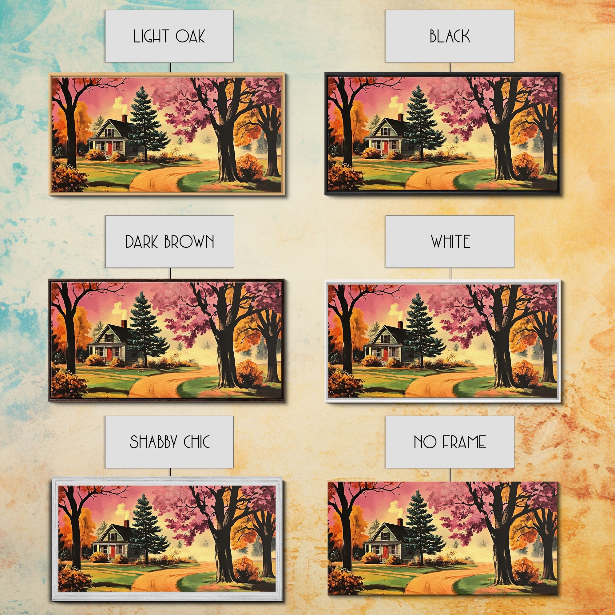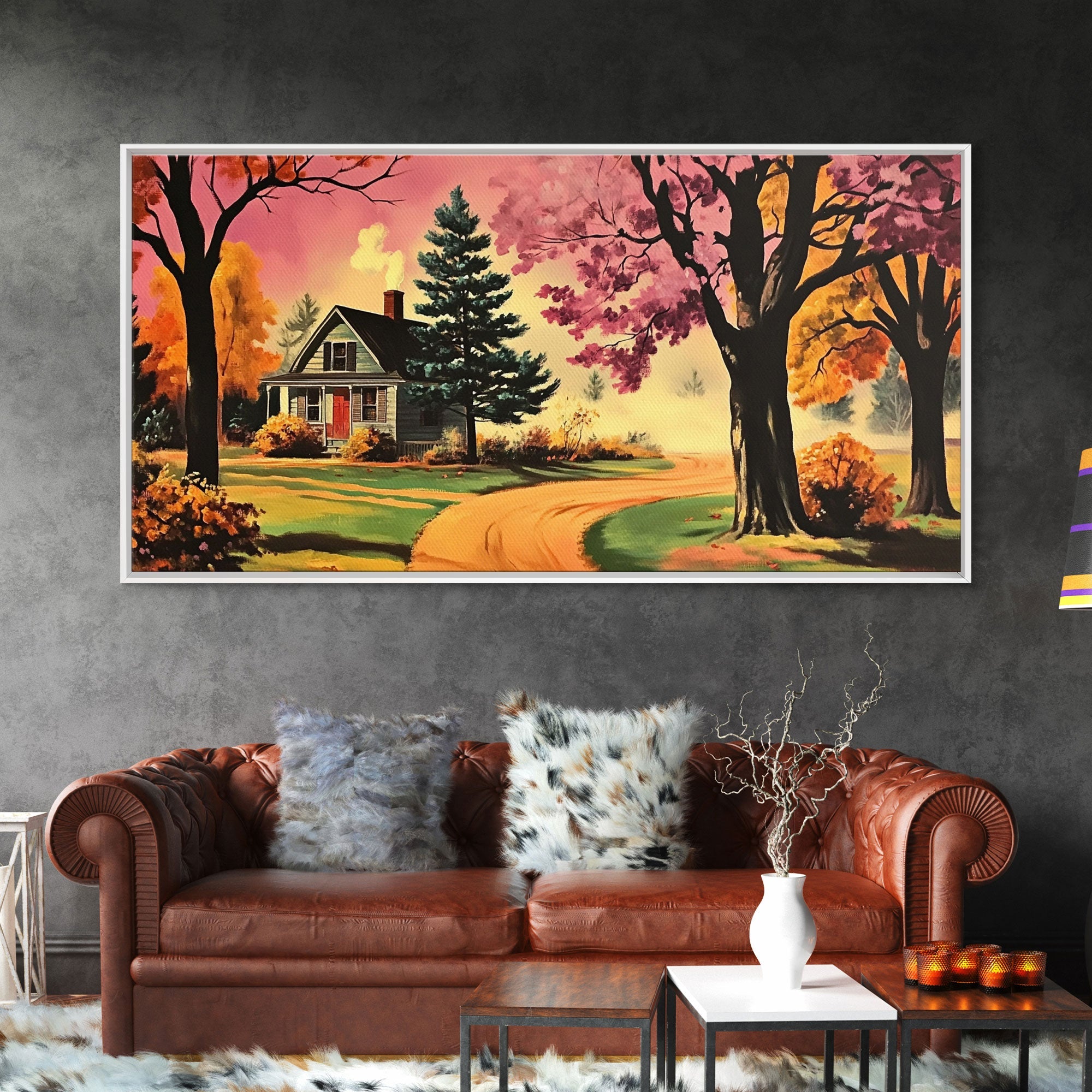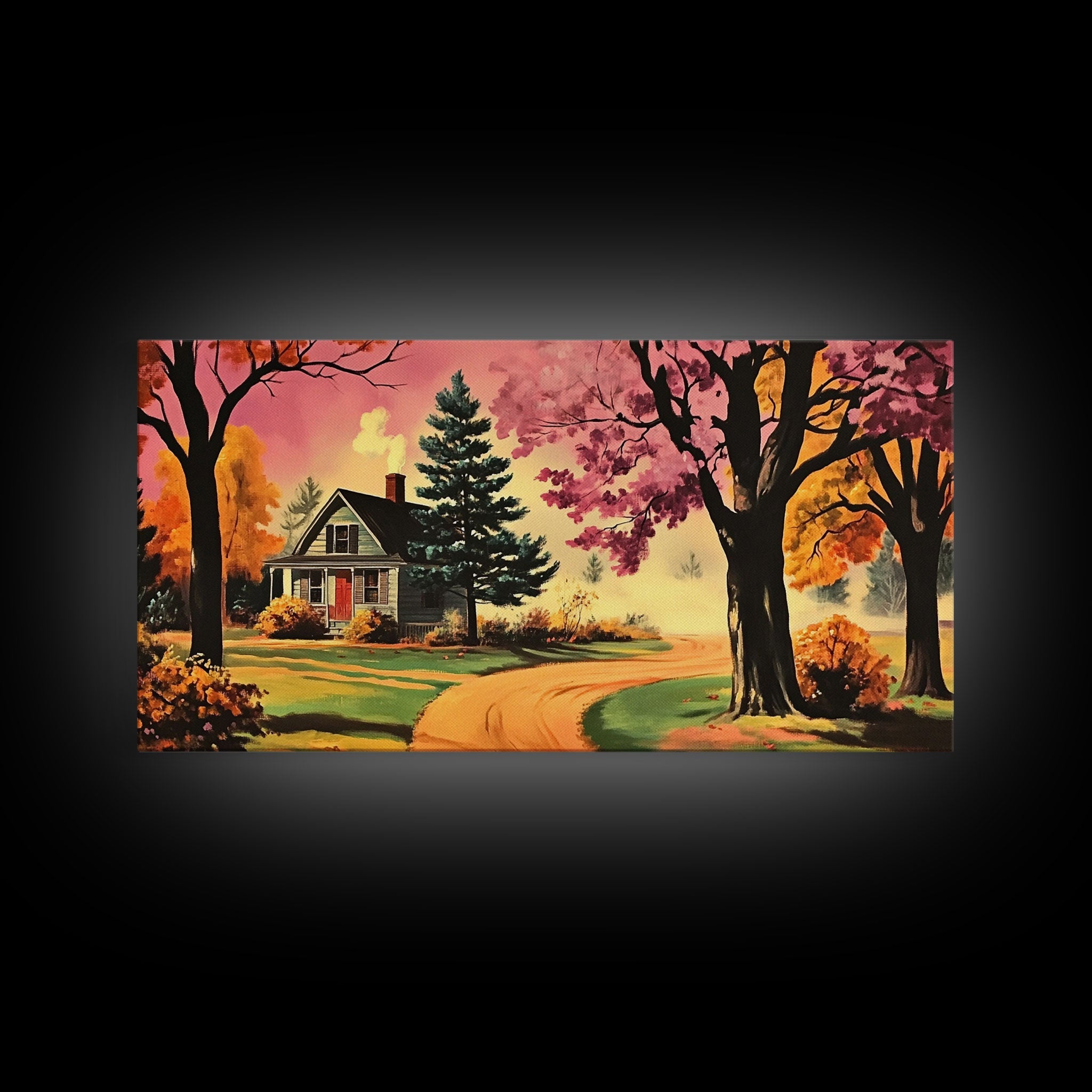 Autumn Landscape Framed Canvas Print, Cozy Country Farmhouse Pathway Art, Fall Home Decor, Modern Farmhouse Seasonal Wall Art Gift Idea