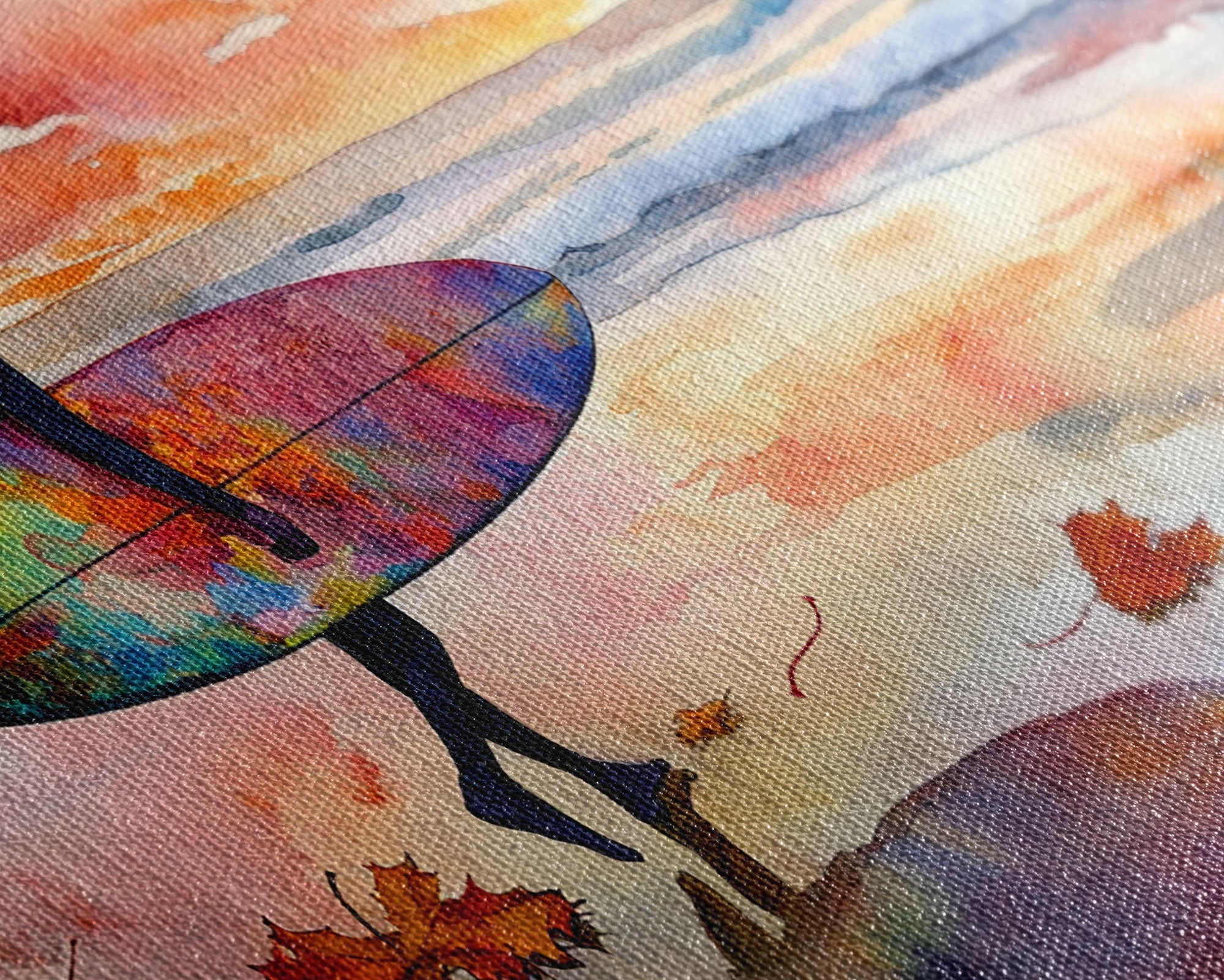Autumn Surfing Sunset Canvas Print | Fall Surf Art Gift | Seasonal Wall Art Decor | Gift Idea | Beach Decor Fall Theme | Framed Canvas Print
