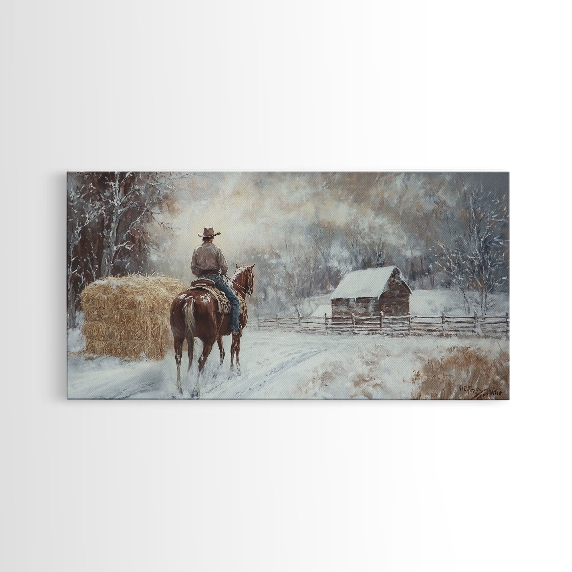 Autumn-themed Framed Canvas Print of a cowgirl in a pumpkin patch surrounded by vibrant fall leaves, seasonal decor and cozy fall accents