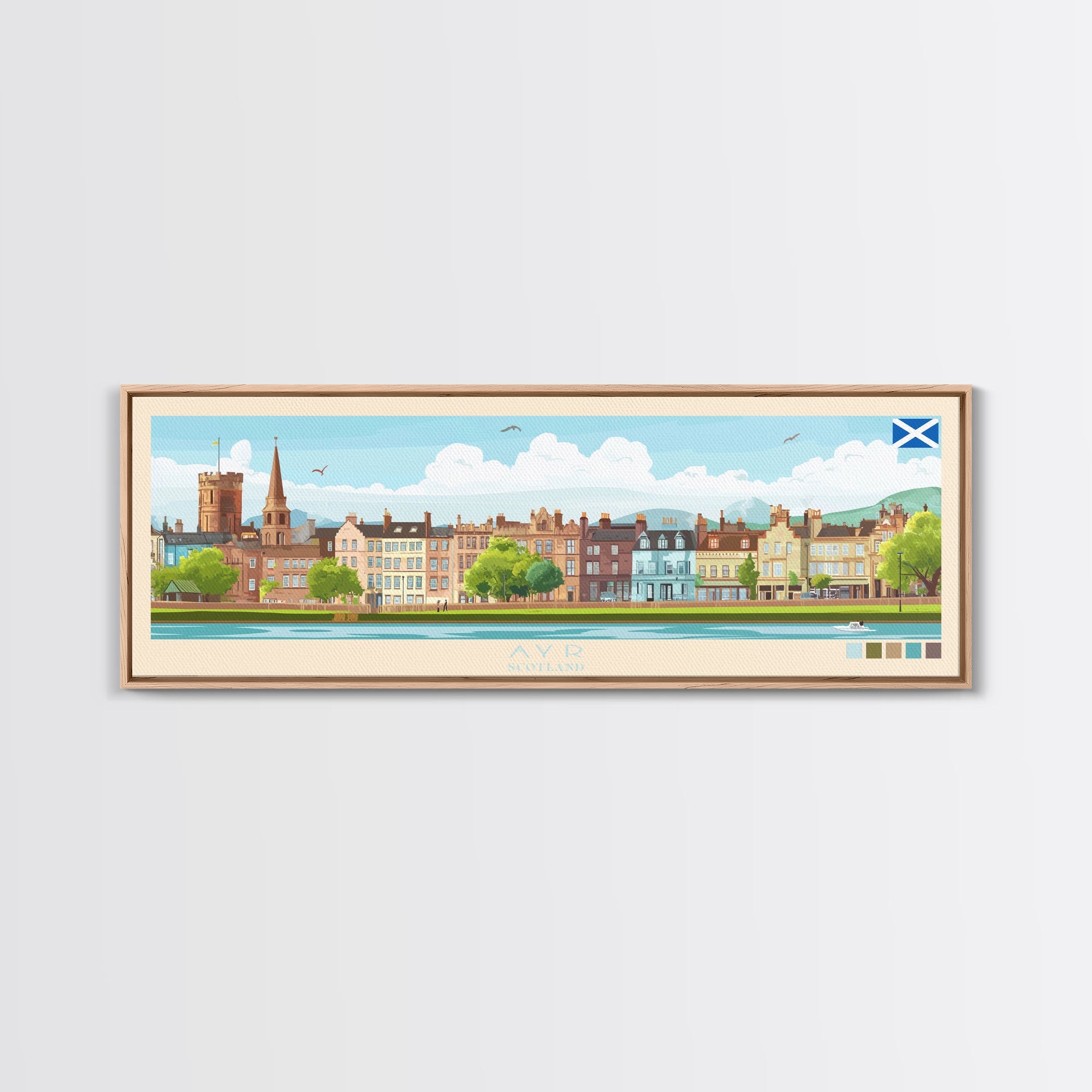 Ayr, Scotland Panoramic Travel Poster Canvas Print, Ayr, Scotland Painting, Scotland Art, Ayr Travel Art, Living Room Painting