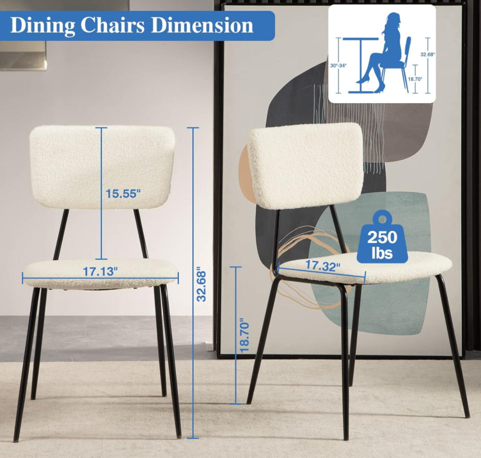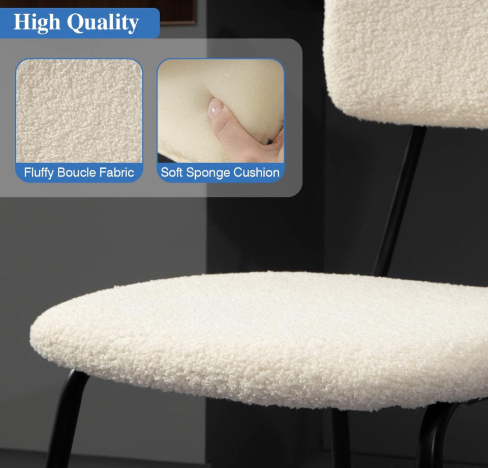RICH BOUCLE FABRIC - The selected materials and exquisite workmanship ensure the dining chair a long-time service life. The dining chairs set of 2 are made of soft boucle fabric, high-density sponge, which is curly, glossy, fluffy, warm, comfortable, high elasticity, not easy to shed, and very light.