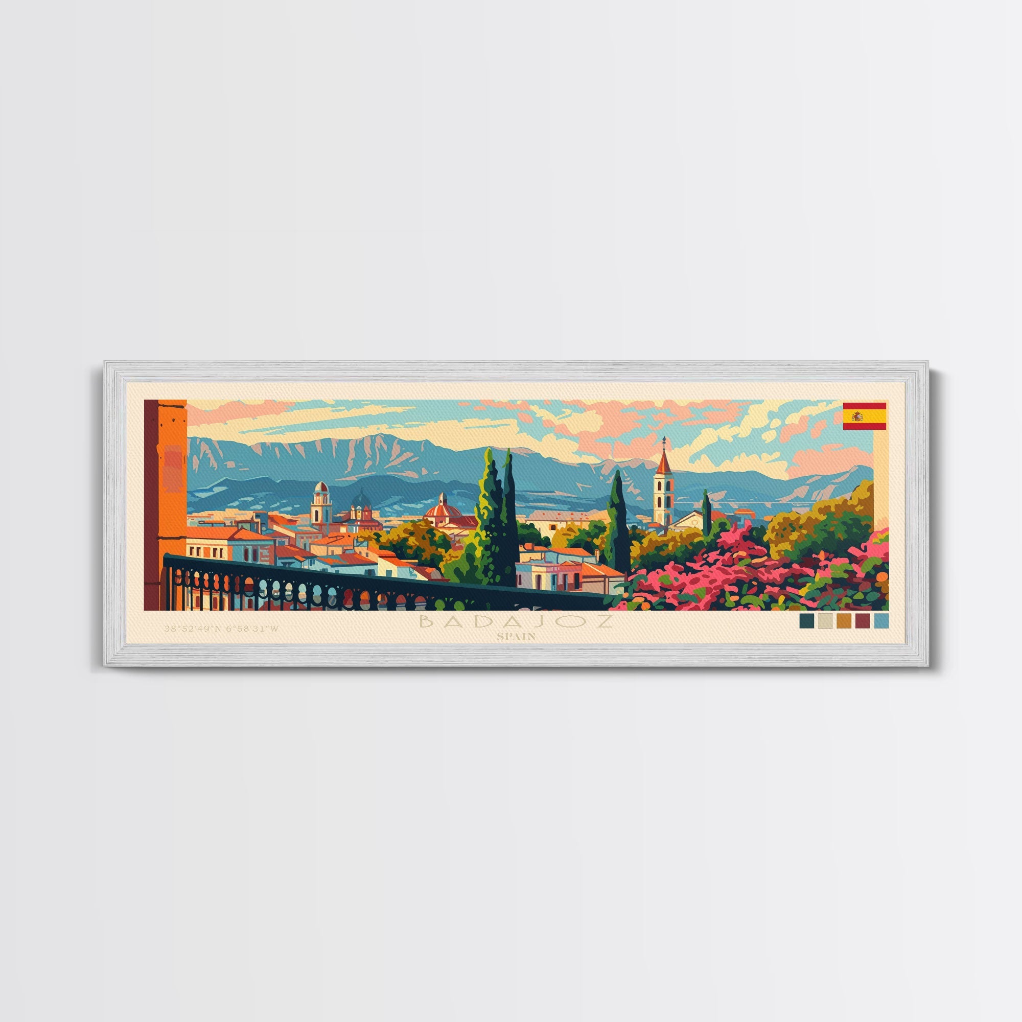 Badajoz Spain Wall Art, Panoramic Travel Poster, Panoramic Framed Canvas Print, City Wall Art, Wall Hanging Home Decor, Travel Art