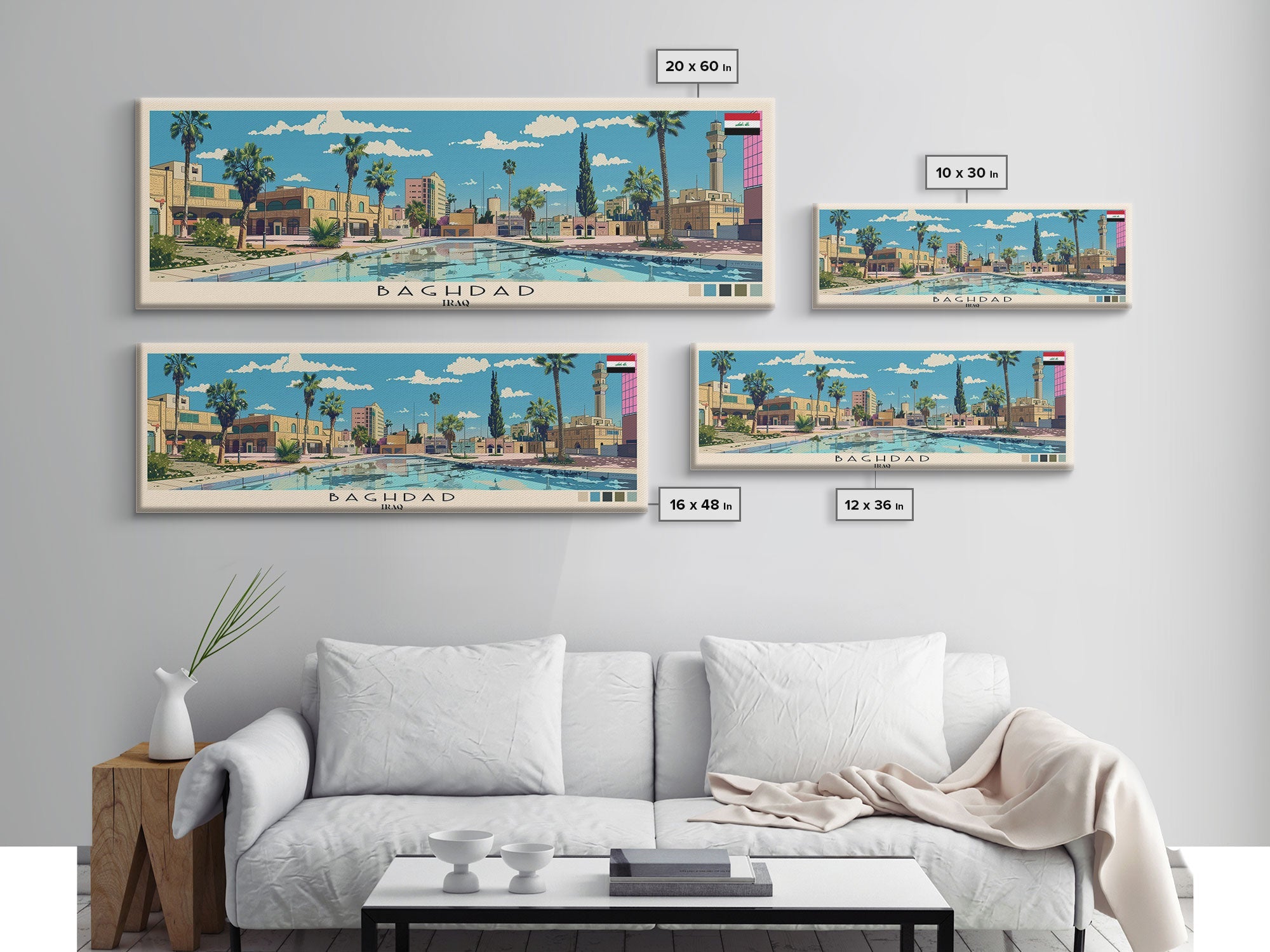 Baghdad, Iraq Panoramic Canvas Print, Baghdad, Iraq Painting, Iraq Art, Baghdad Travel Poster, Travel Art, Housewarming Gift