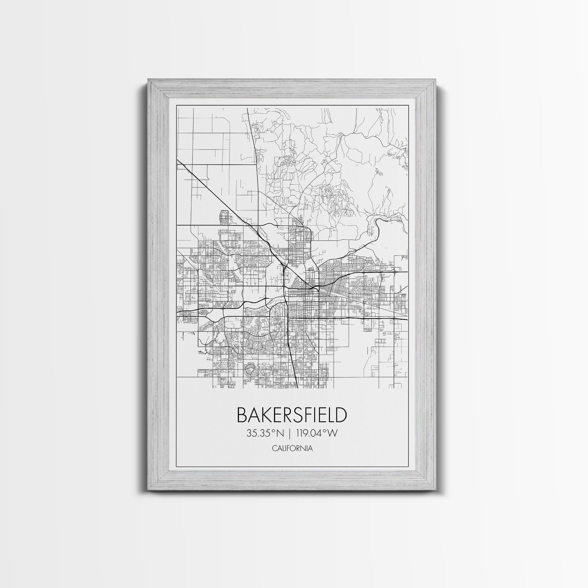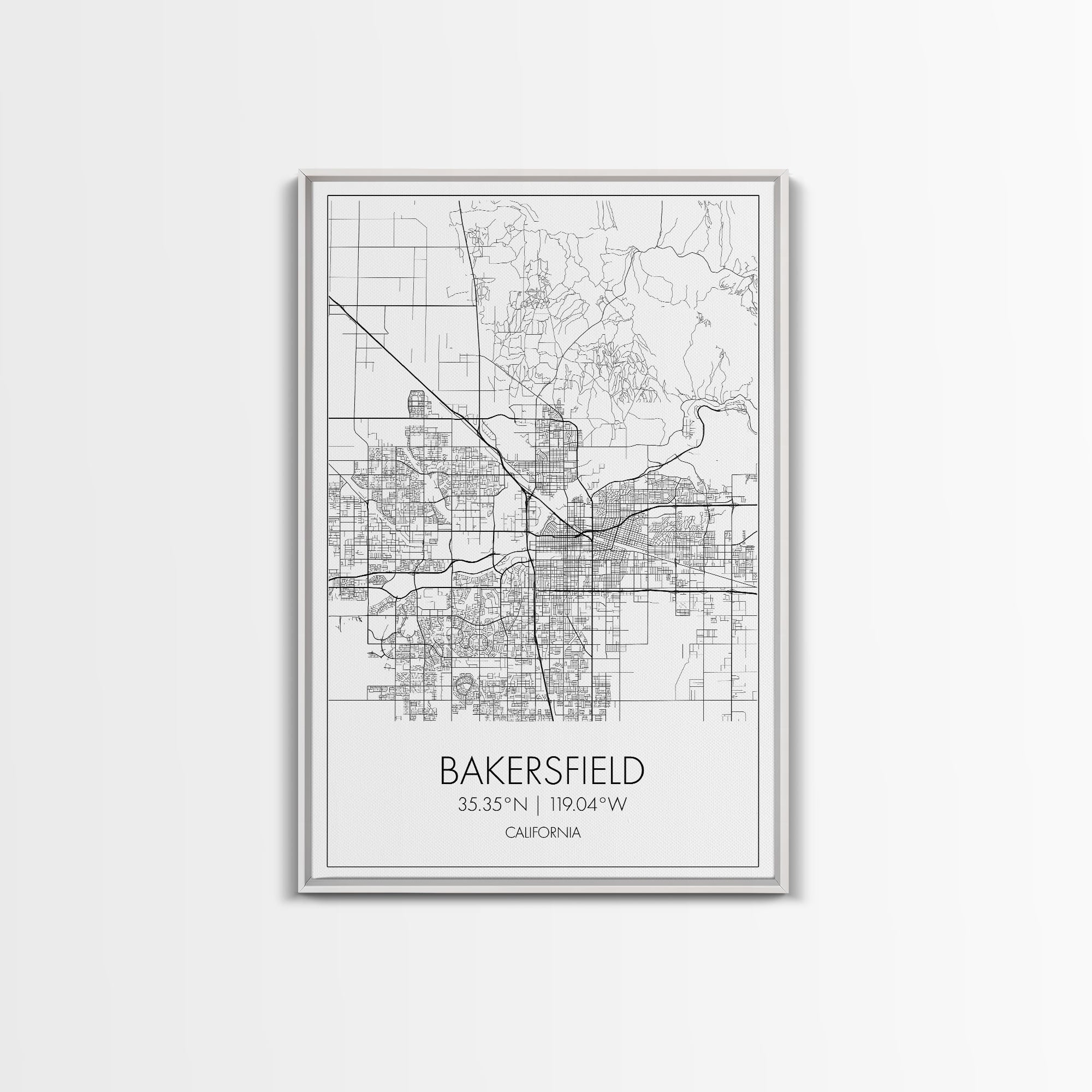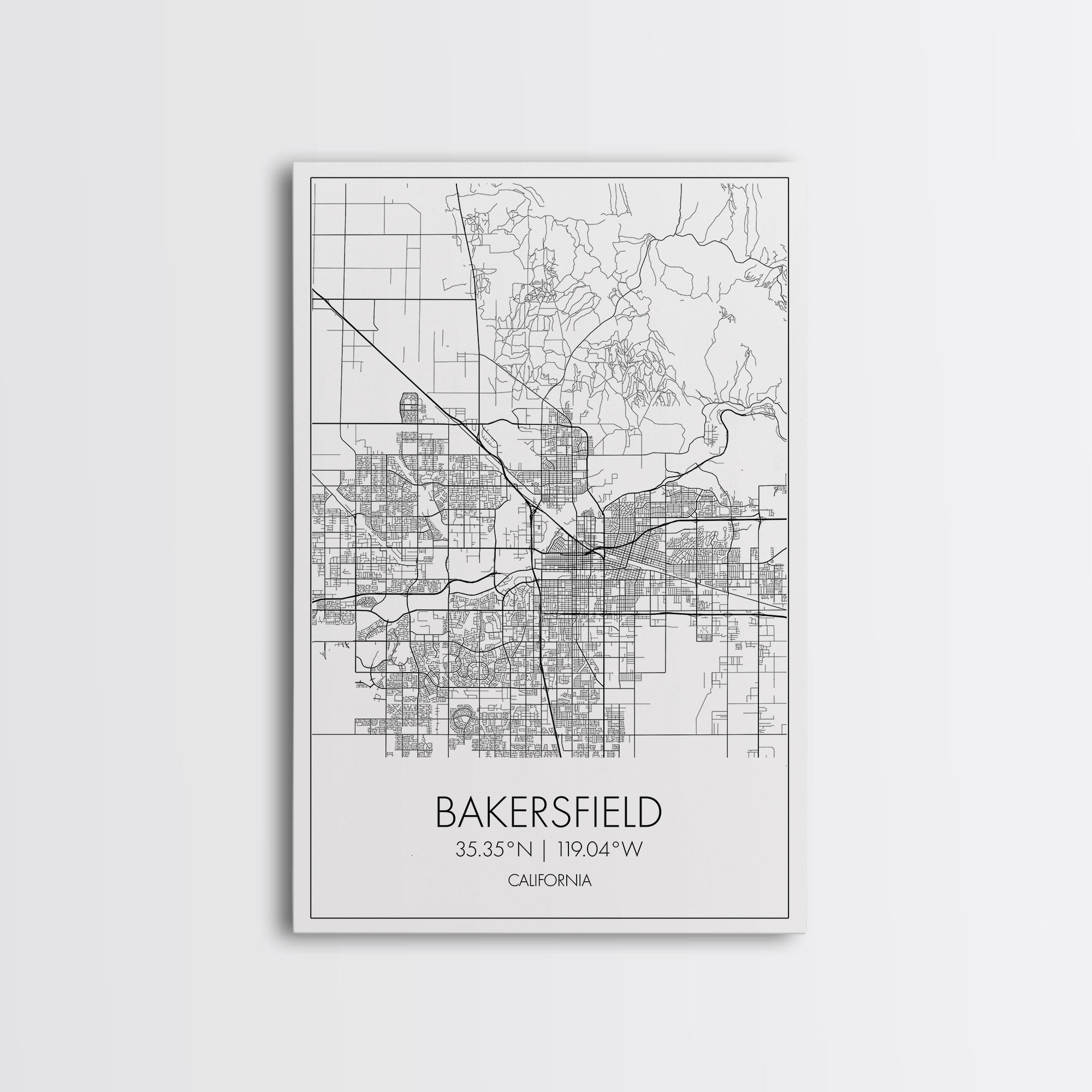 Bakersfield Street Map, California Map, City Wall Art, Home Wall Décor, Wife Gift, Minimalist Art, Wall Art, Canvas Print, Canvas Wall Art