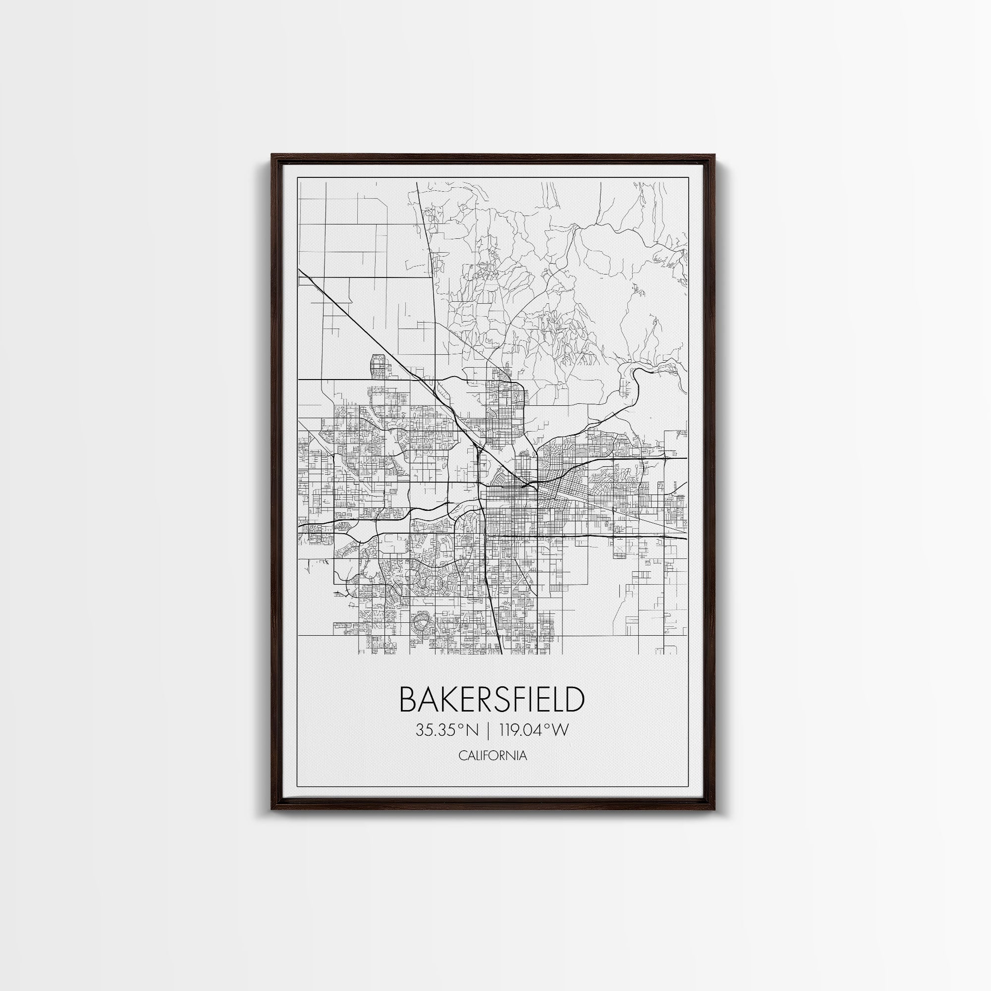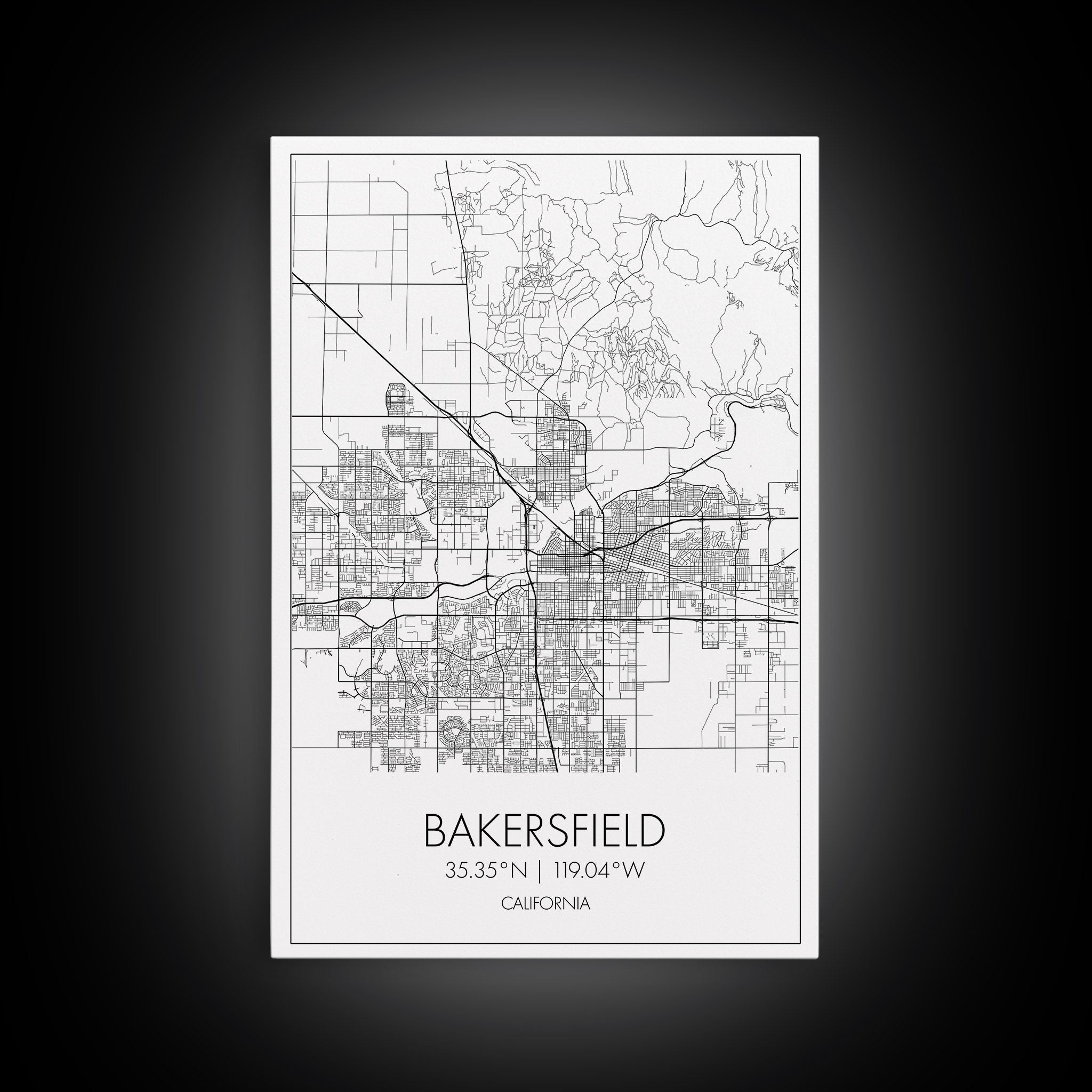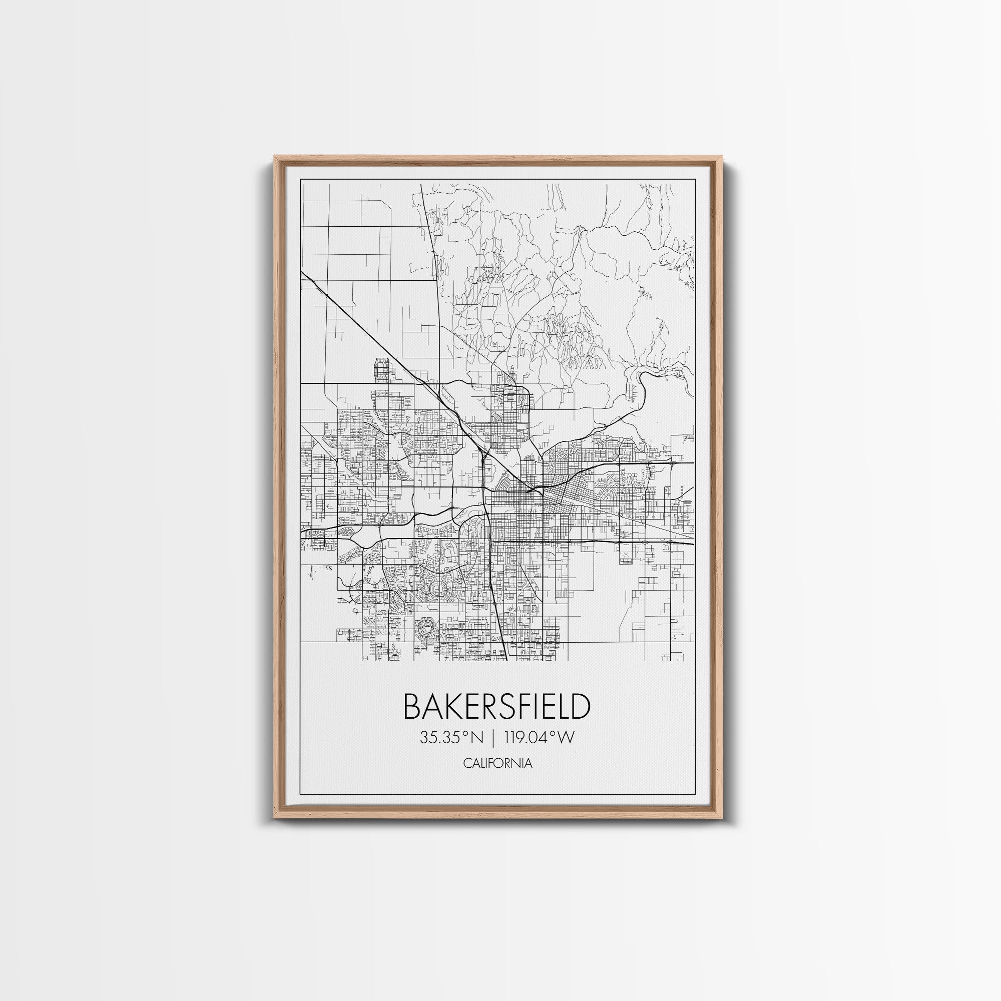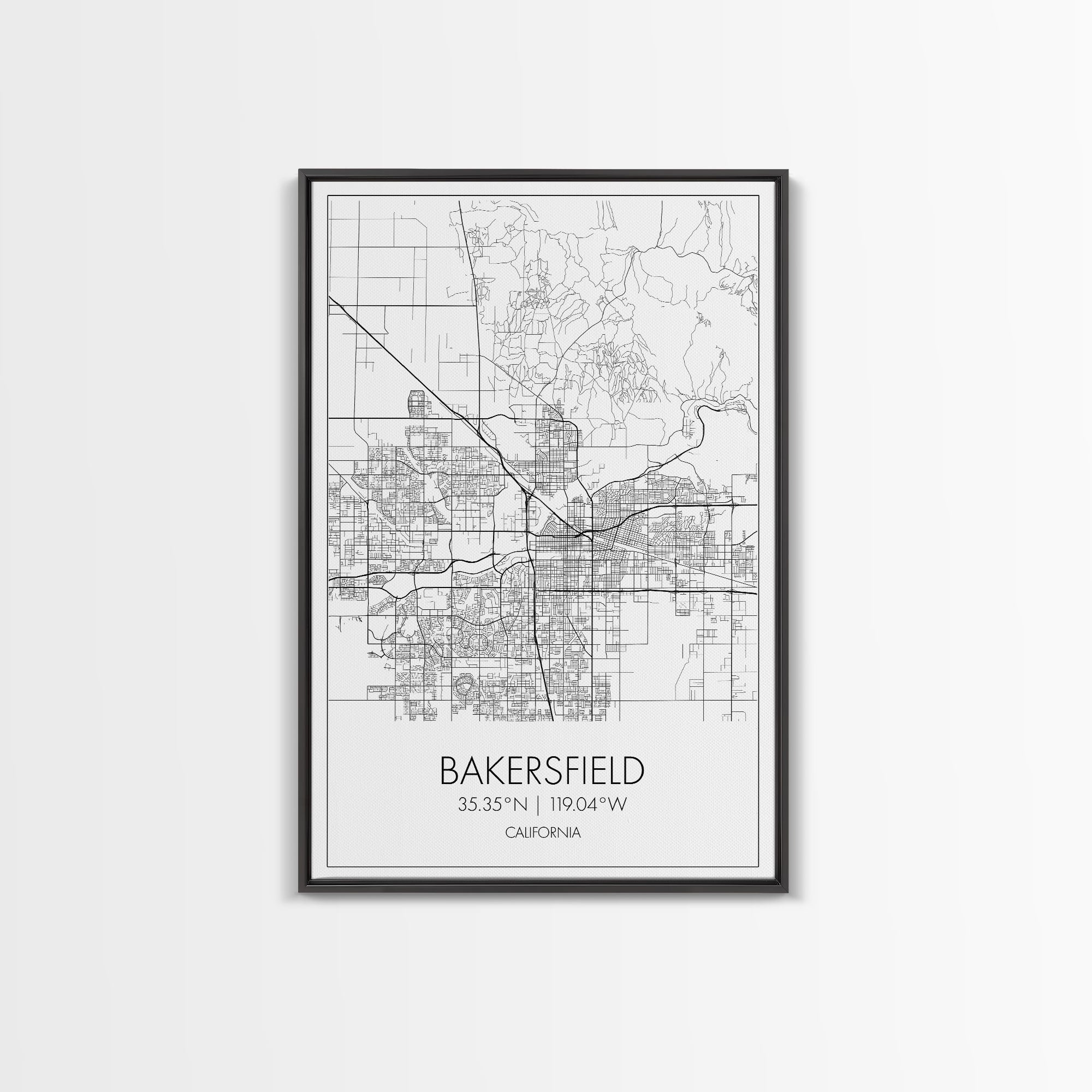Bakersfield Street Map, California Map, City Wall Art, Home Wall Décor, Wife Gift, Minimalist Art, Wall Art, Canvas Print, Canvas Wall Art