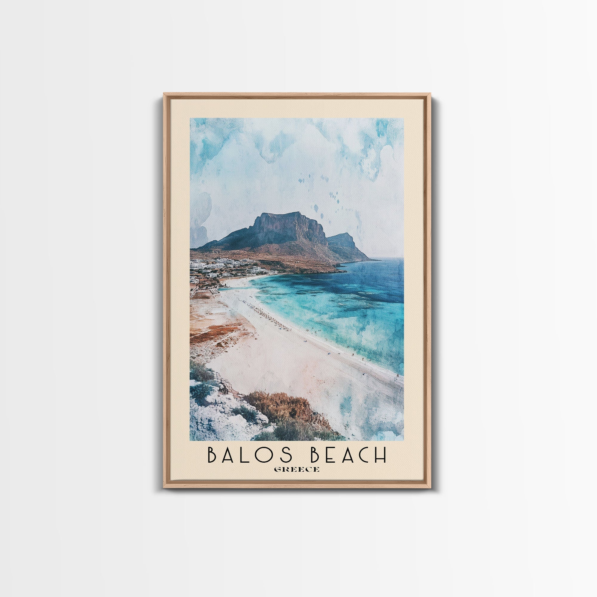 Balos Beach, Greece Watercolor Beach Print, Vacation Gift, Greece Wall Art, Framed Canvas Print, Framed Beach Painting