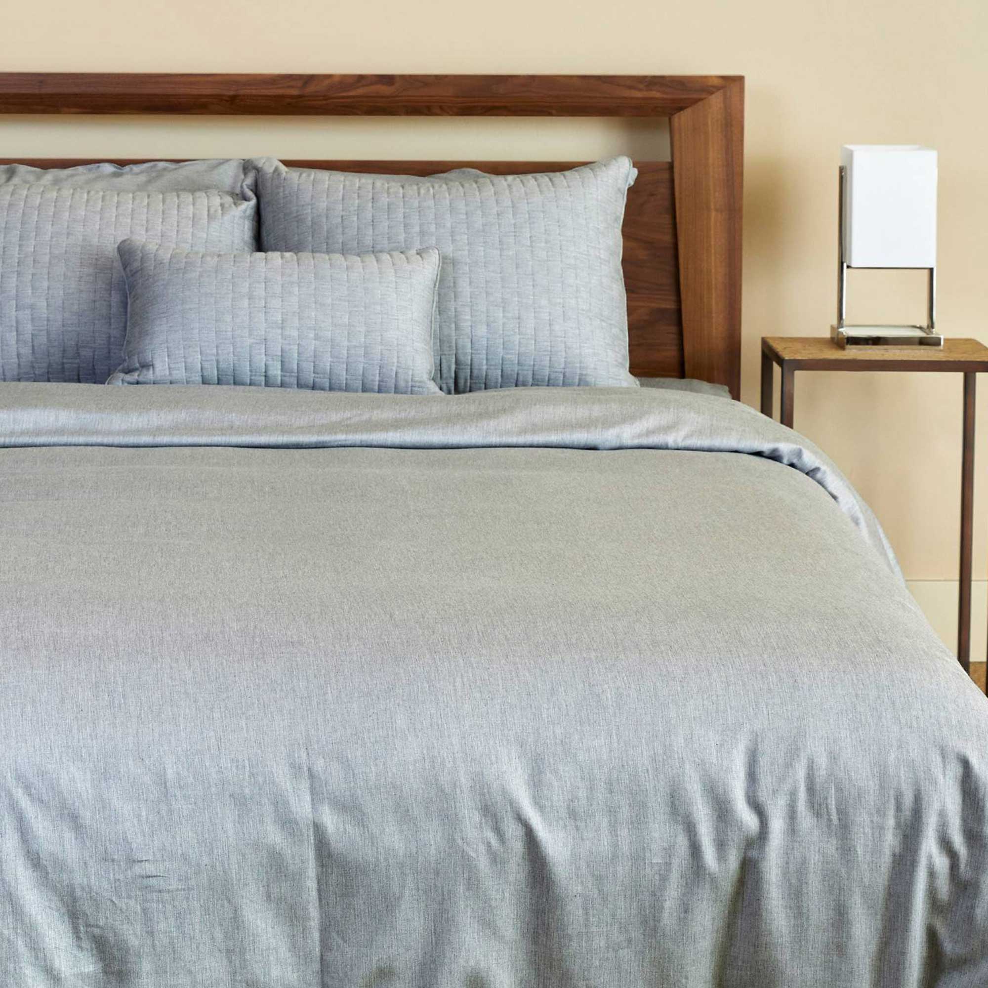 Ready to upgrade from basic cotton? Our Melange Bamboo Duvet Covers blend the silky softness of 50% bamboo with the durability of 50% long-staple cotton, giving you the best of both worlds. The duvet is breathable, naturally temperature-regulating, and smoother than traditional bedding, designed to keep you cool, dry, and incredibly comfortable all night long. This perfect fabric blend pairing is ideal for those new to bamboo or looking for a little extra structure in their comforter cover. With our signature tight twill weave, this duvet resists pilling and will stand up beautifully to everyday use. Hypoallergenic and gentle on sensitive skin, it's a smart step toward better sleep and a healthier home. Melange has a beautiful heathered-look yet its bleachable and BPO-safe.