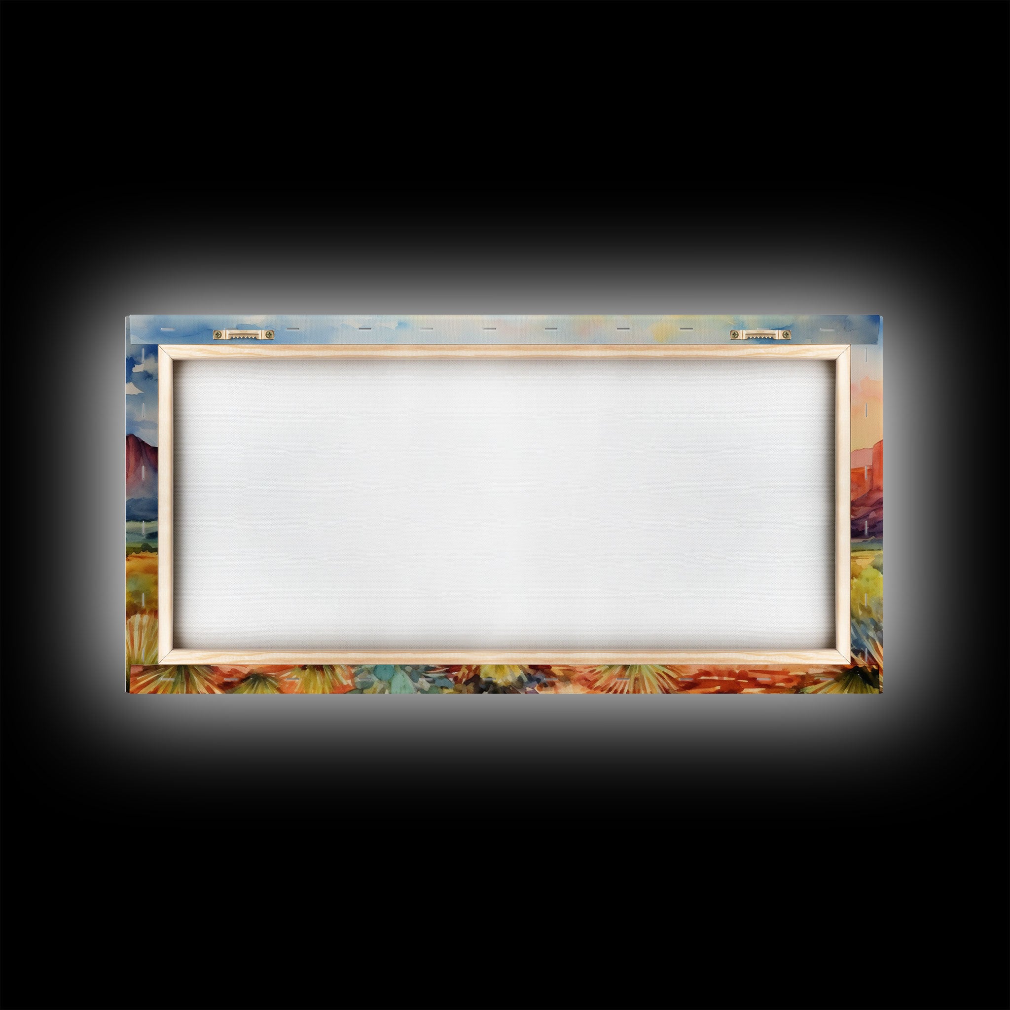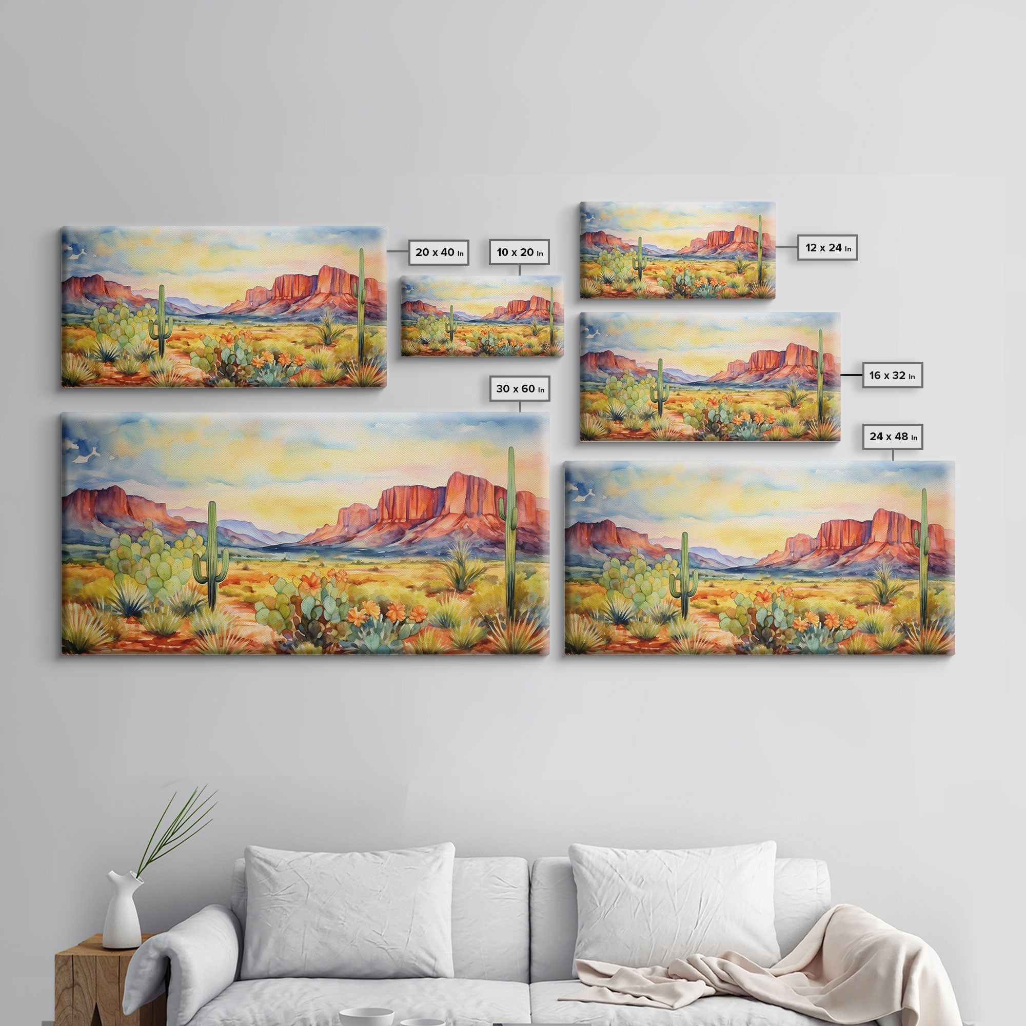 Boho Whimsical Wall Art, Pastel Desert Print, Framed Canvas Art, Unique Wall Art, Minimalist MCM Style Wall Art, Landscape Painting