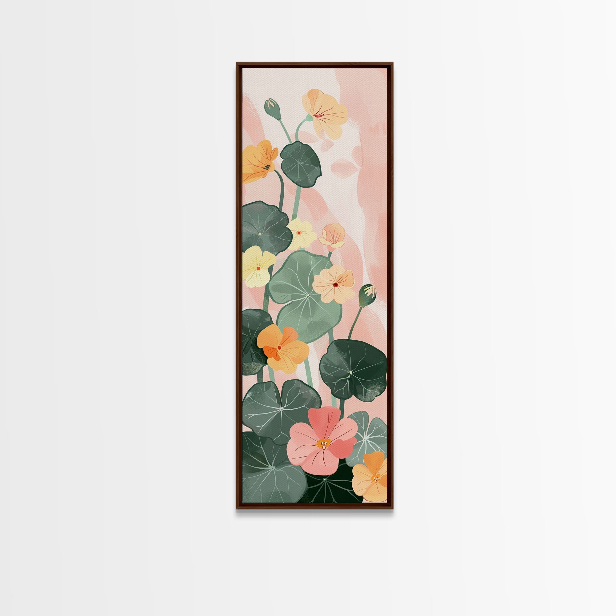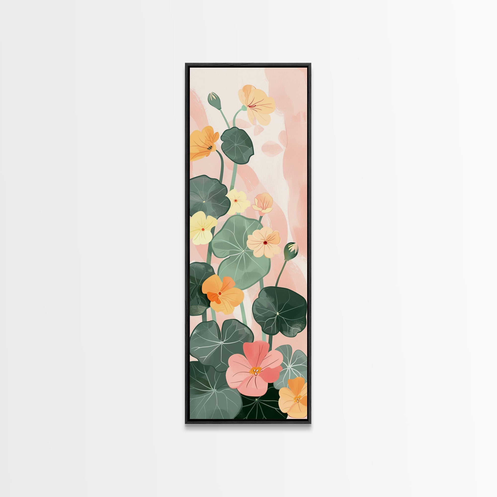 Bright And Colorful Nasturtium Flowers Ukiyo-e Style Tall Skinny Wood Block Japanese Art Framed Canvas Print