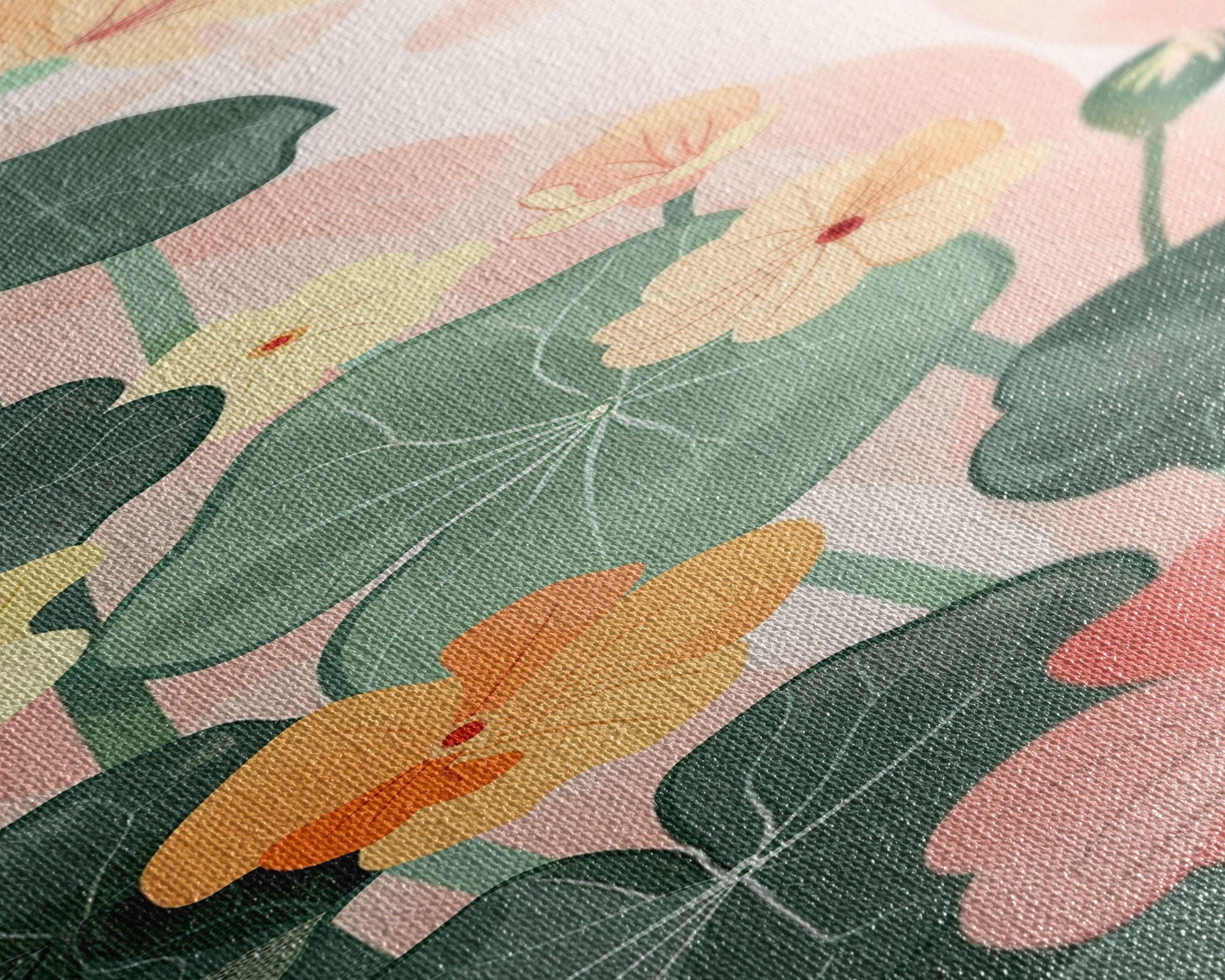 • Carregar imagem no visualizador da galeria, Bright And Colorful Nasturtium Flowers Ukiyo-e Style Tall Skinny Wood Block Japanese Art Framed Canvas Print