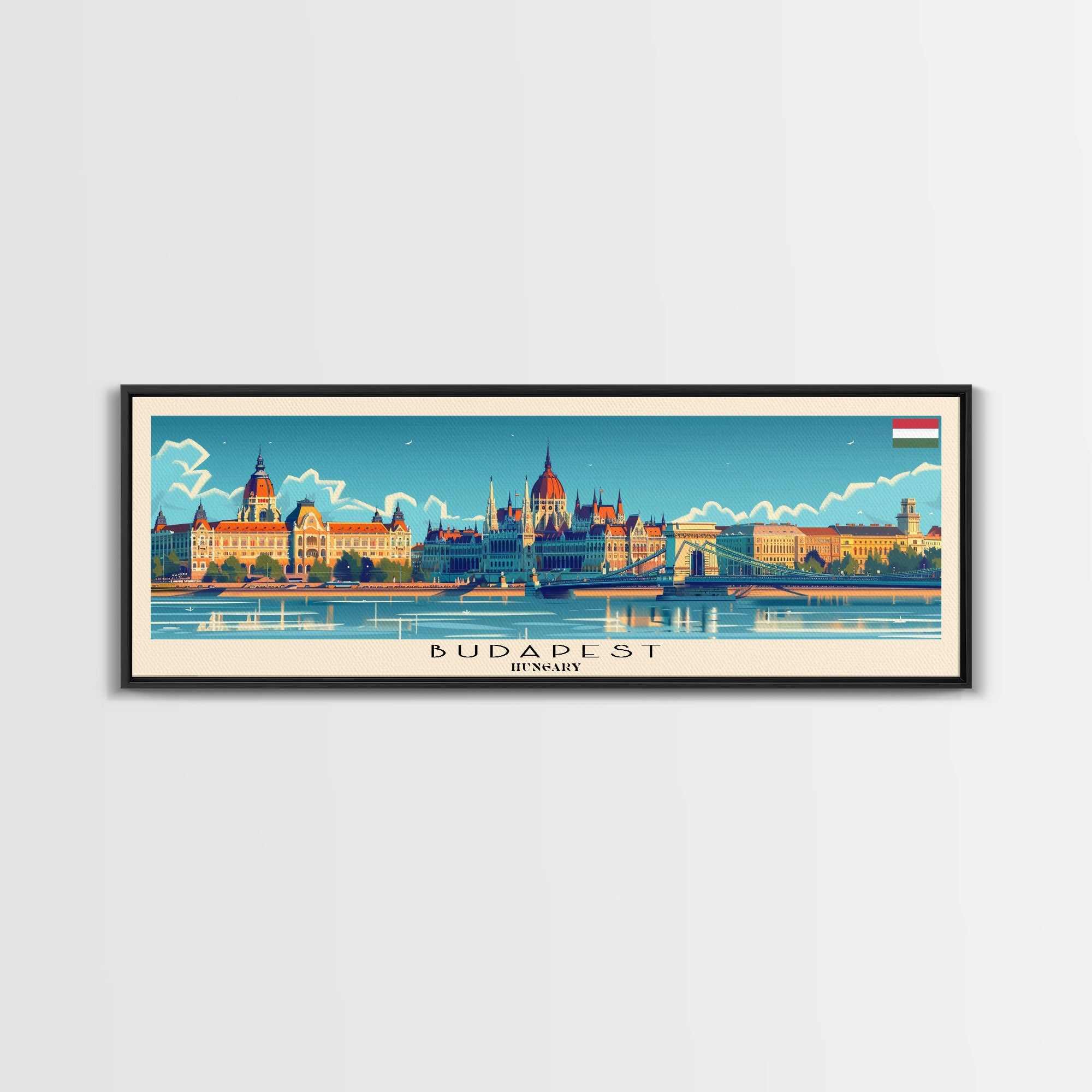 Budapest Hungary Travel Art, City Art, Framed Canvas Print or Metal Wall Art, Europe Travel Poster, Panoramic Wall Art, Extra Wide Wall Art