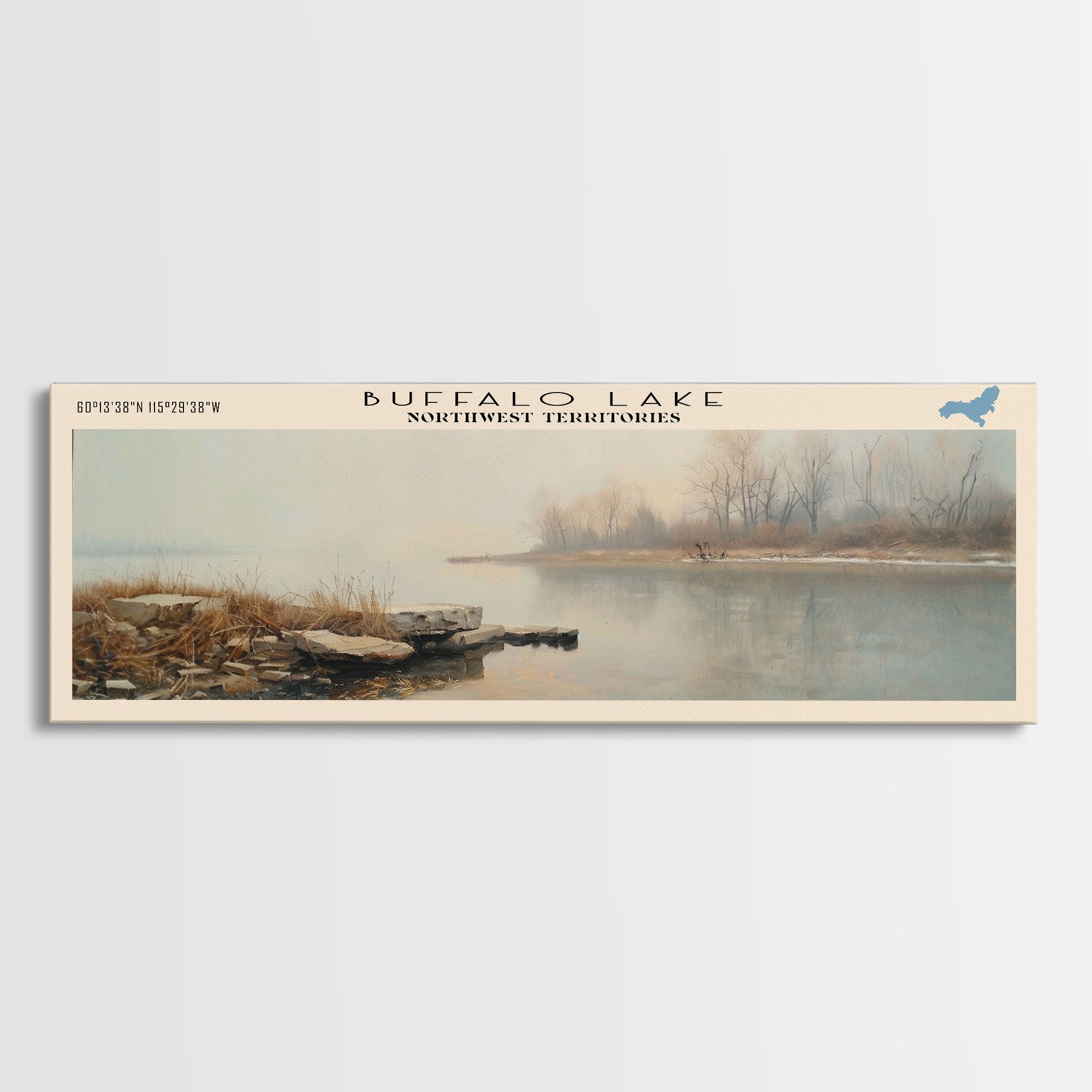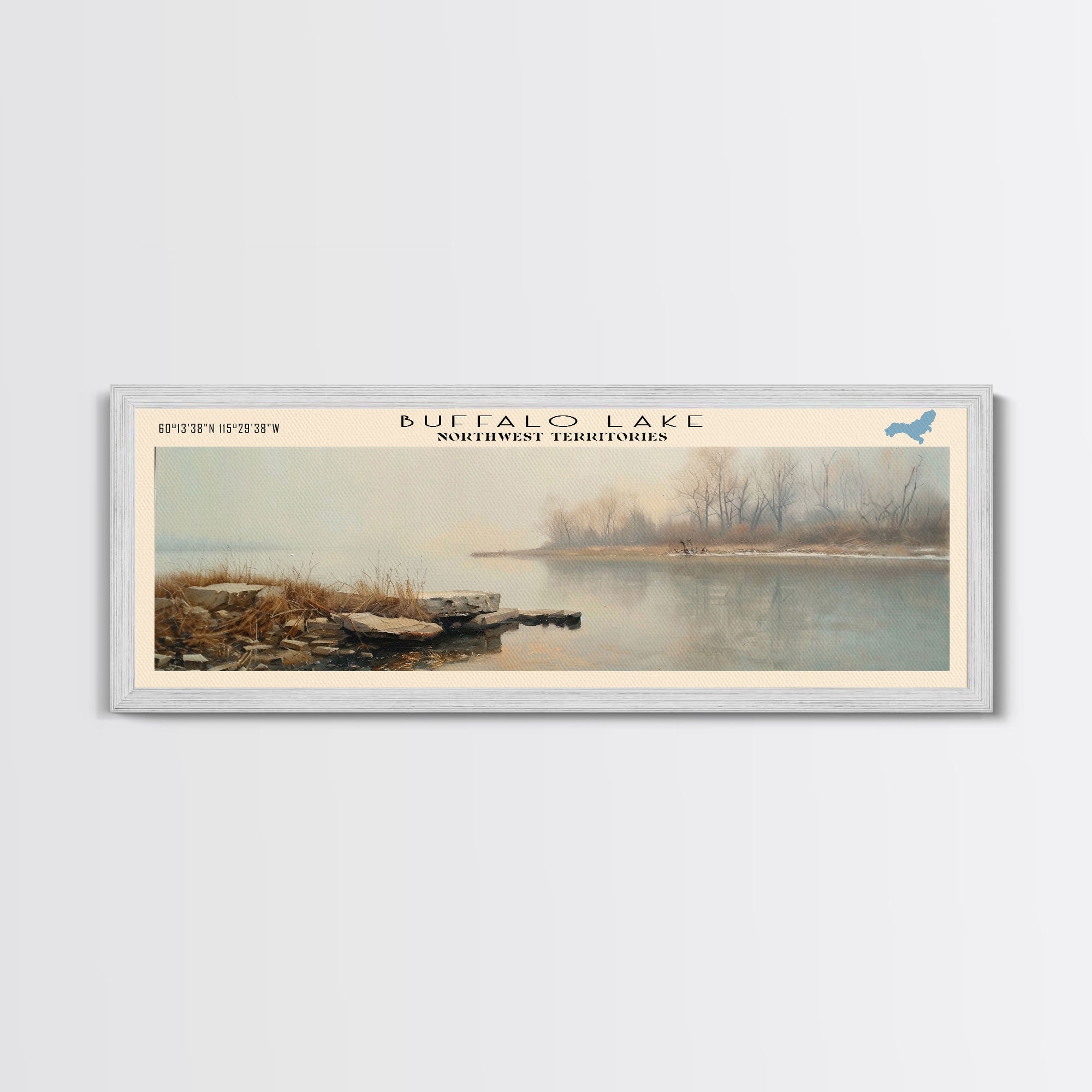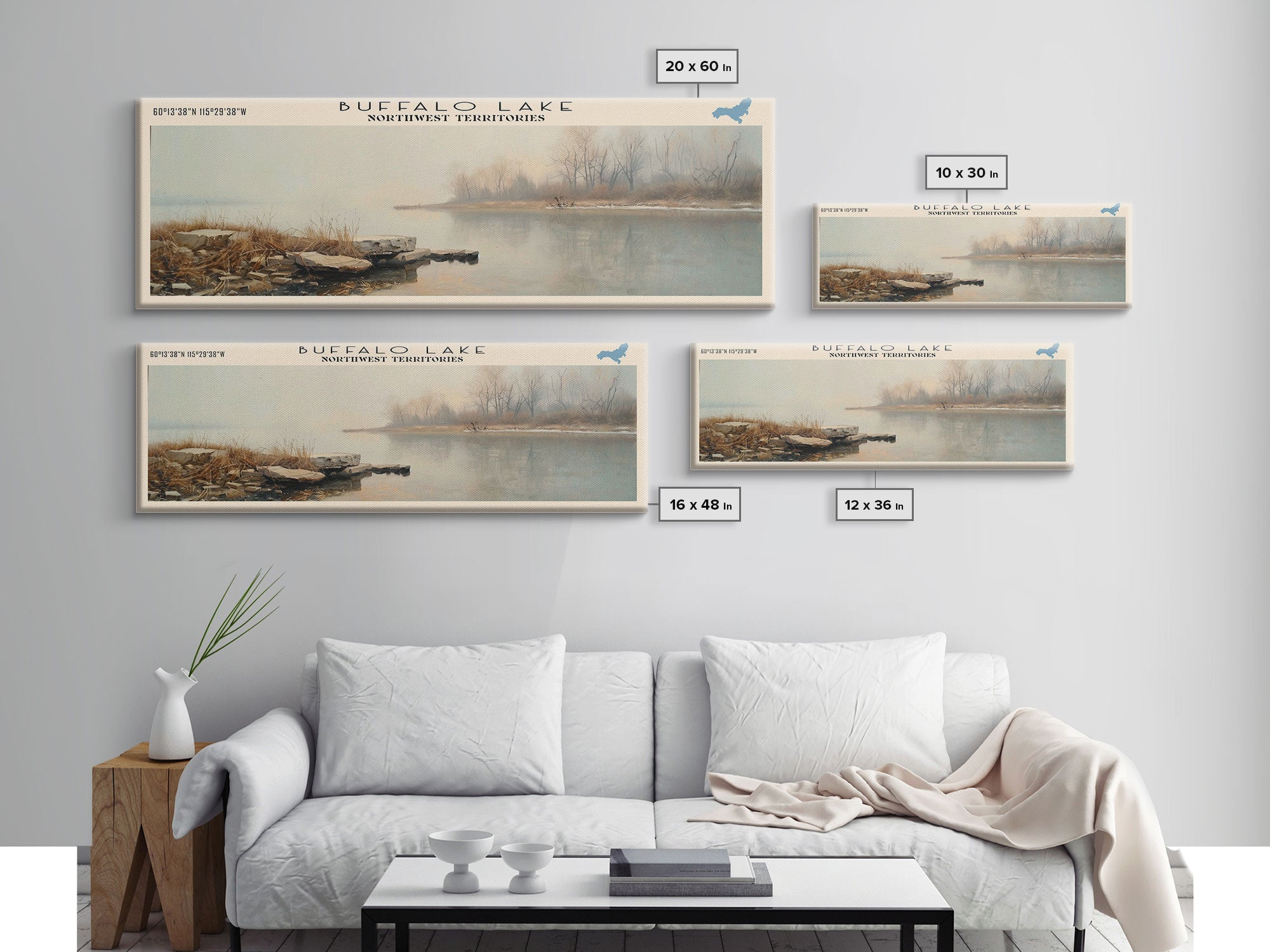 Buffalo Lake Framed Canvas Print, Panoramic Lake House Decor, Wall Art, Travel Poster, Modern Lake Painting, Nature Art