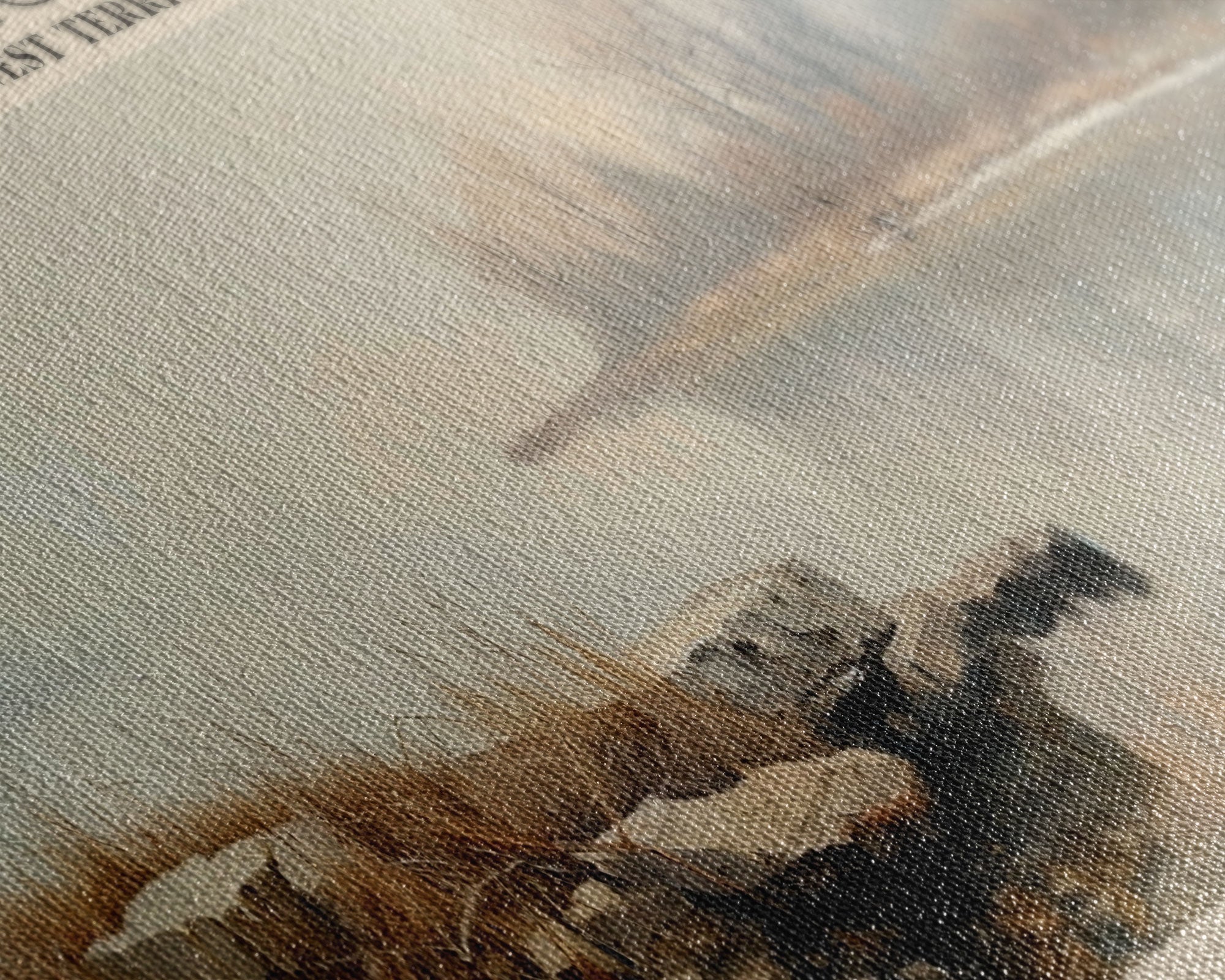 Most of our canvases are made in the USA, with the exception of canvases ordered with the light oak unstained frames, and any large canvases (24x48, 30x60, 16x48 and 20x60) ordered WITH a frame. These are temporarily made in and shipped from Europe, while we try to find a more consistent supplier in the USA.