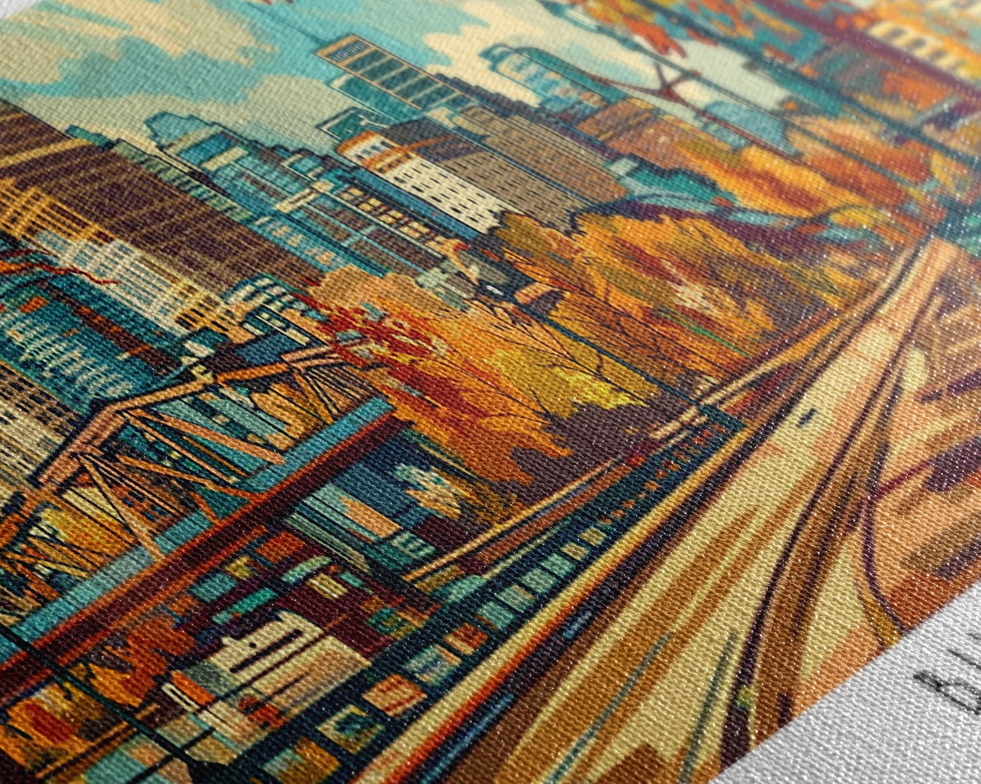 • Carregar imagem no visualizador da galeria, Buffalo New York Panoramic Painting Framed Canvas Print, Mid Century Modern Art, Pop Art Style, Travel Poster, Living Room Decor