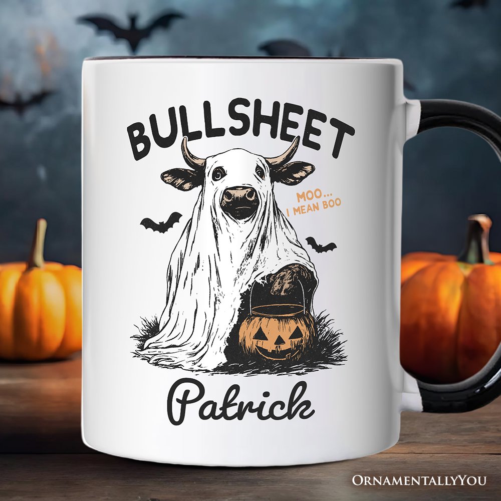 Bullsheet Halloween Bull Personalized Mug, Hilarious Cow Gift with Custom Name