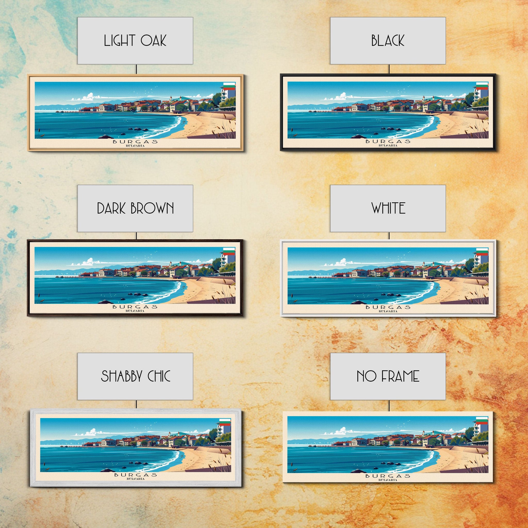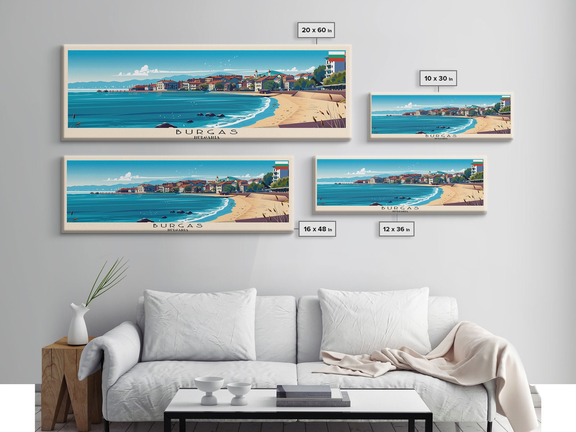 Burgas Bulgaria Panoramic Travel Poster, Framed Canvas Print or Metal Wall Art, Travel Art, Home Decor, Panoramic Painting, Midcentury Art
