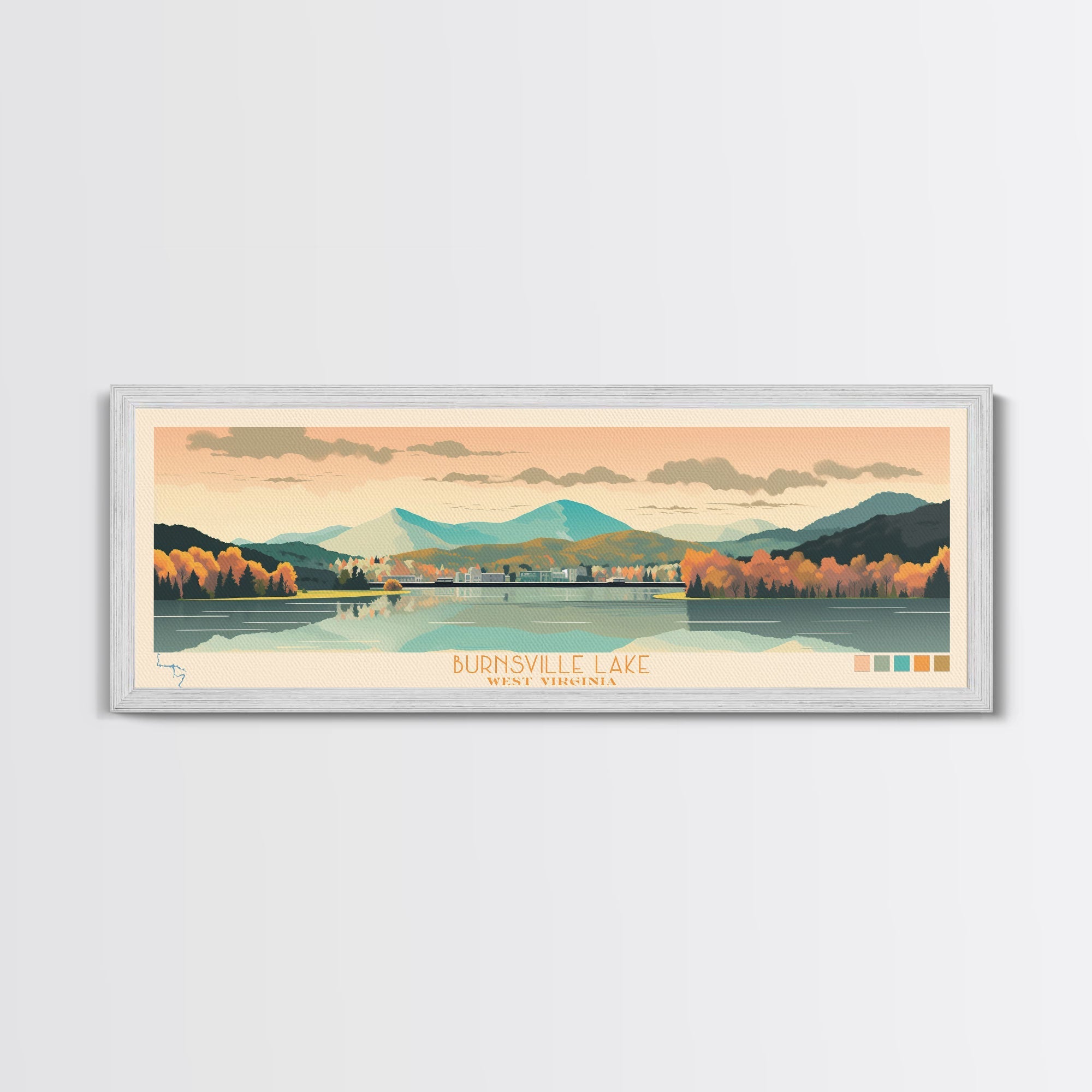 Burnsville Lake West Virginia Framed Canvas Print, Midcentury Modern Panoramic Wall Art, Living Room Decor, Pop Art, Travel Poster Art, Scenic Nature Painting